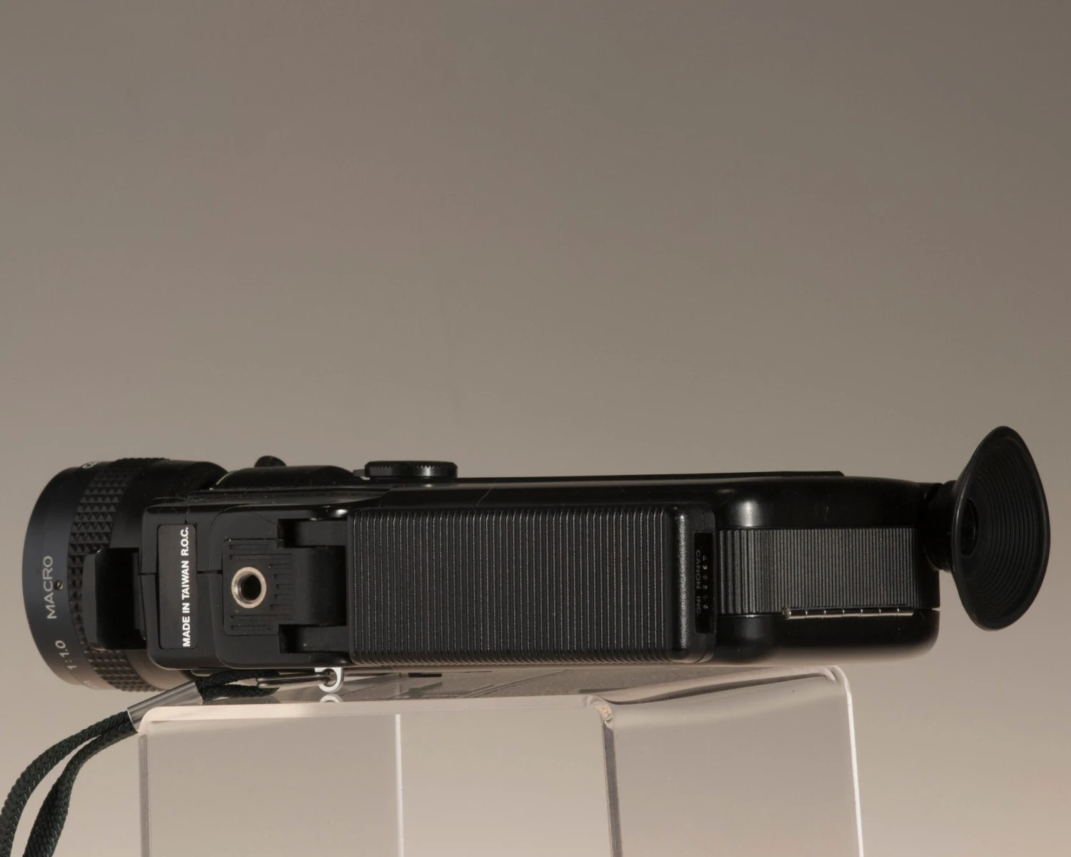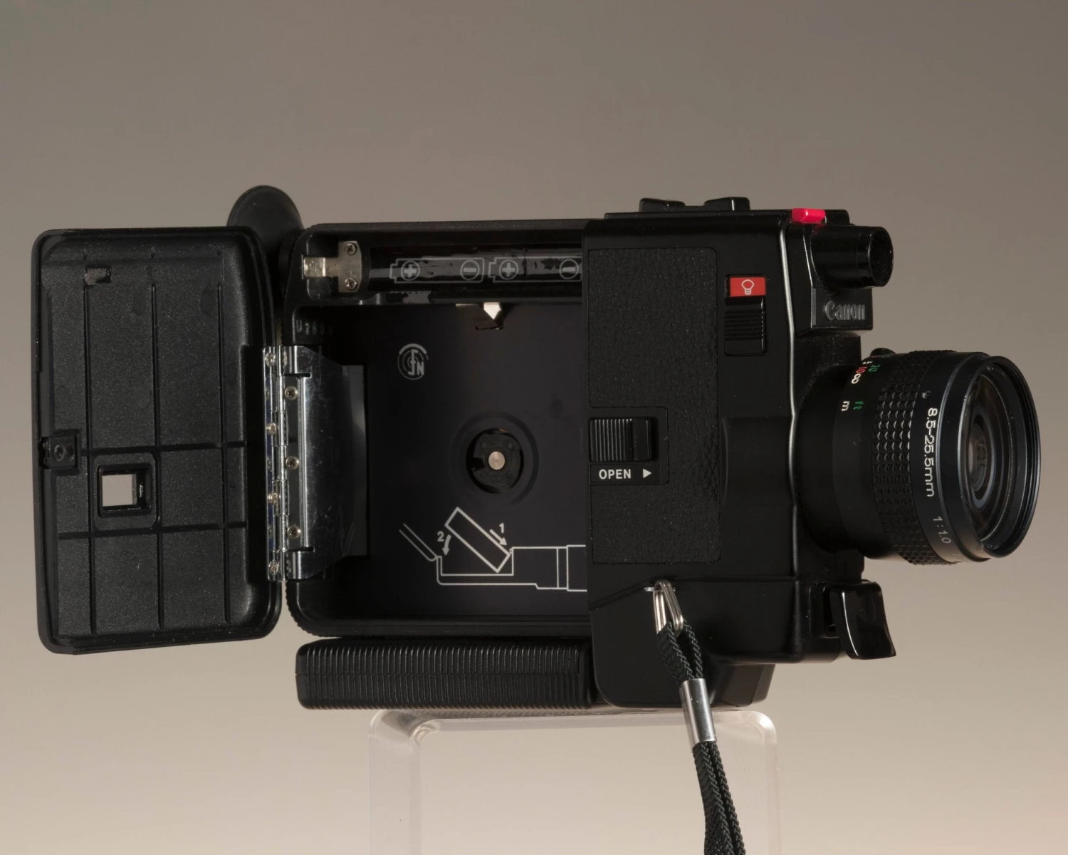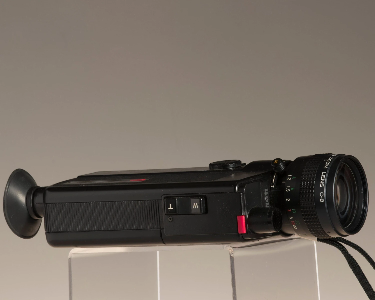 The Canon 310XL is one of the all-time classic Super 8 cameras. This small and lightweight camera’s incredibly fast F1.0 (!) lens is makes it an excellent choice for low-light/available light film-making. It’s also very convenient that the camera (including its automatic exposure) is powered by two ordinary AA batteries (not included). It’s also a really nice camera for stop motion animation as it includes a dedicated single frame mode.