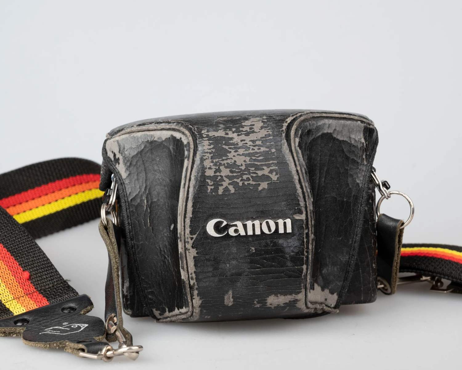 The camera was tested with film and delivered sharp images. It is in very good cosmetic condition as well. The included case is only in fair condition (the leatherette is dried out and leaves crumbs) but we feel it’s still useful for storing and transporting the camera.