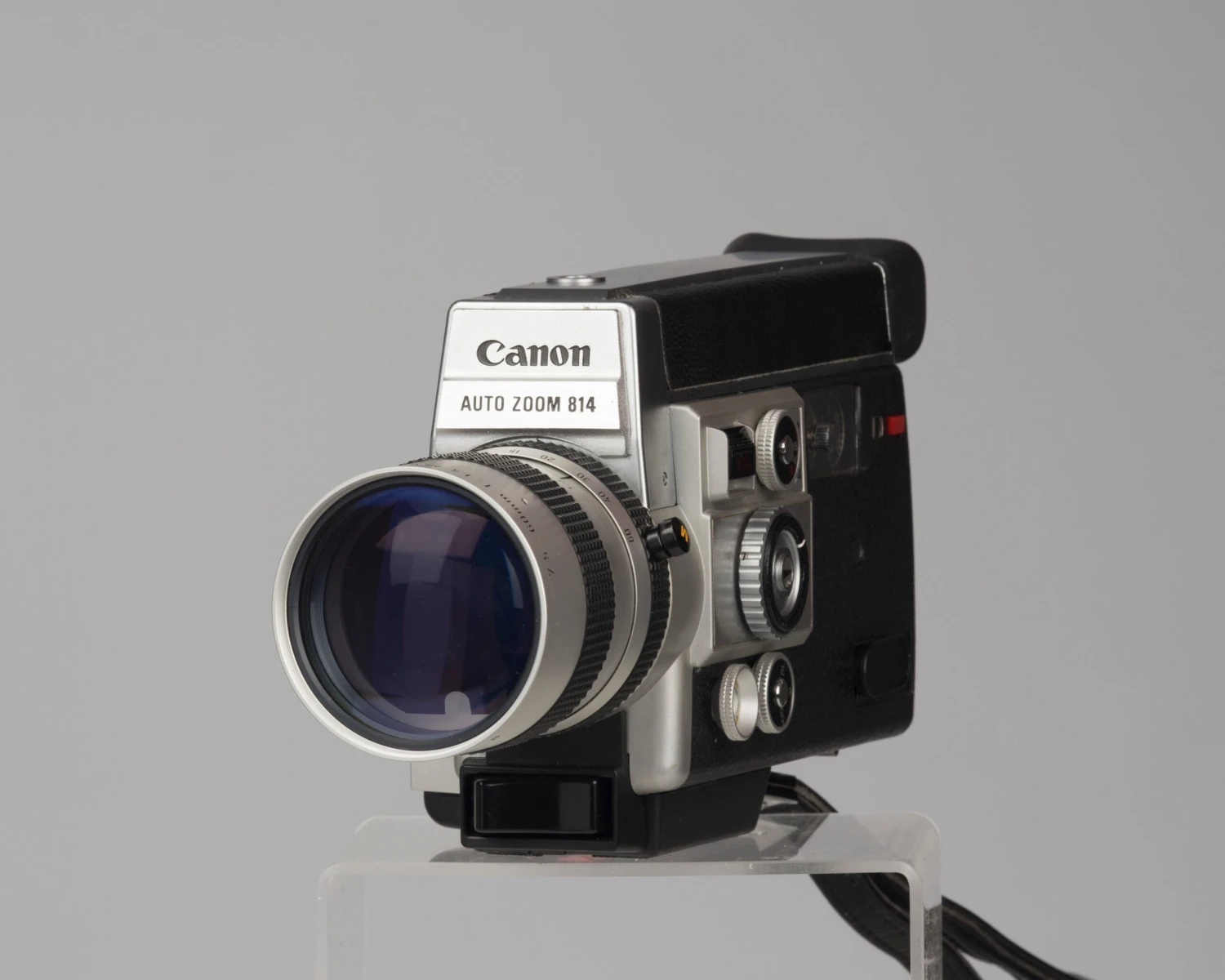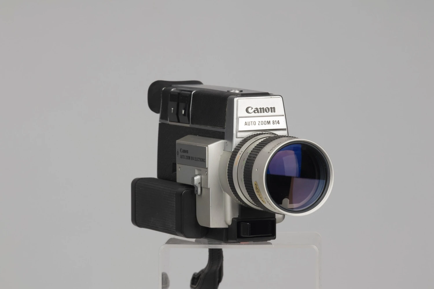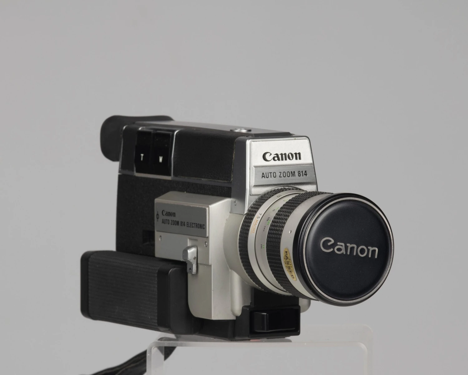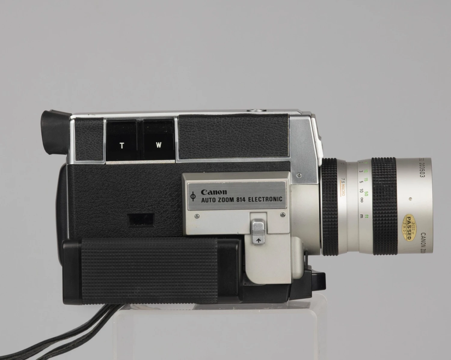 The Canon Auto Zoom 814 Electronic is one the finest Super 8 film cameras ever made. It improves upon the already-excellent original Auto Zoom 814 in several respects: it features an even better lens with a sophisticated design (19 elements in 13 components of which 11 use rare glasses); no additional light meter battery is needed; it offers advanced features like a variable shutter angle with exposure compensation.