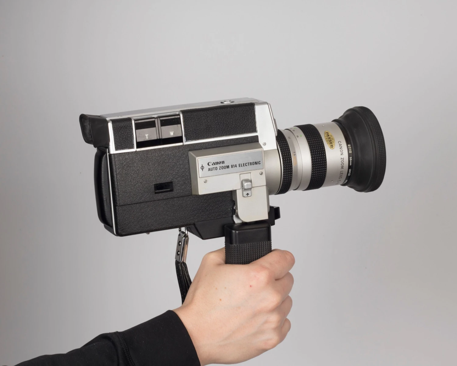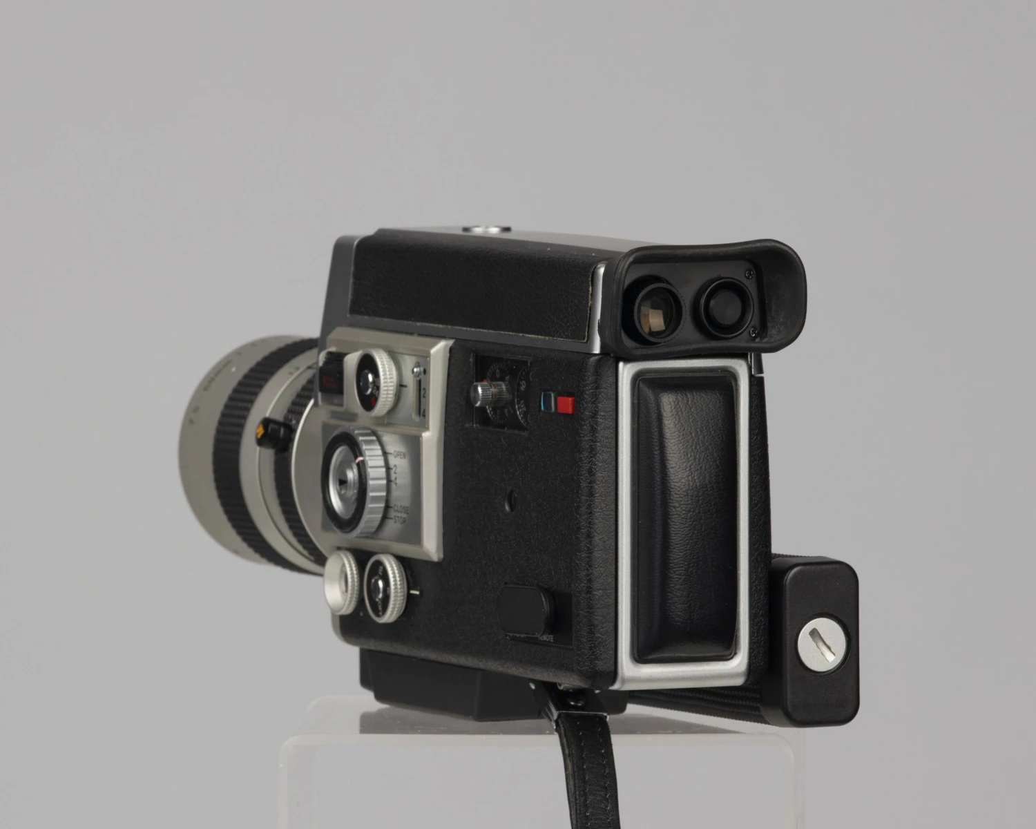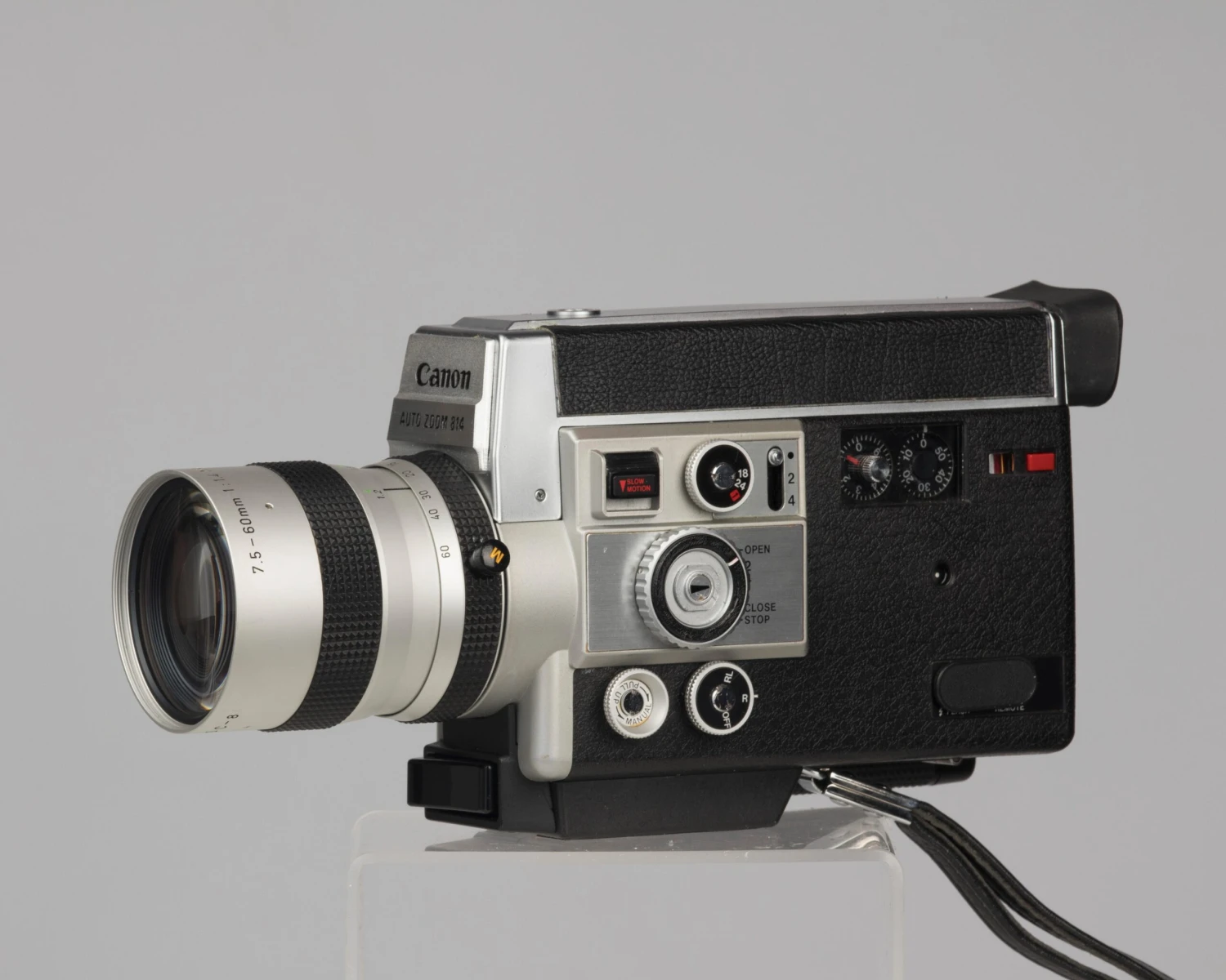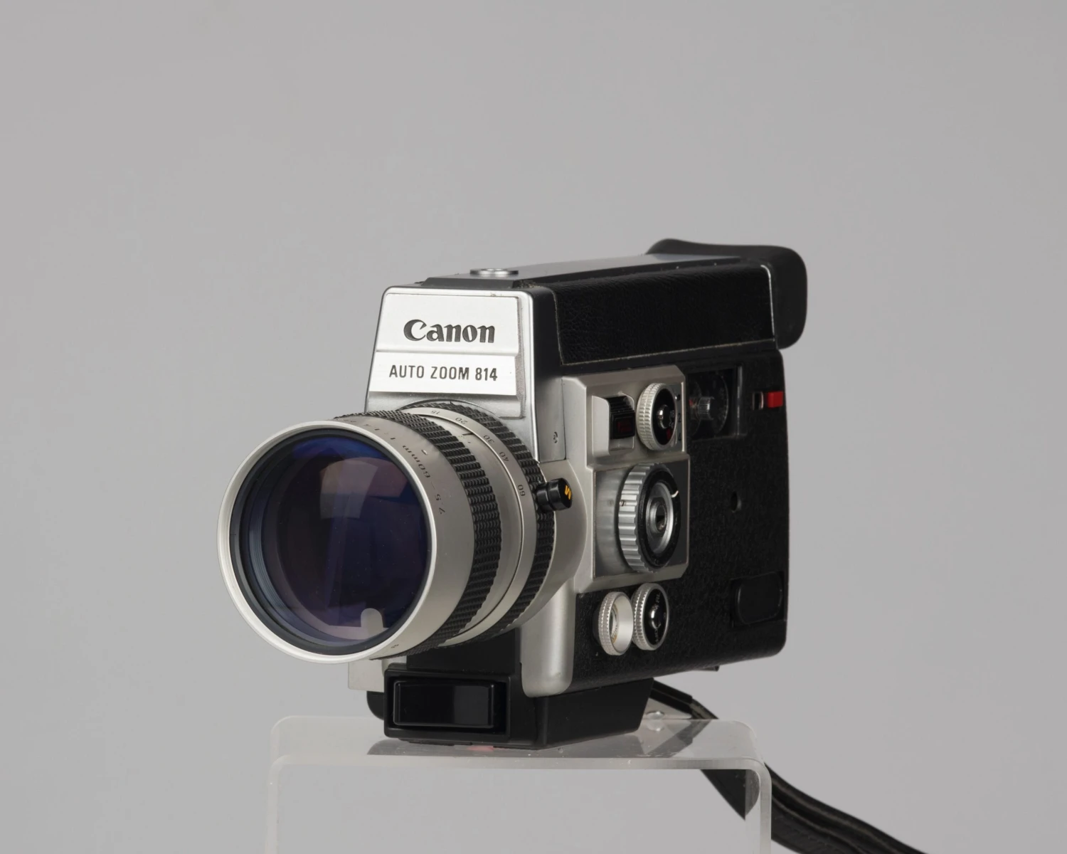 The Canon Auto Zoom 814 Electronic is one the finest Super 8 film cameras ever made. It improves upon the already-excellent original Auto Zoom 814 in several respects: it features an even better lens with a sophisticated design (19 elements in 13 components of which 11 use rare glasses); no additional light meter battery is needed; it offers advanced features like a variable shutter angle with exposure compensation.
