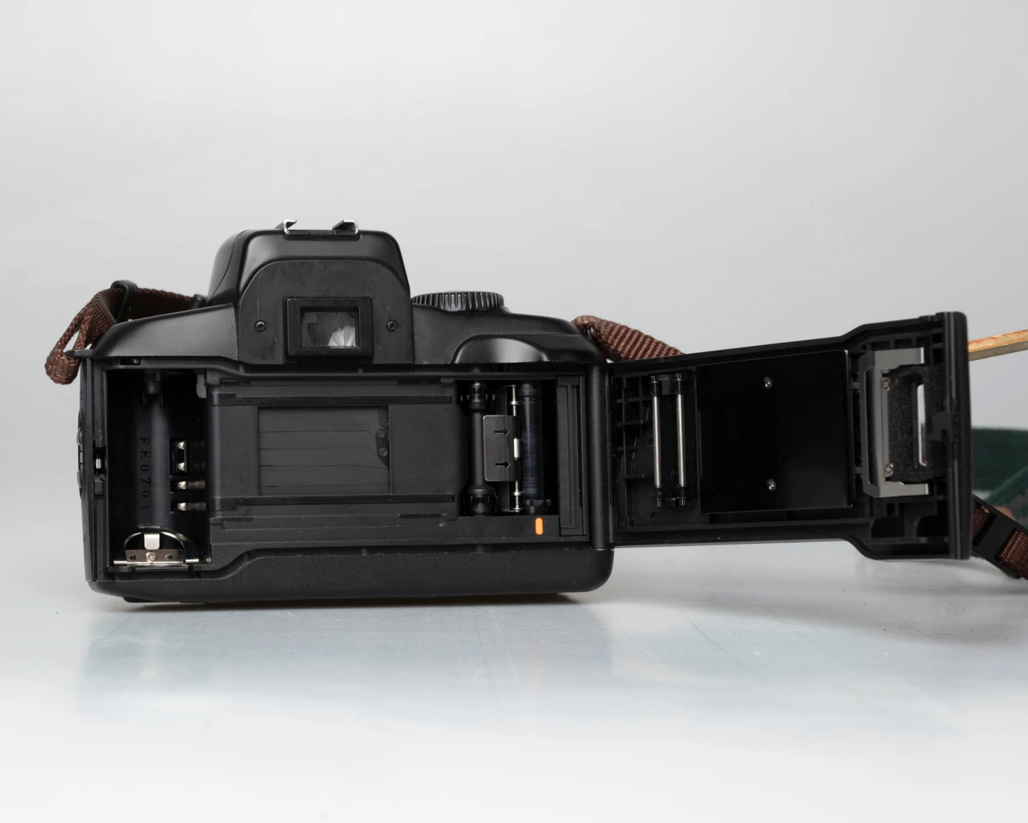 The circa-1990 Canon EOS 700 from 1990 is a user-friendly autofocus 35mm SLR camera. This camera support the use of all full-frame EF lenses (still used today on Canon’s digital SLRs).