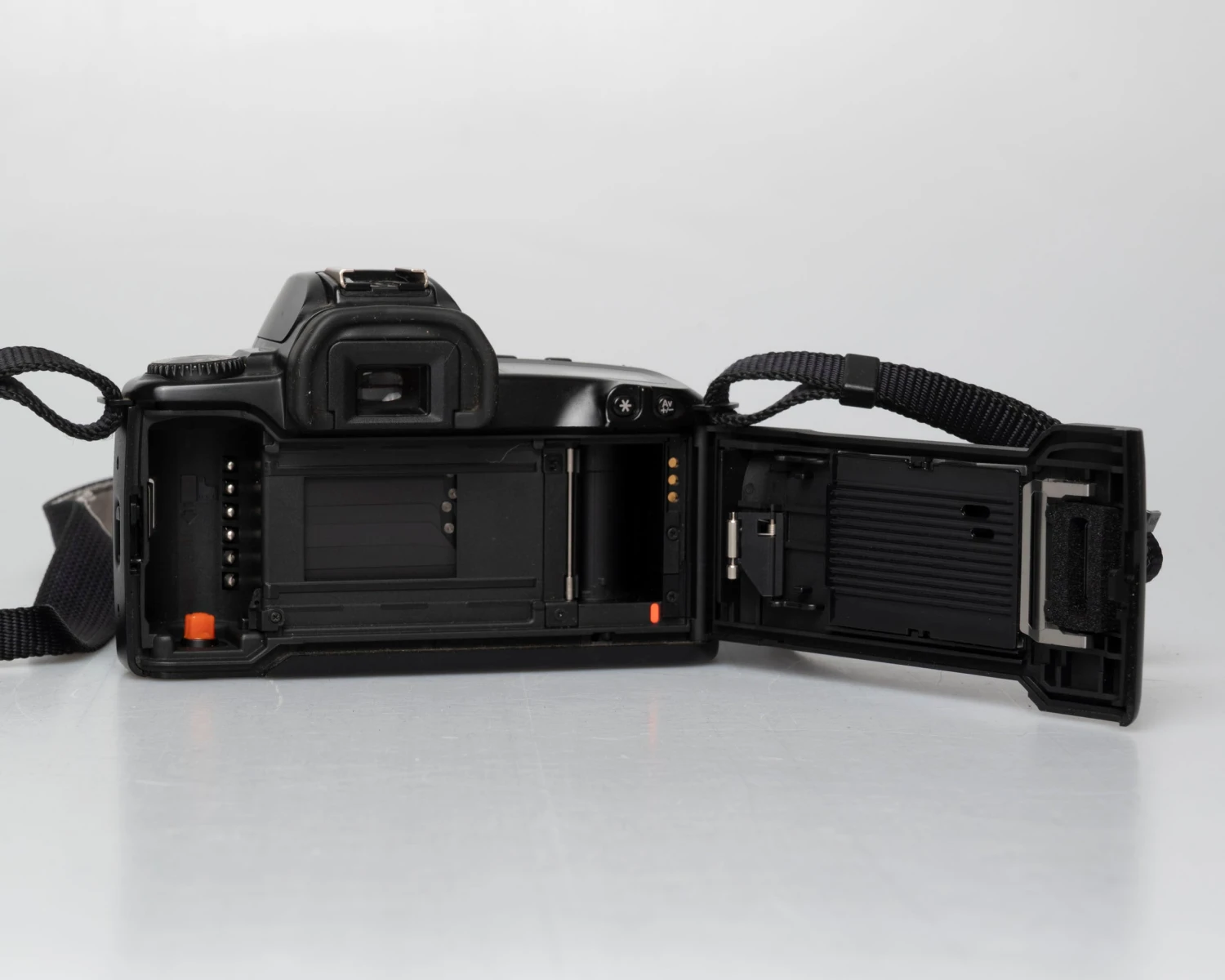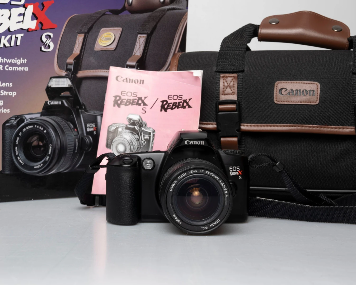 The Canon EOS Rebel XS (called the EOS Kiss in Japan) is a compact, lightweight, and easy-to-use autofocus 35mm film SLR camera from 1993.