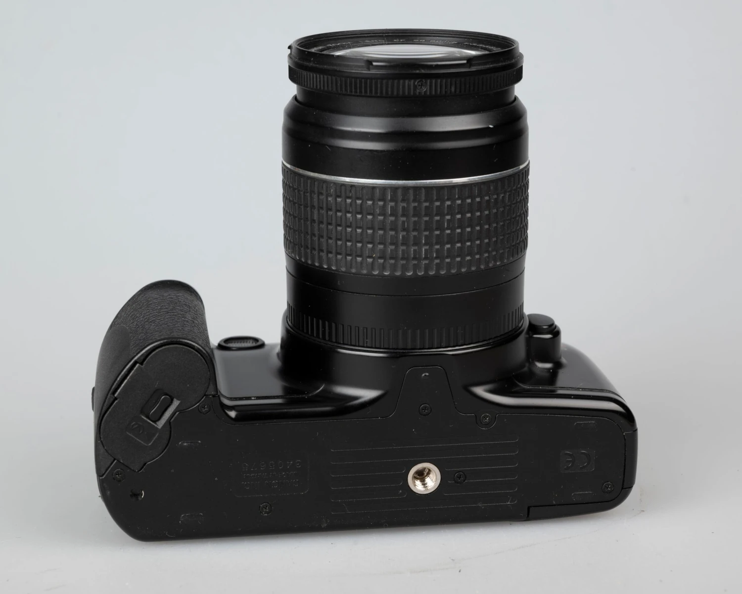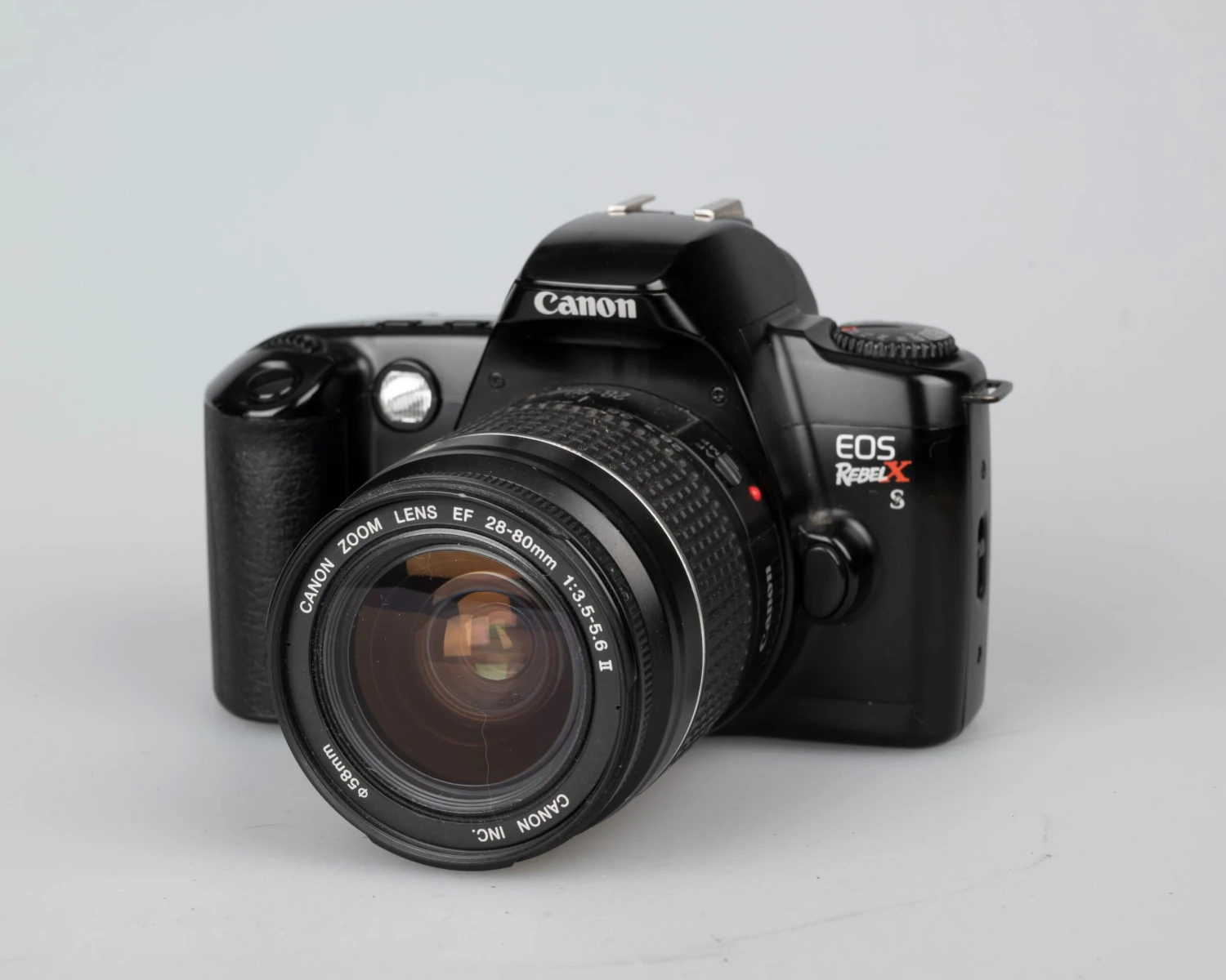 The Canon EOS Rebel XS (called the EOS Kiss in Japan) is a compact, lightweight, and easy-to-use autofocus 35mm film SLR camera from 1993.