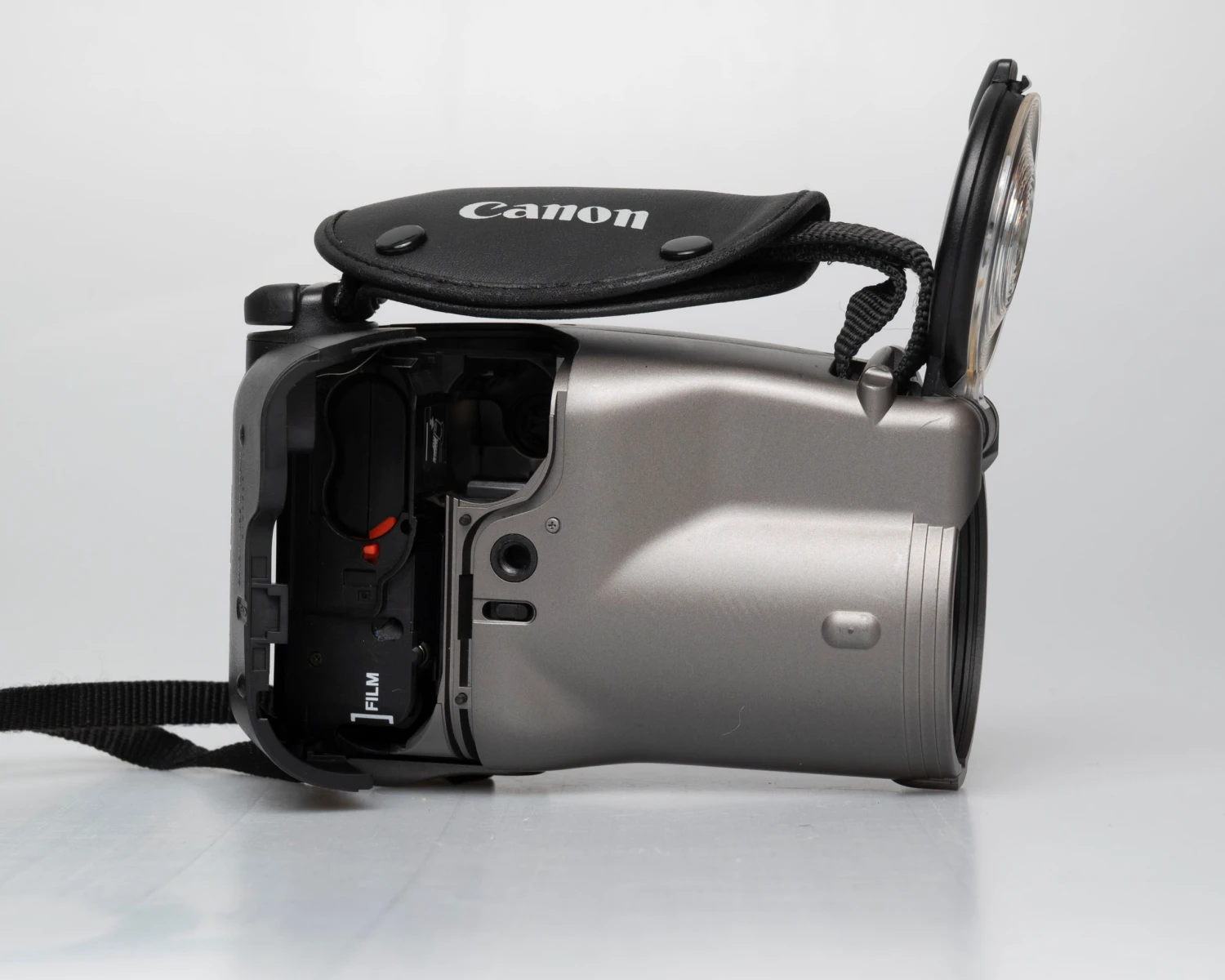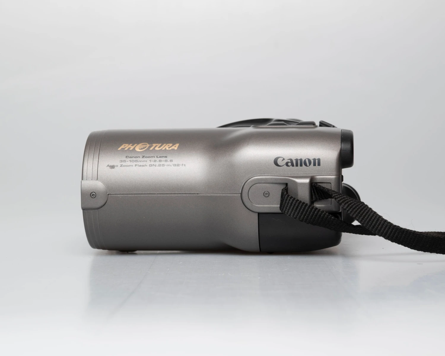 The Canon Photura is a very unusual looking but excellent quality point and shoot 35mm camera from the early 1990s. In Popular Mechanics’ 1990 roundup of advanced compact cameras, the reviewer described the Photura as ‘avant garde’ and gave it the highest marks of the lot. It looks more like an analog camcorder than a 35mm point-and-shoot but its form does really follow function: the camera is built around its 35-105mm f/2.8-6.6 lens (10 elements in 9 groups), which is unusually large and high quality for a point-and-shoot zoom (and quite fast at the wide angle end).