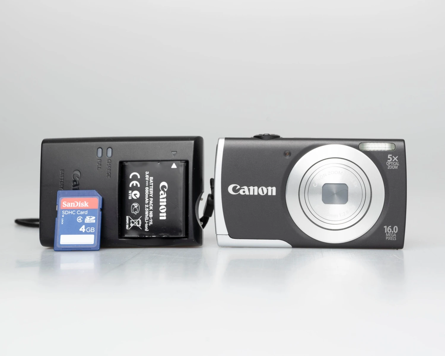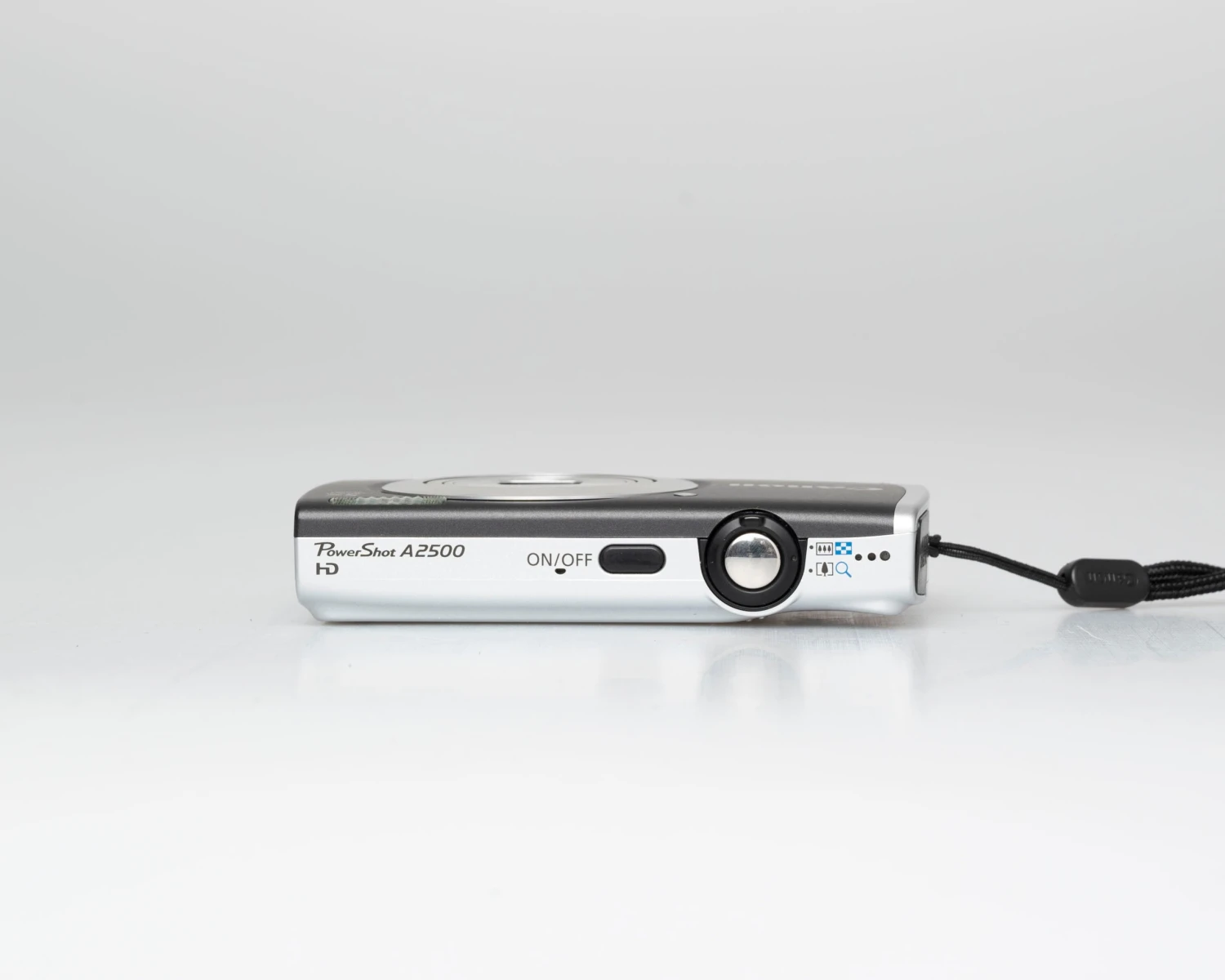 The Canon Powershot A2500 is a circa-2013 digital camera featuring a 16-megapixel CCD sensor and a 28-140mm (35mm equivalent) 5x optical zoom lens.