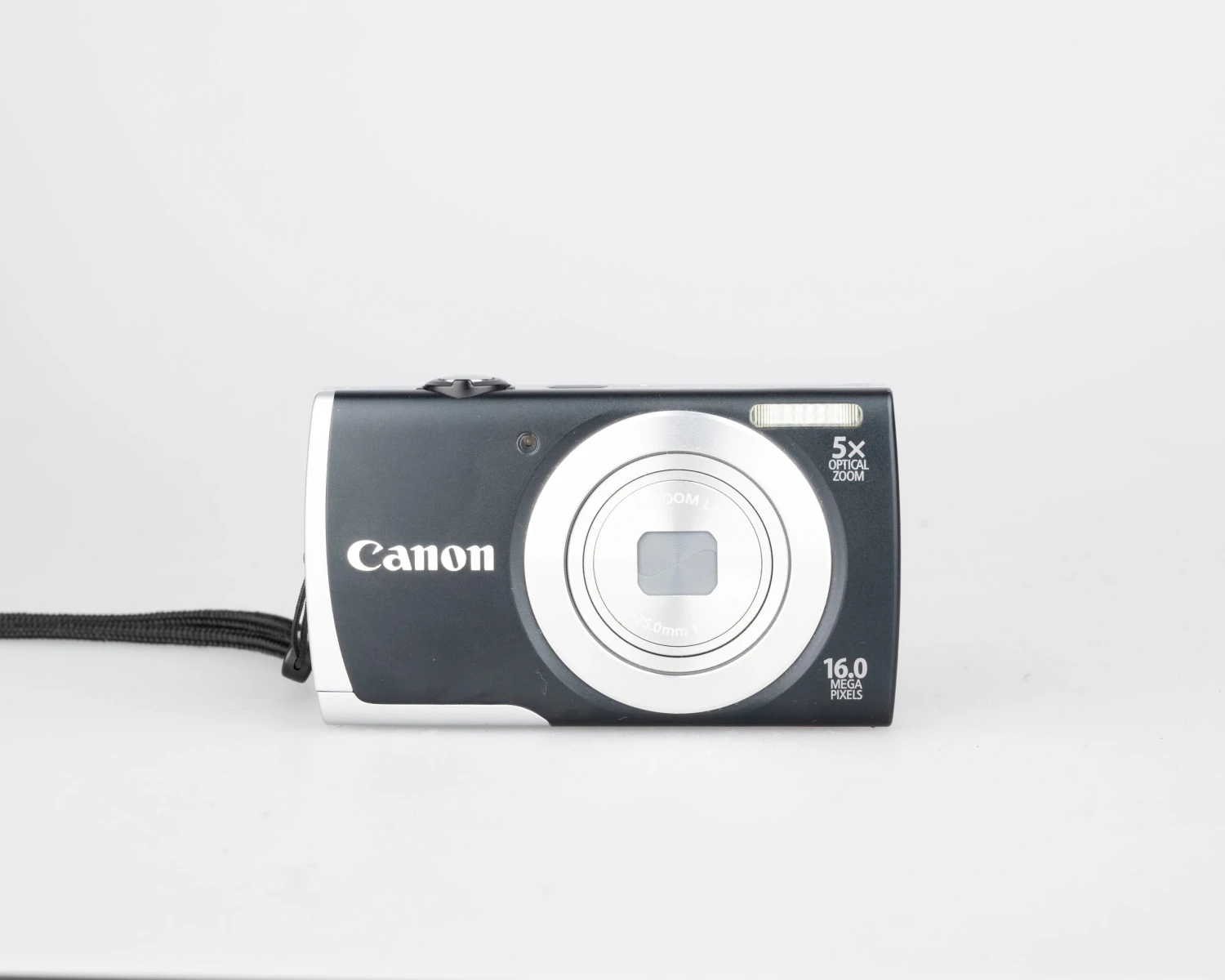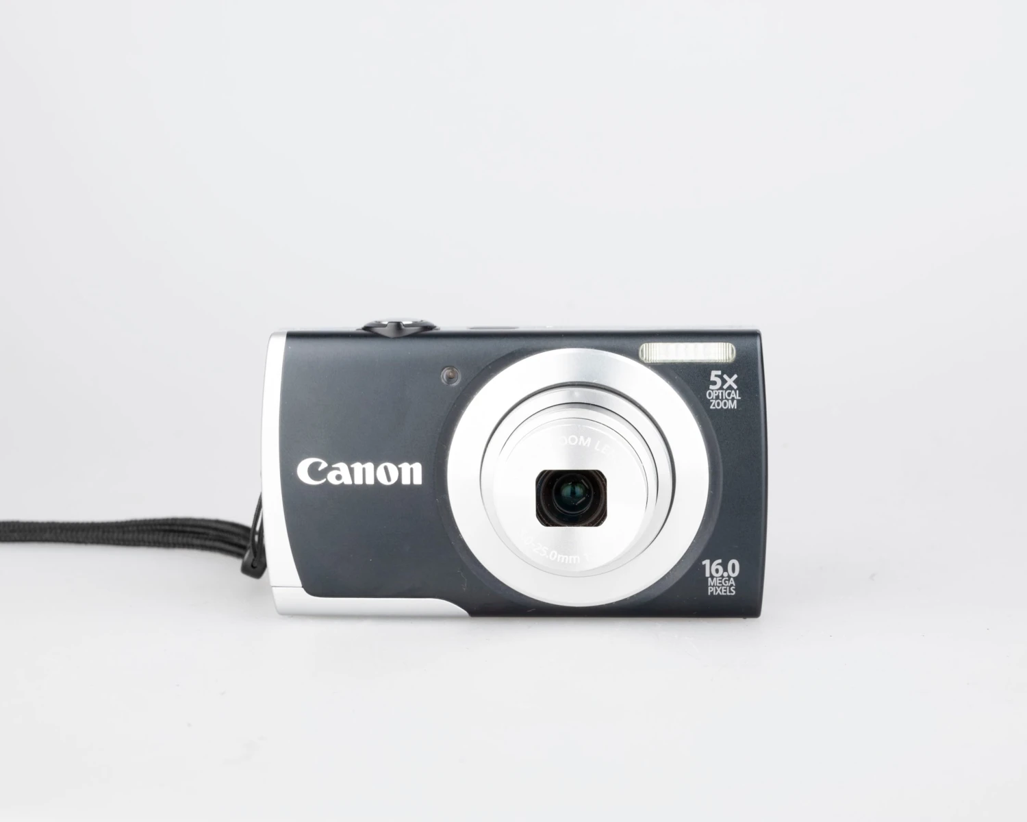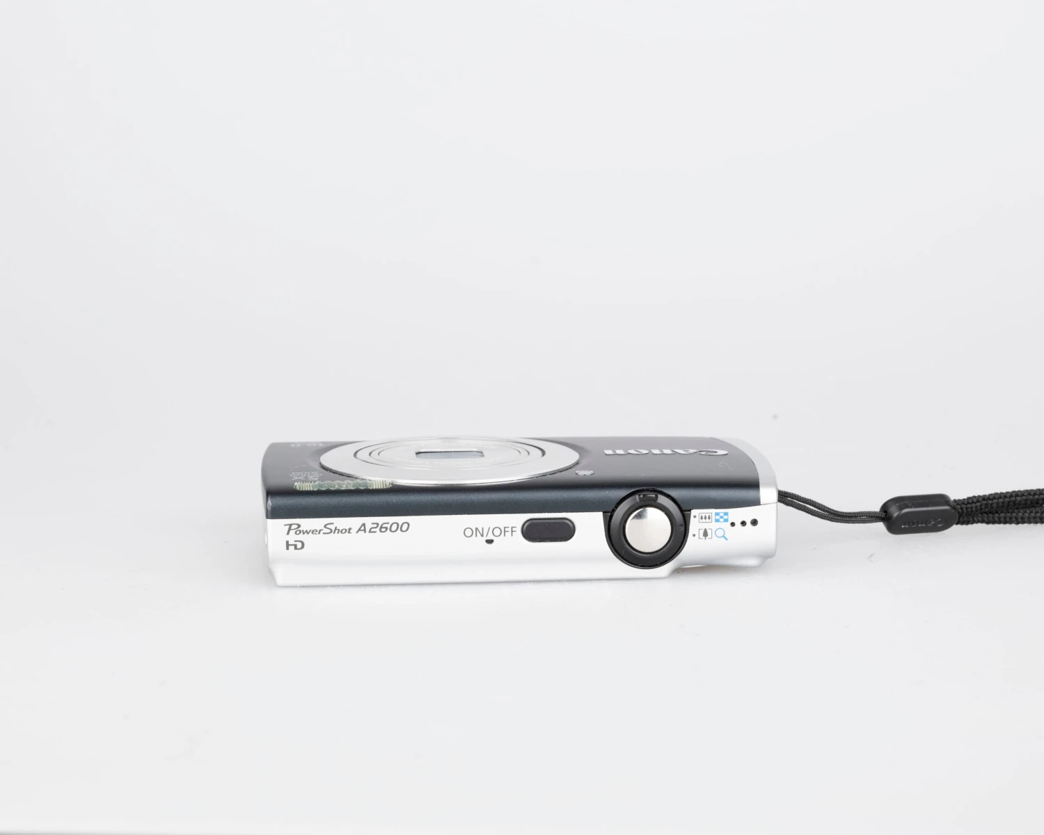 The Canon Powershot A2600 is a circa-2013 digital camera featuring a 16-megapixel CCD sensor and a 28-140 mm (35mm equivalent) 5x optical zoom lens.