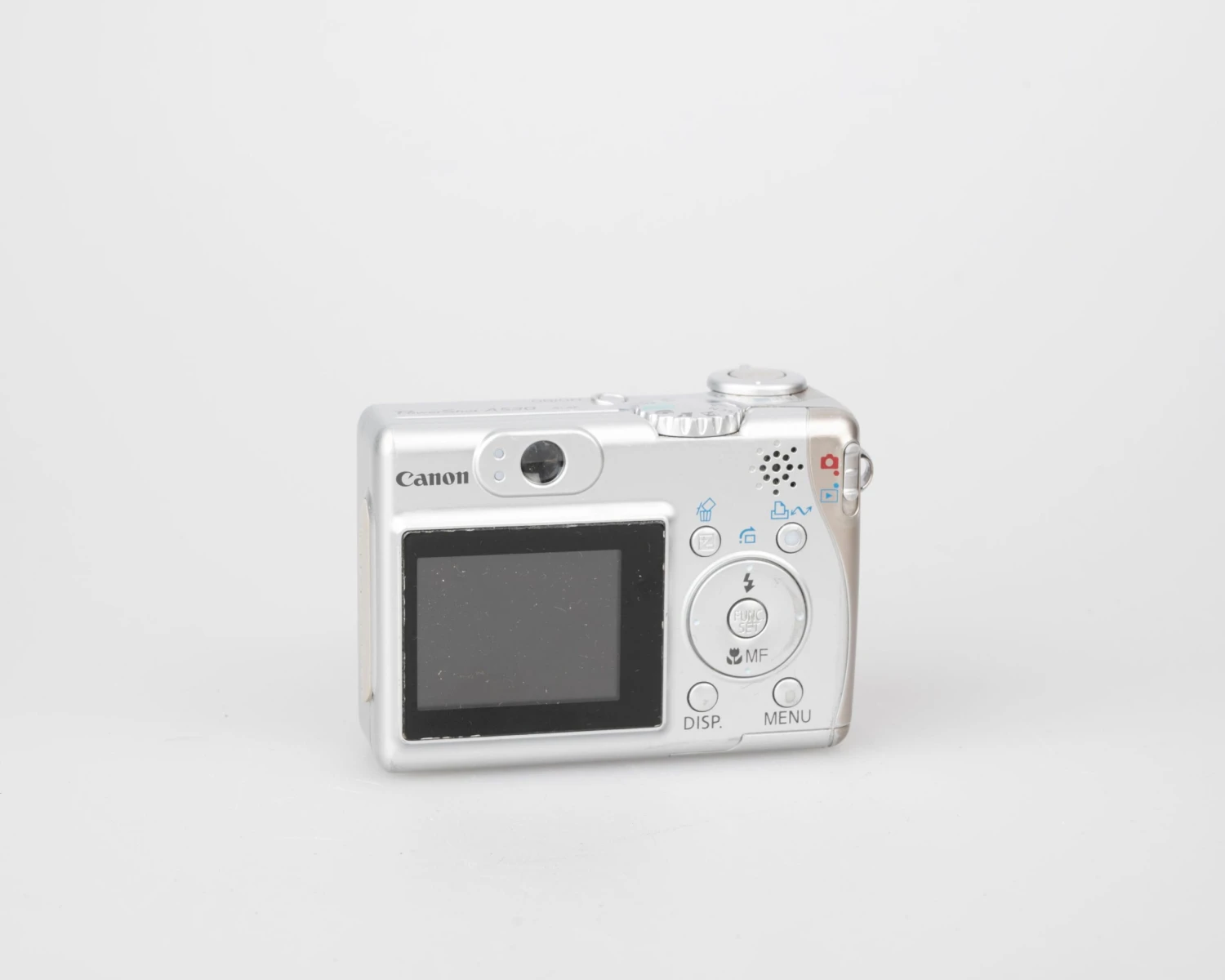 The Canon Powershot A530 is a circa 2006 digital camera featuring a 5-megapixel CCD sensor.