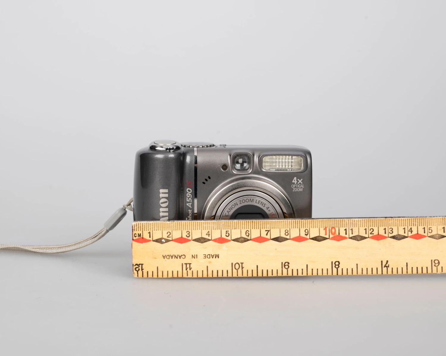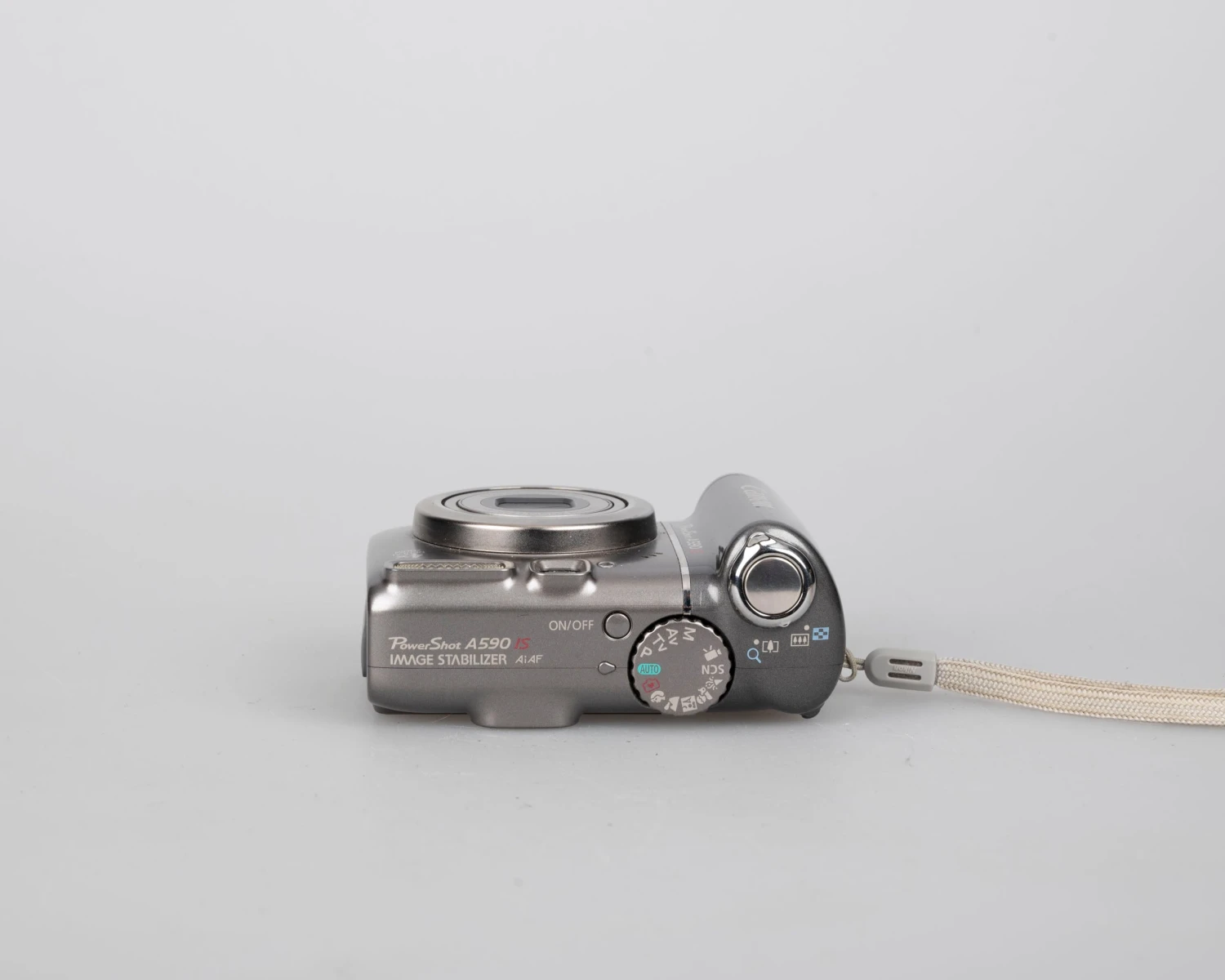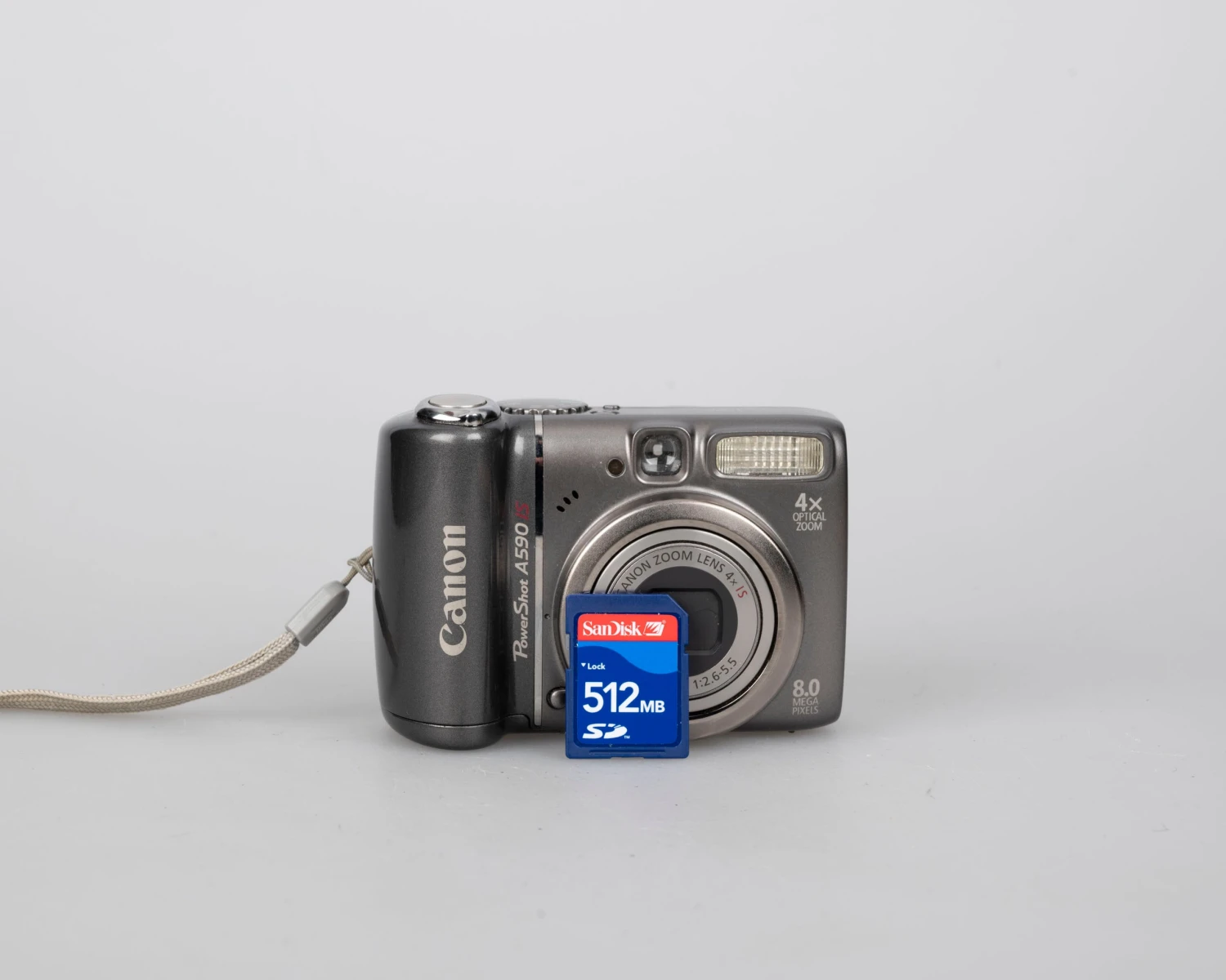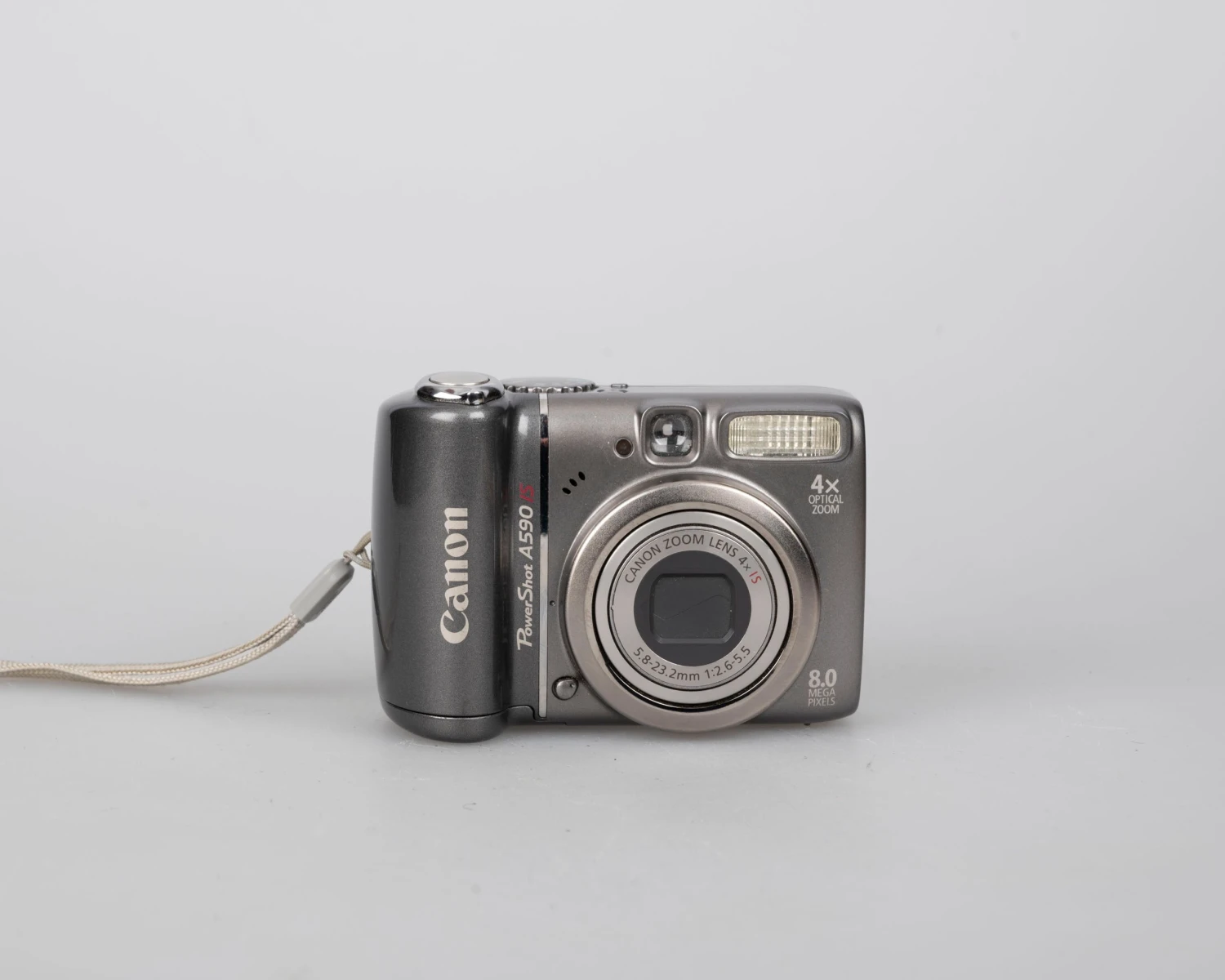 The Canon Powershot A590 IS is a lightweight circa-2005 digital camera featuring an 8-megapixel CCD sensor.