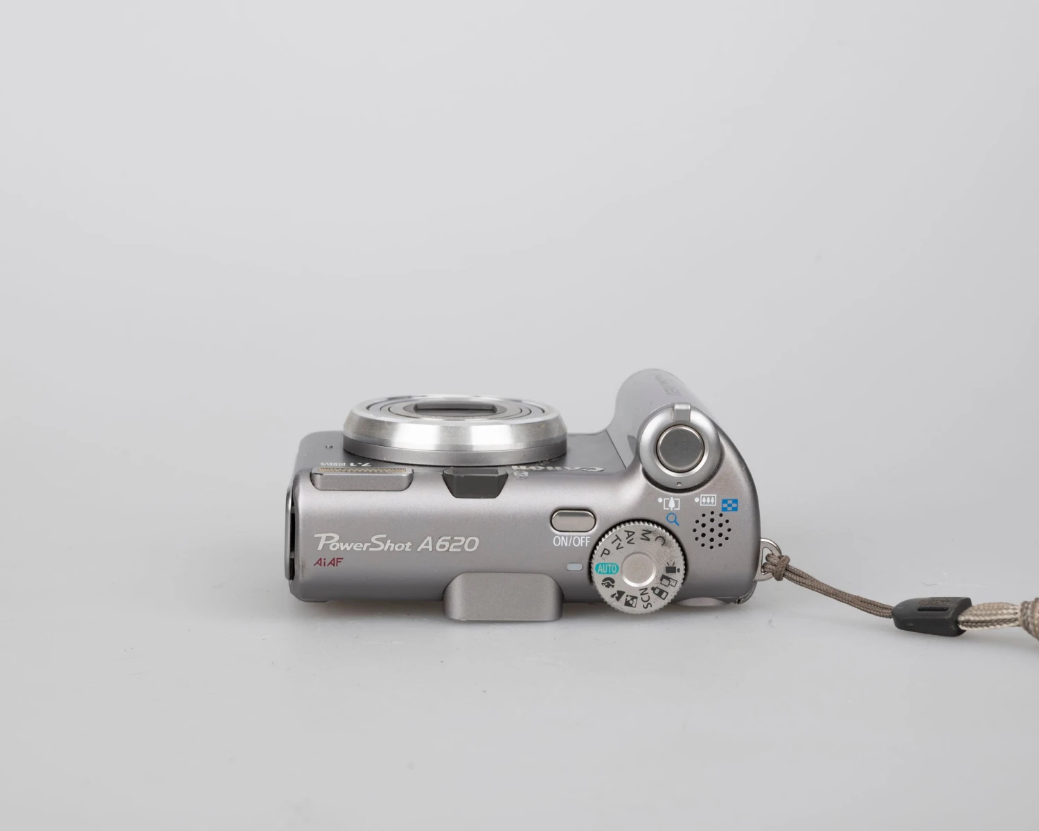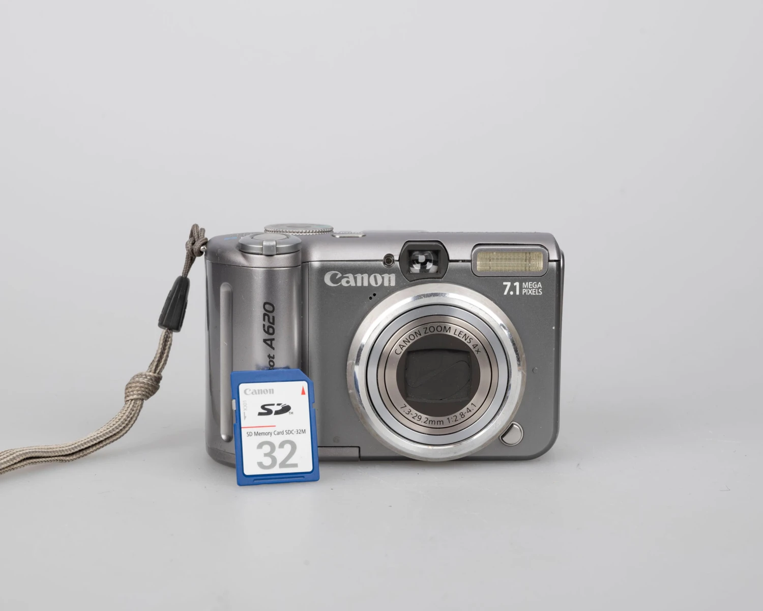The Canon Powershot A620 is a lightweight circa-2005 digital camera featuring an 8-megapixel CCD sensor.