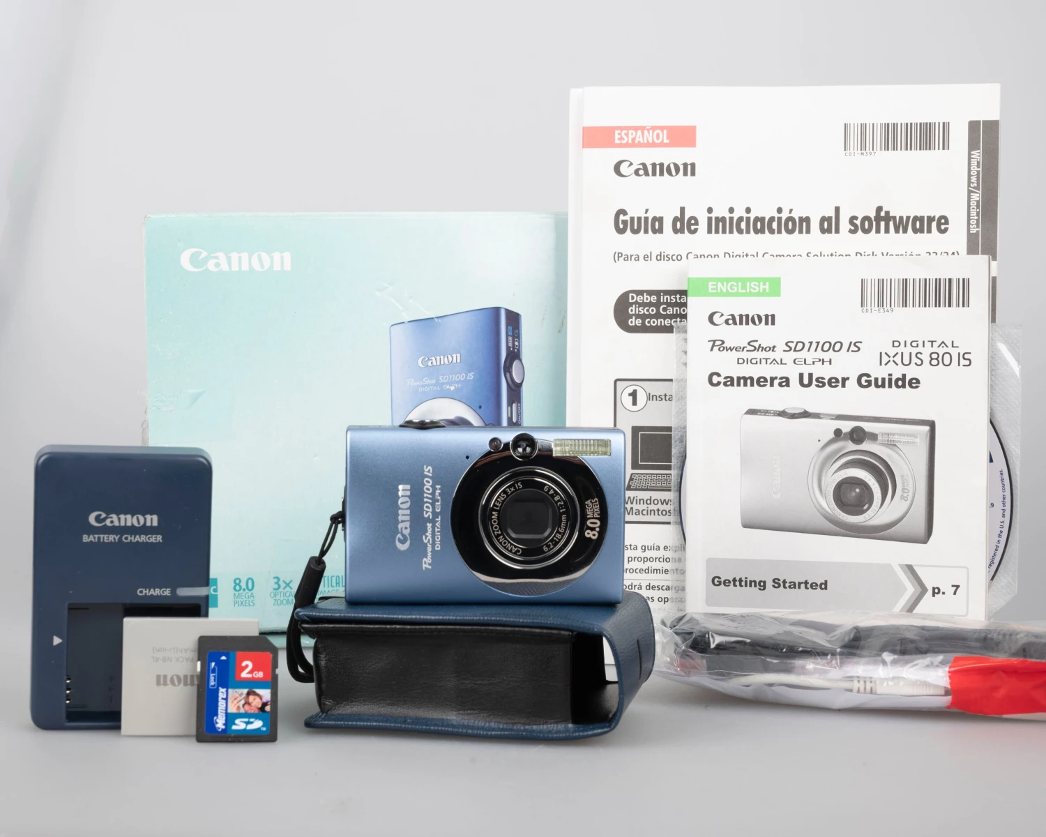 The Canon PowerShot SD1100 IS Digital ELPH is an ultra-compact 8-megapixel CCD sensor digicam from 2008. It features a 38-114mm (35mm film equivalent) zoom lens.