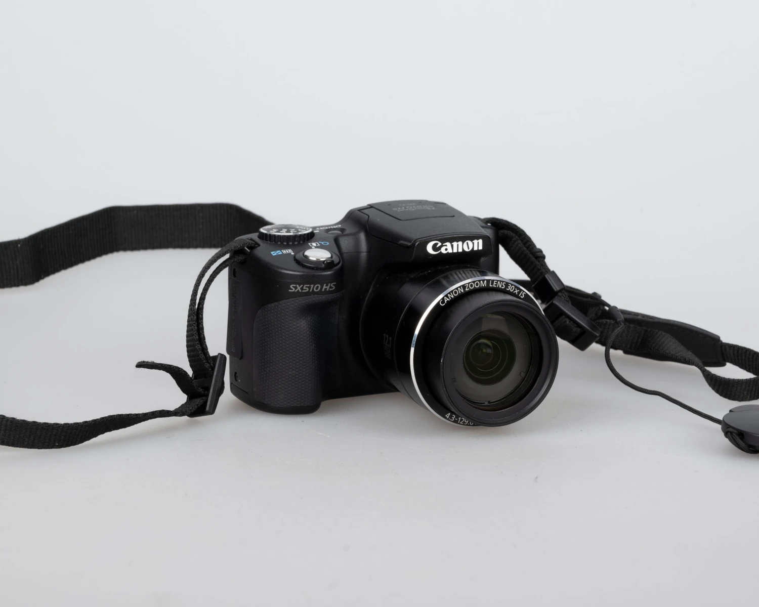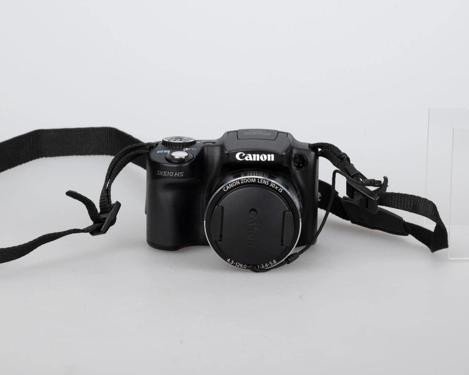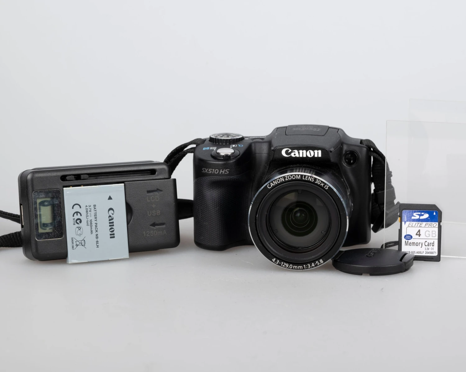 The Canon PowerShot SX510 is a high-quality circa-2013 digital camera featuring a 12.1-megapixel sensor and a 30x optical zoom lens. This camera and related Canon PowerShot SX models are sometimes described as a ‘mini bridge cameras’ because offer DSLR-like features and lens quality in a very compact form factor.