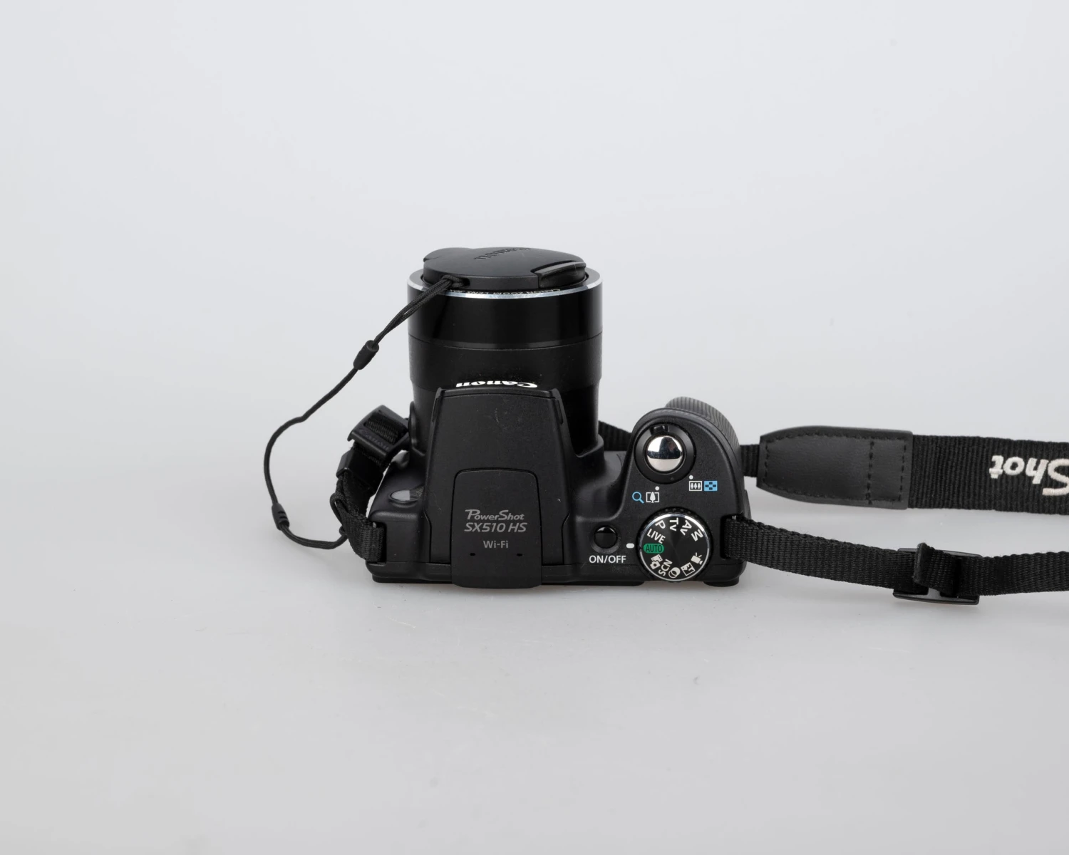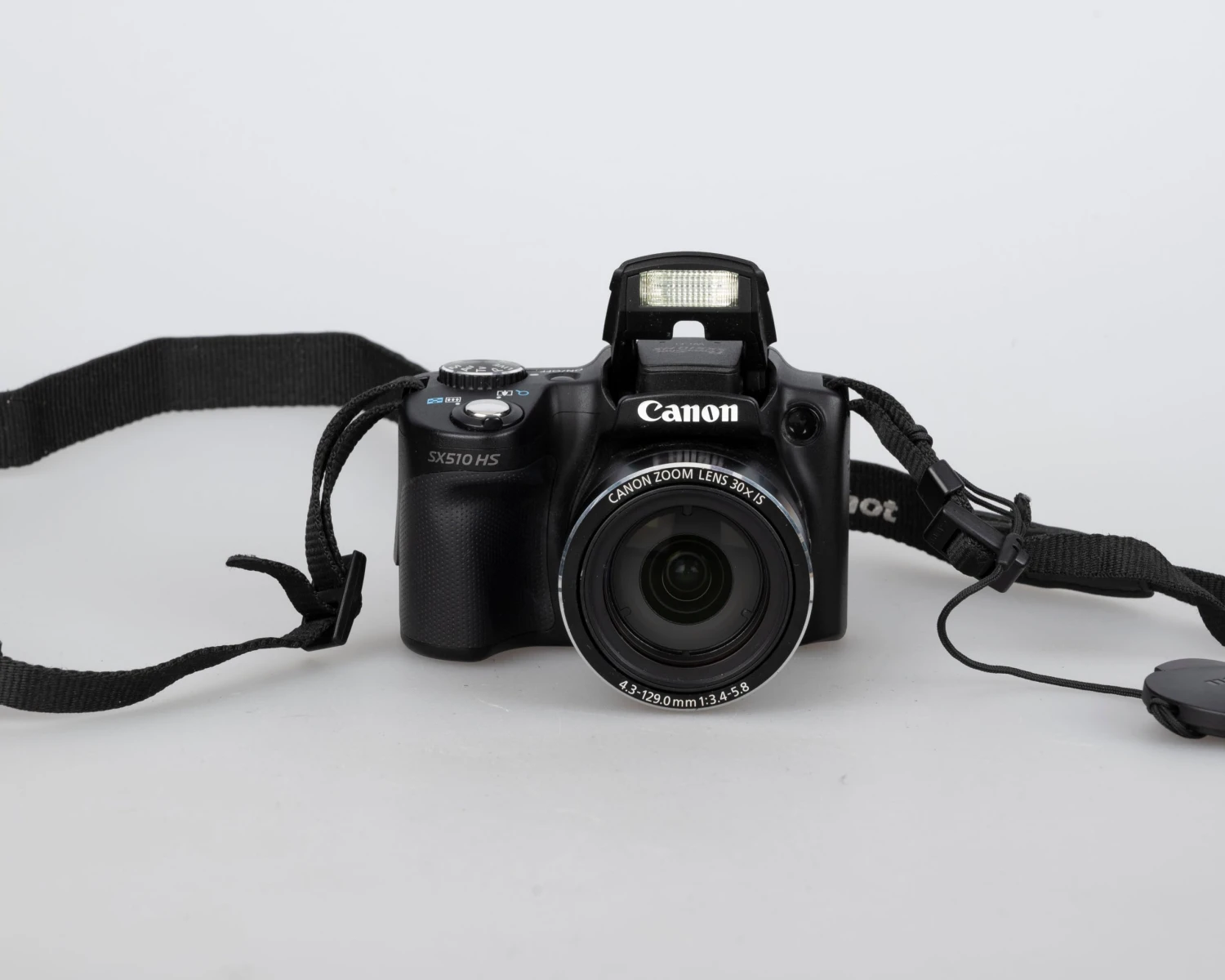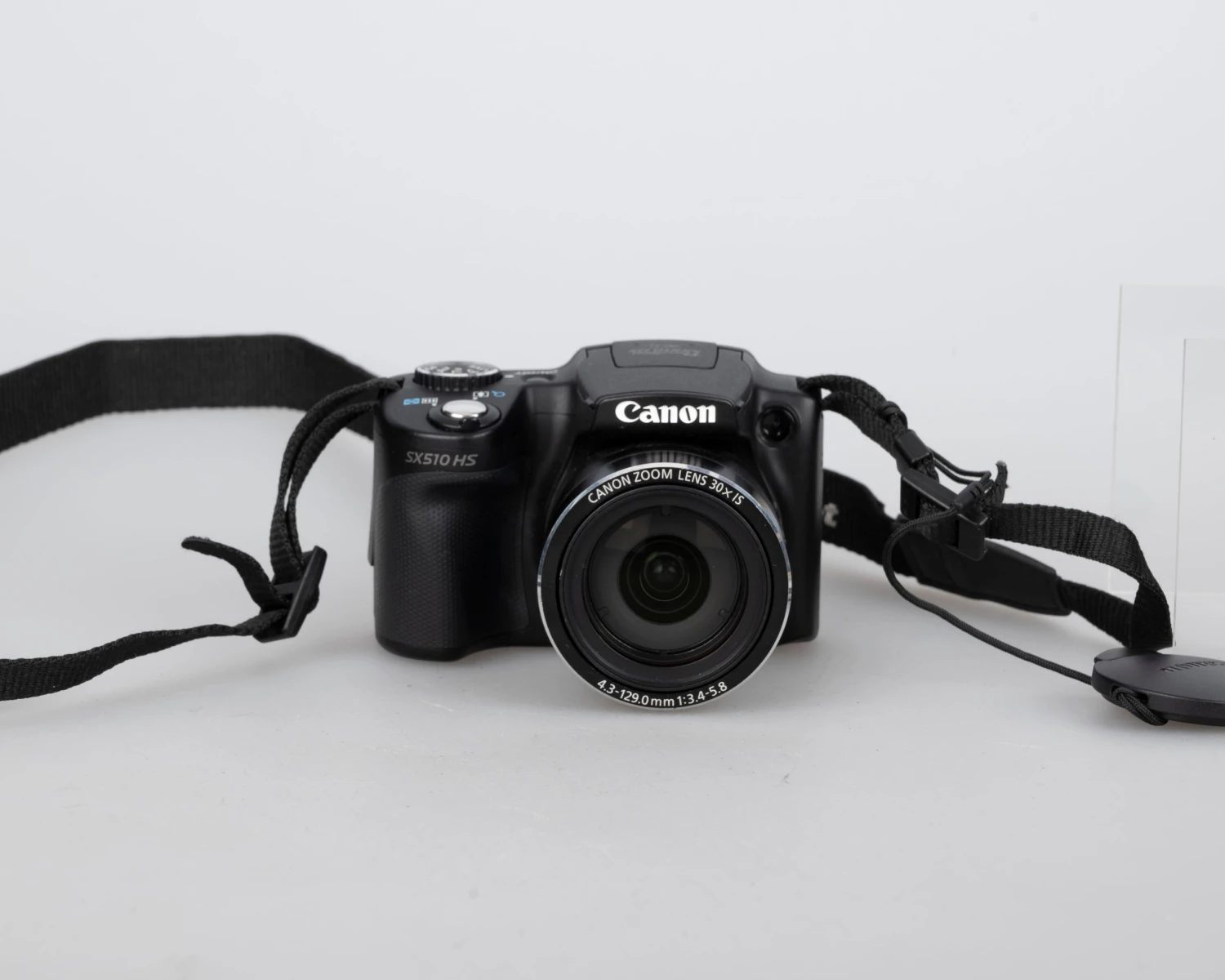 The Canon PowerShot SX510 is a high-quality circa-2013 digital camera featuring a 12.1-megapixel sensor and a 30x optical zoom lens. This camera and related Canon PowerShot SX models are sometimes described as a ‘mini bridge cameras’ because offer DSLR-like features and lens quality in a very compact form factor.