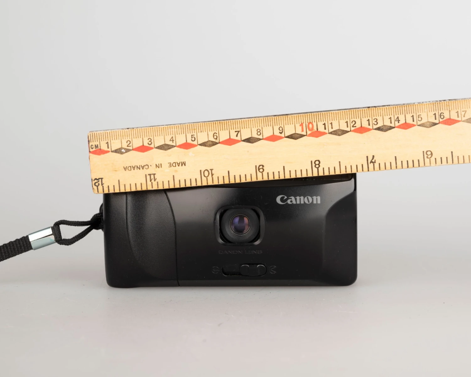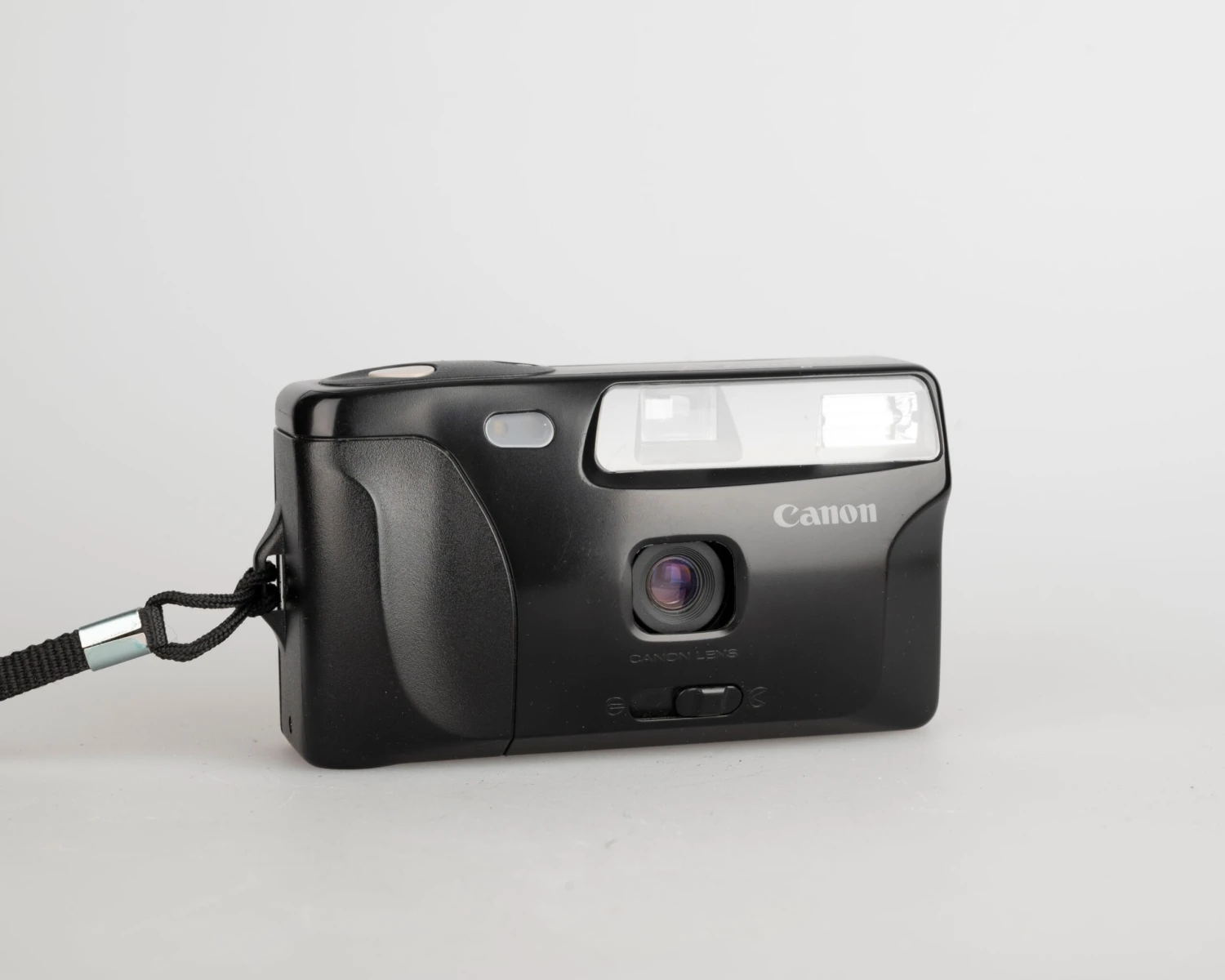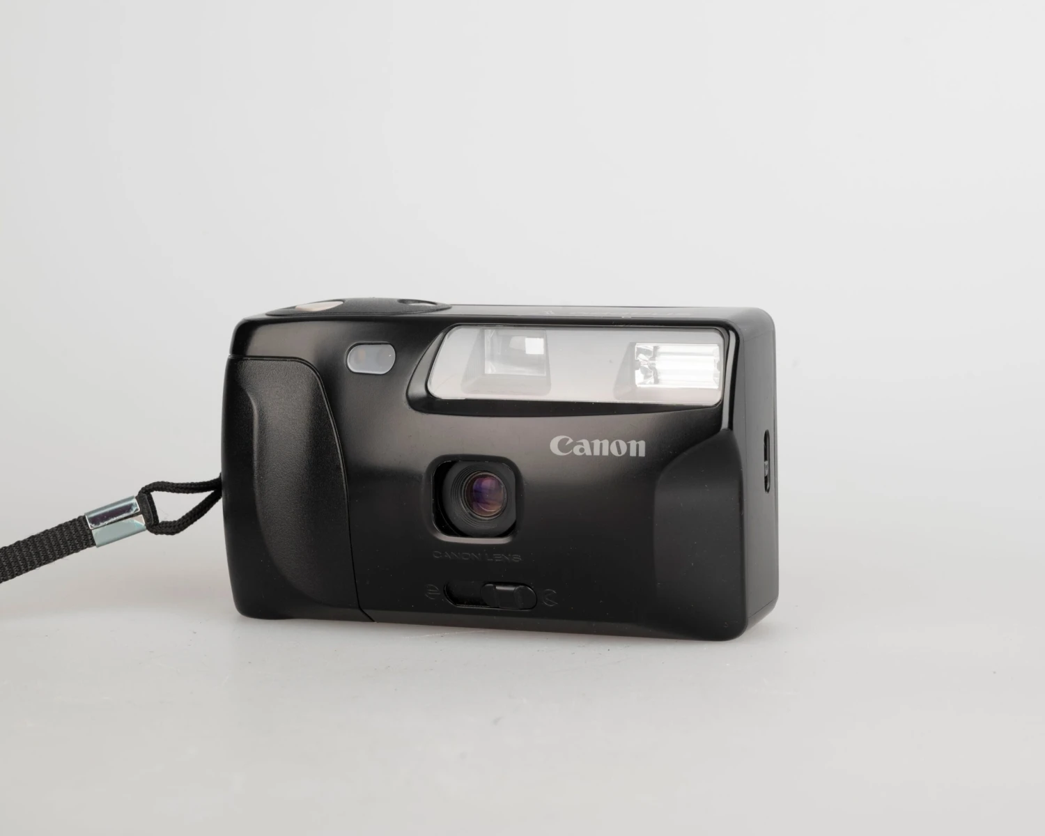 The Canon Snappy V is a simple, solidly constructed fixed-focus 35mm camera from circa 1989.