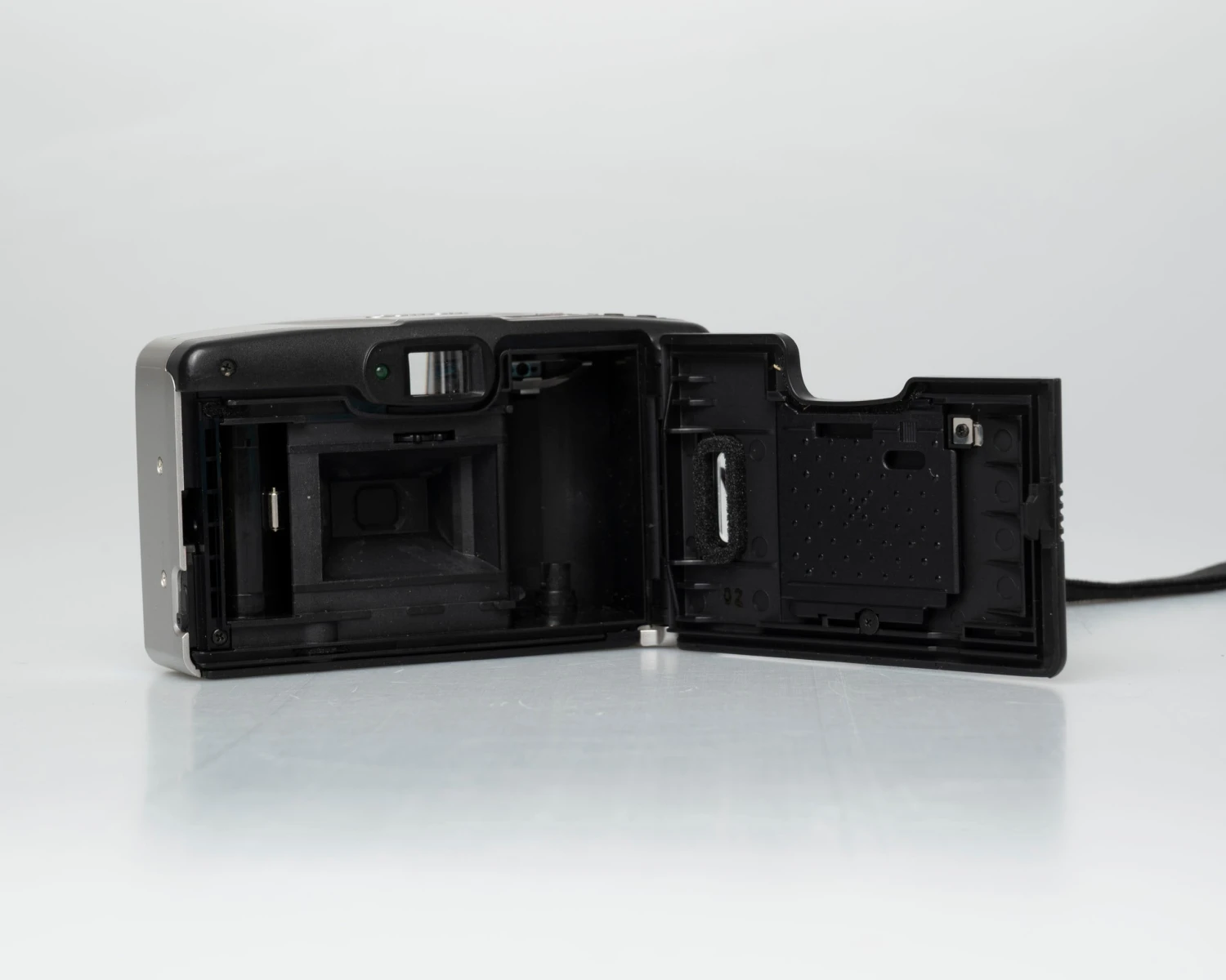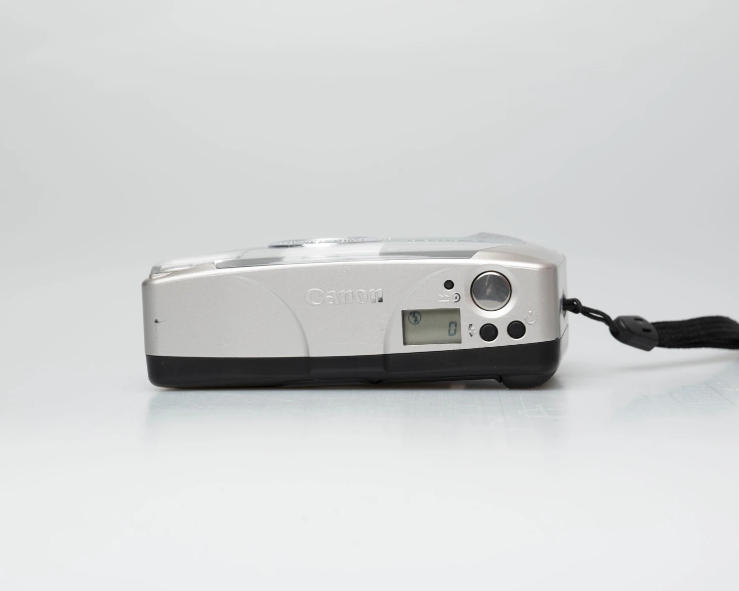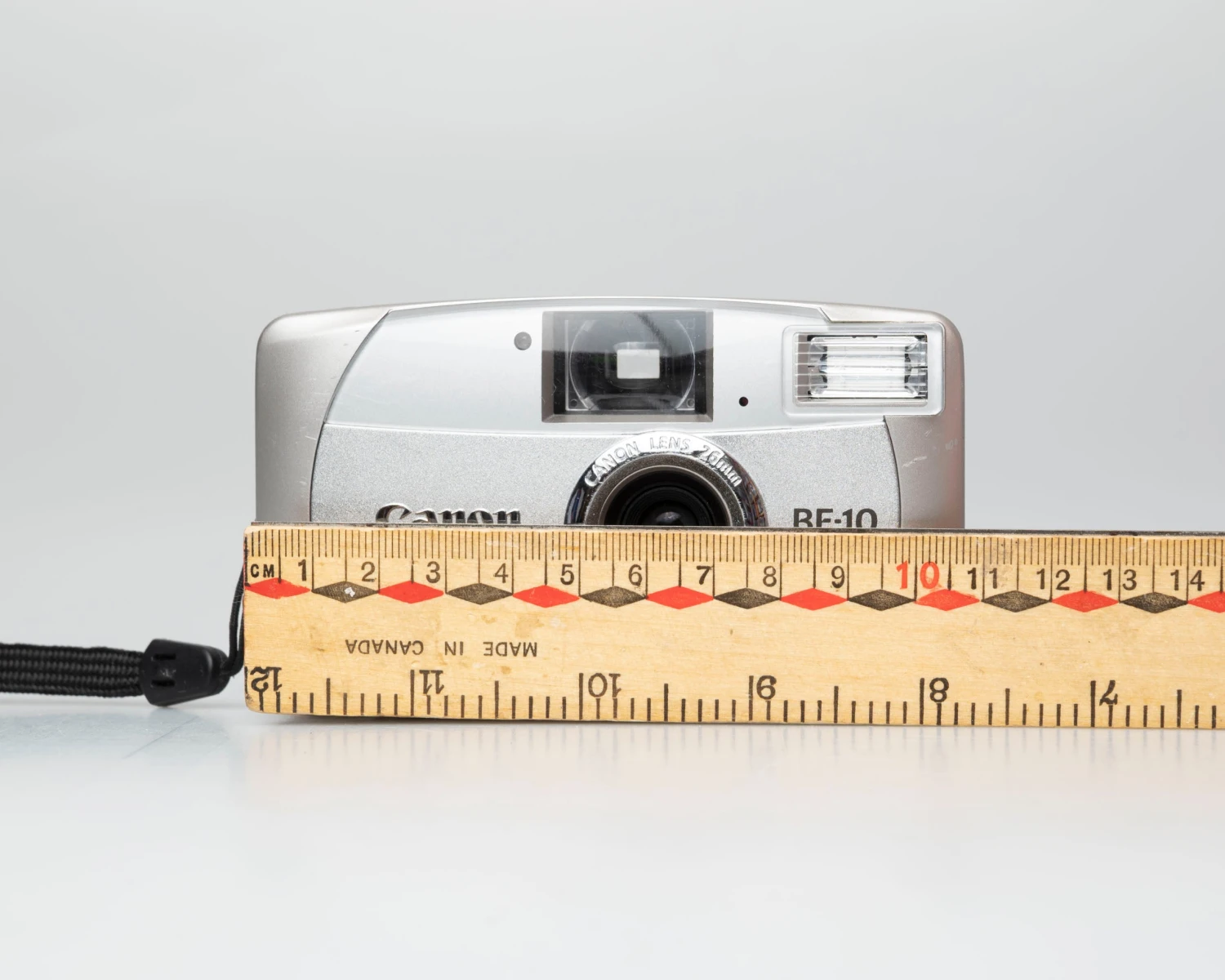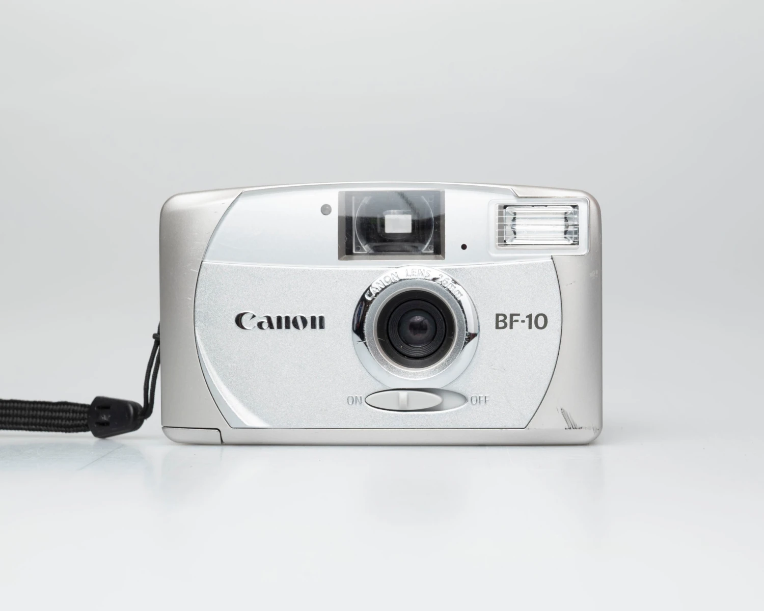 The Canon Sure Shot BF-10 (aka Prima BF-9S) is a very simple, fully automatic 35mm point-and-shoot camera from circa 2003 that features an unusually wide 26mm lens and bright, large viewfinder.