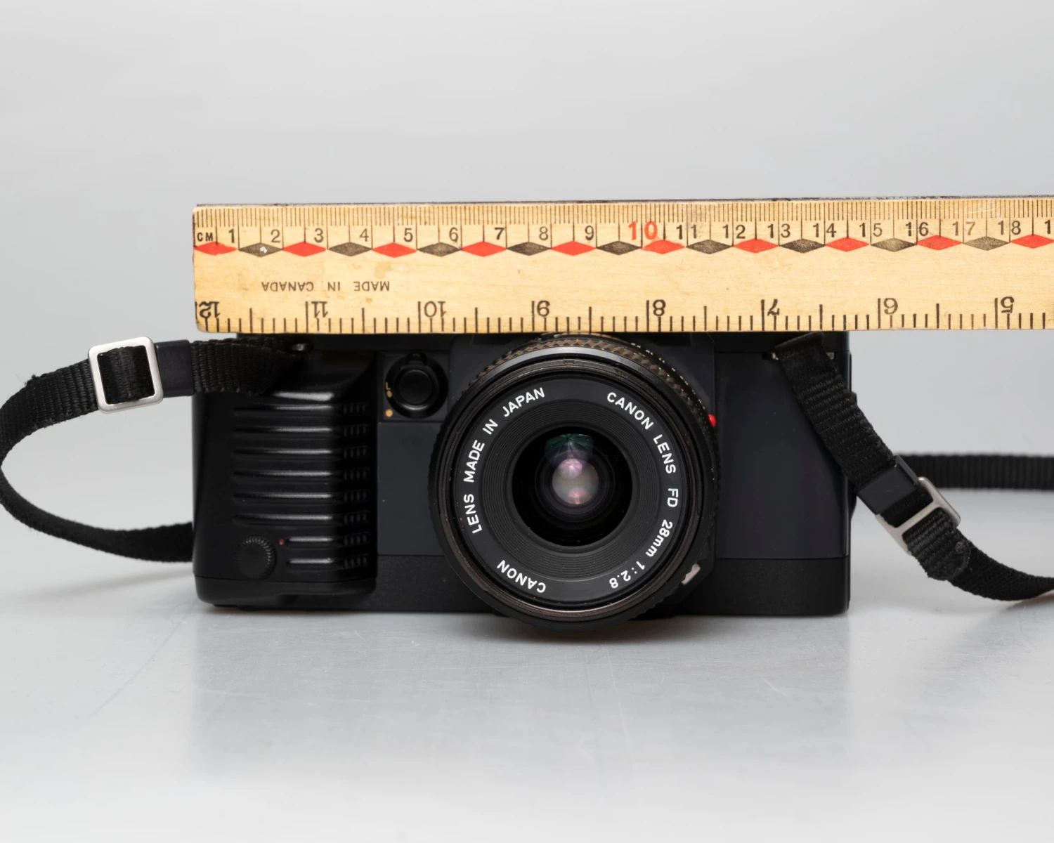 The included lens is a sharp, compact, moderately wide-angle Canon FD 28mm f2.8.