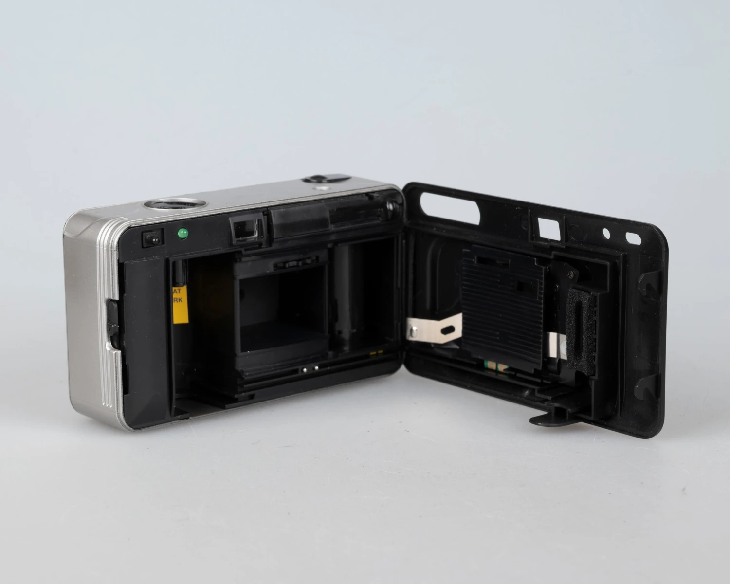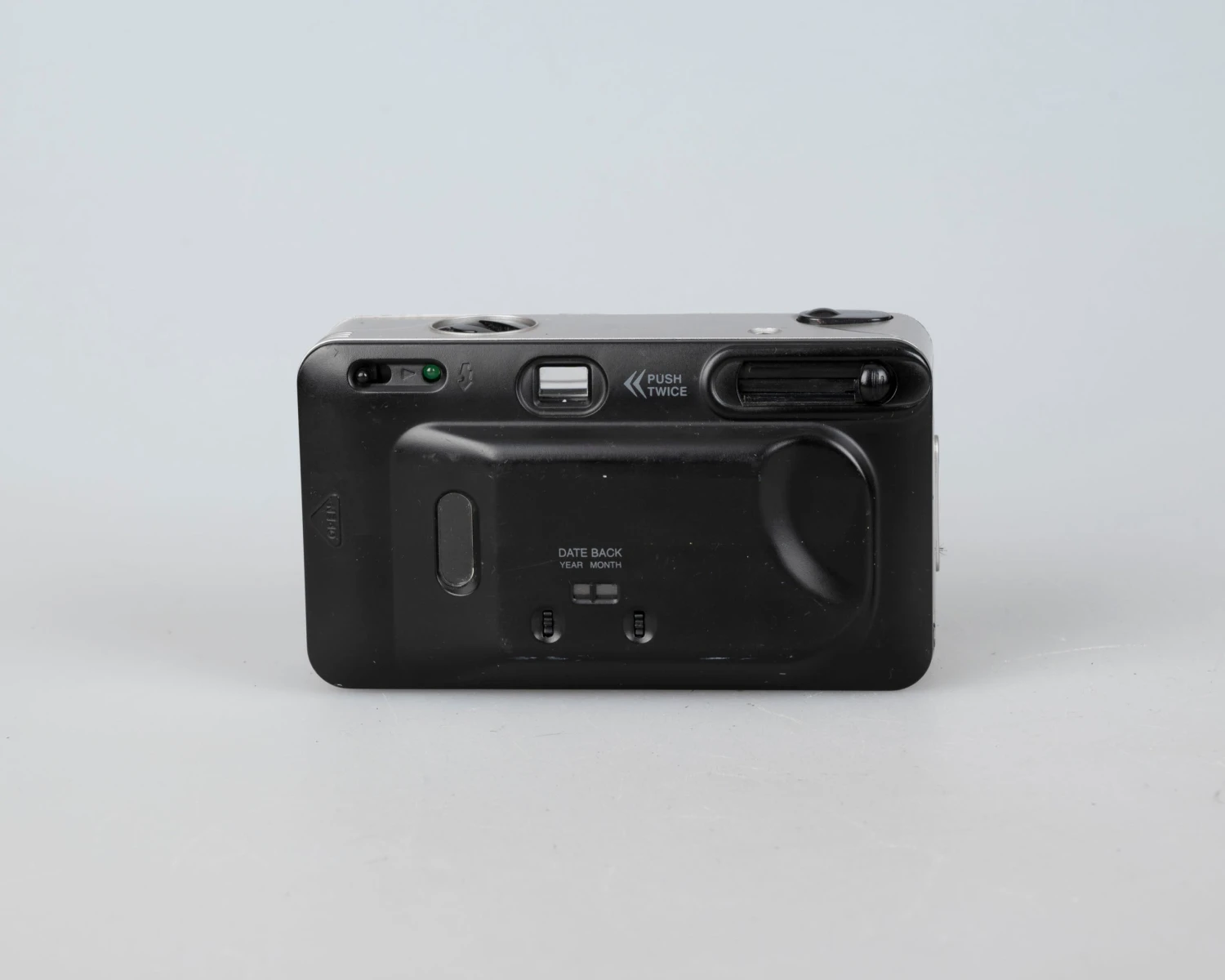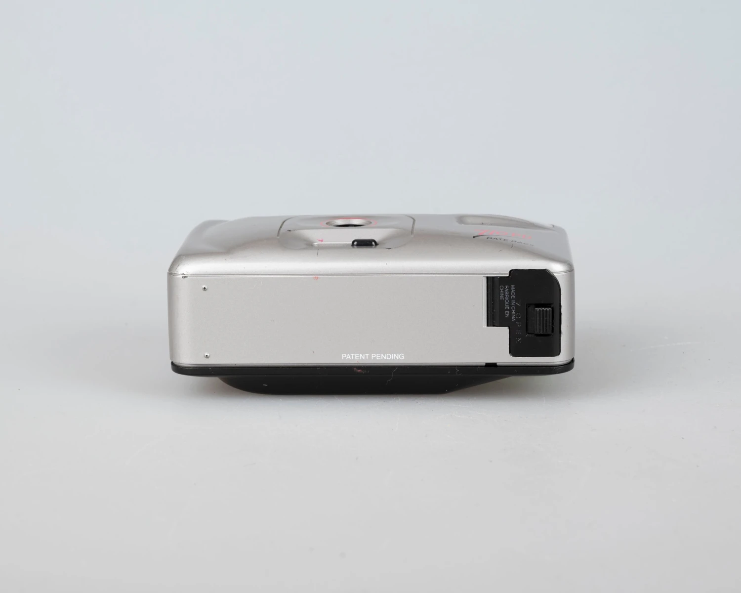 The camera was tested with batteries installed and a film roll running through the camera (the film was not developed). We were not able to test the optional date imprinting feature. The camera is in very good cosmetic condition (see photos) with minor wear.