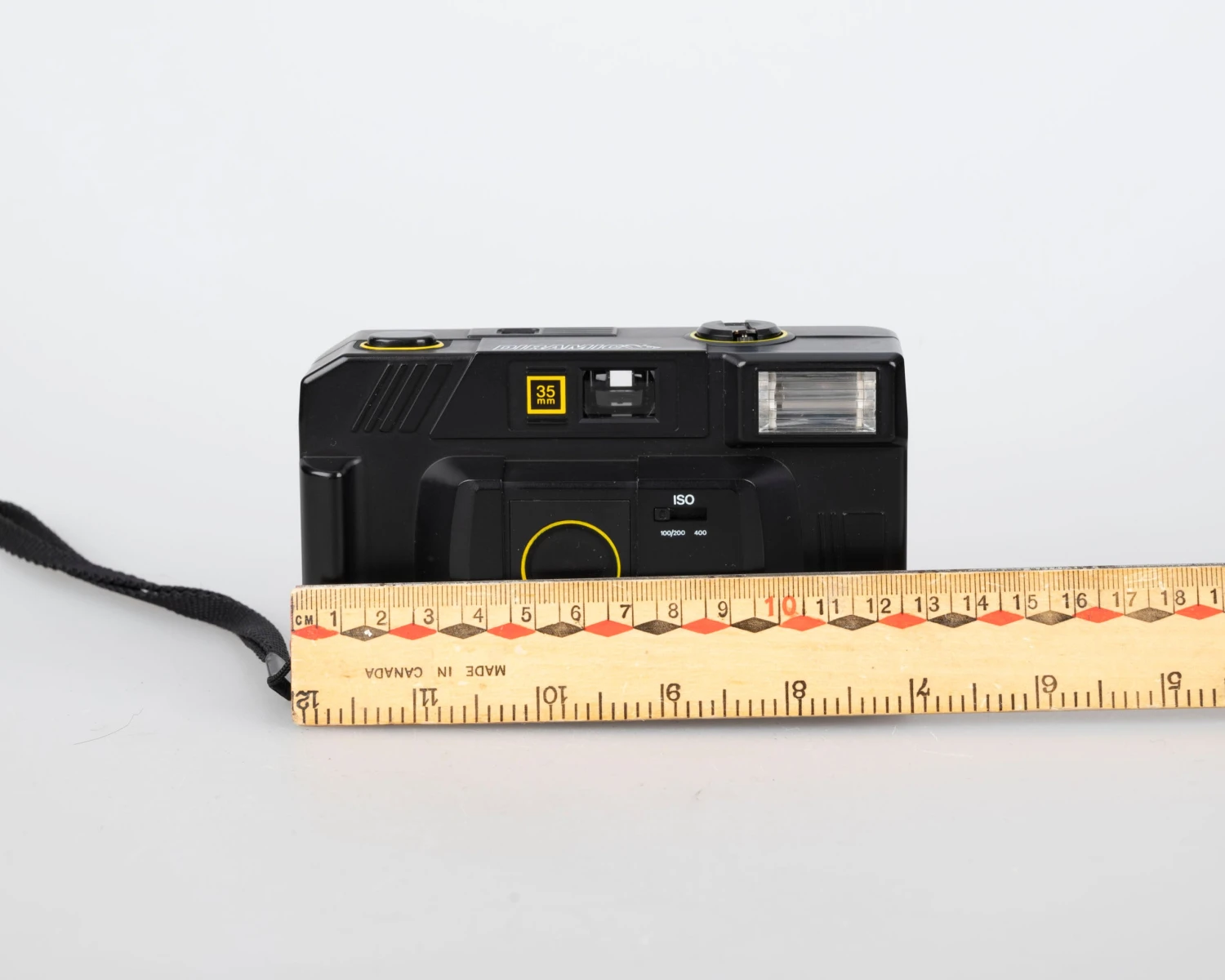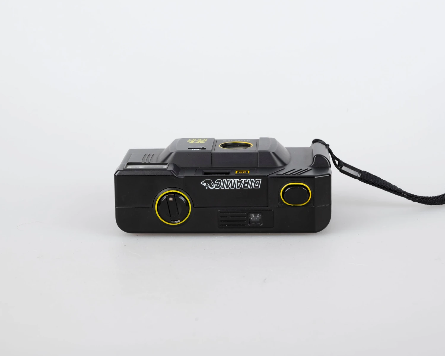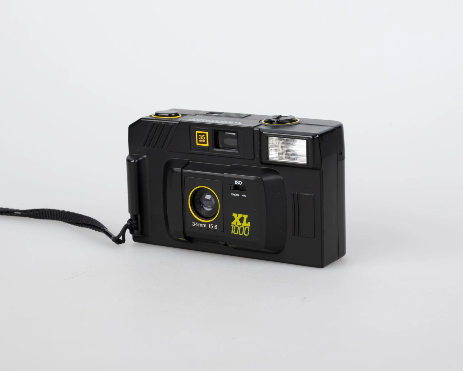 The Diramic XL 1000 is a simple focus-free, mechanical drive 35mm point-and-shoot camera from the 1980s. It has a fixed 38mm f5.6 lens and supports metering for ISO 100/200, and 400 films. The camera’s flash will not fire unless it’s switched on (a nice feature in our opinion).