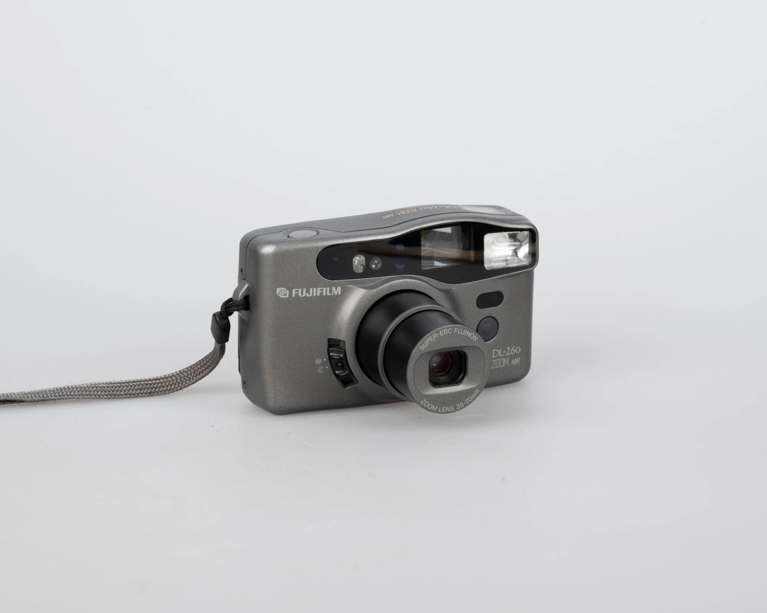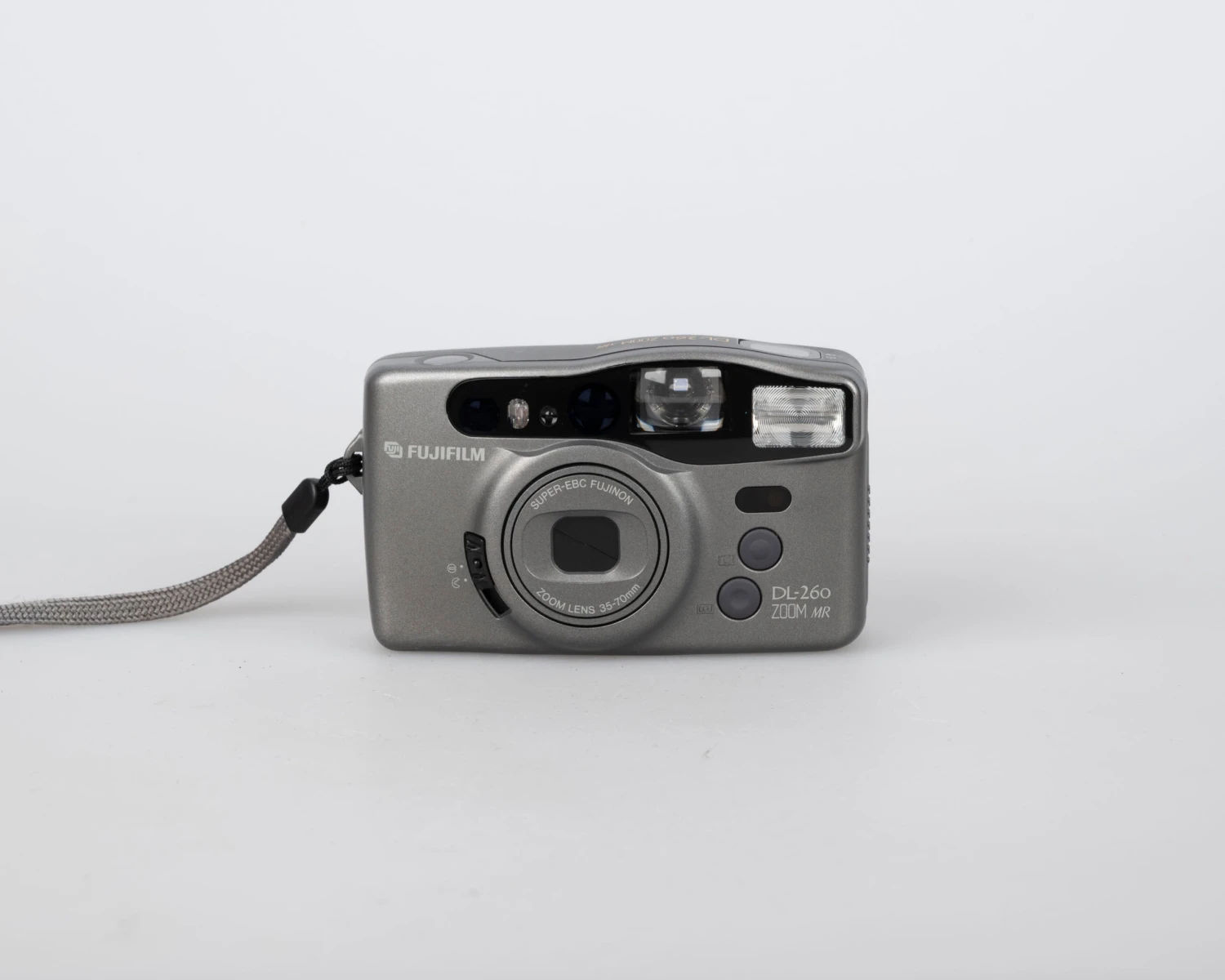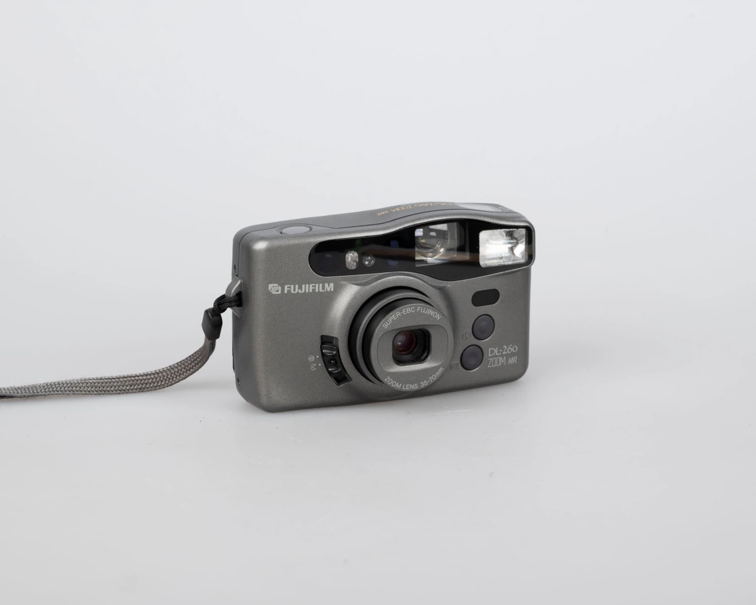 The Fujifilm DL-260 is a user-friendly but good quality 35mm point and shoot featuring a 35-70mm zoom lens. Like most Fujifilm cameras of the era, it uses a quick and foolproof ‘drop-in loading’ system for film.