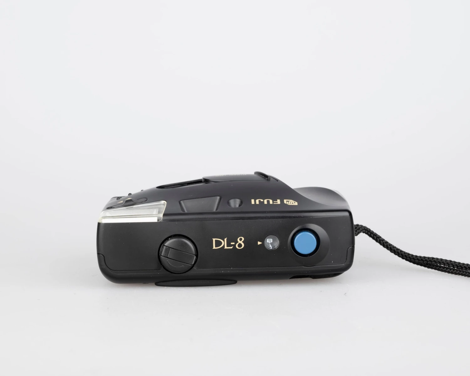 The Fujifilm DL-8 (called the DL-7 Plus in some countries) is a very basic compact focus-free point-and-shoot 35mm film camera with a 35mm 3-element lens. The camera also offers Fuji’s very simple ‘drop-in loading’ system where you just drop the film in the camera. This camera works best with color negative film.