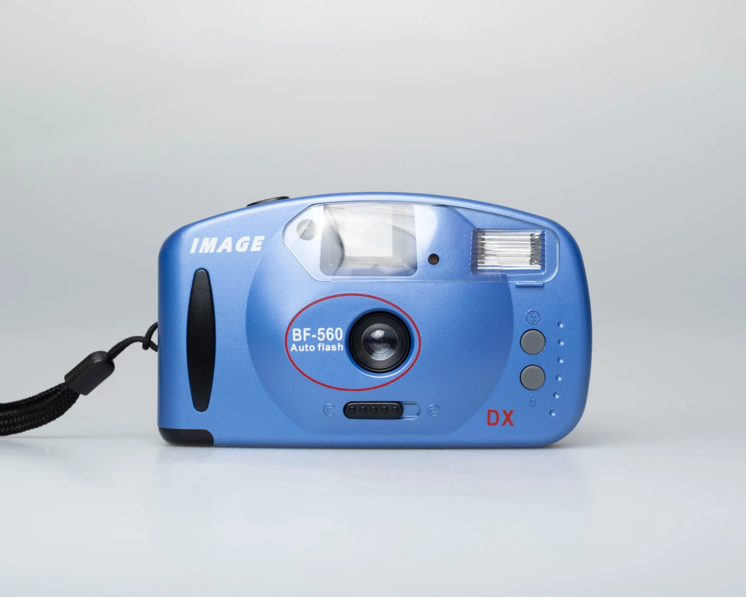 The Image BF-560 is a relatively basic motorized 35mm point-and-shoot camera from the 1990s featuring a moderately wide 34mm fixed focus lens.