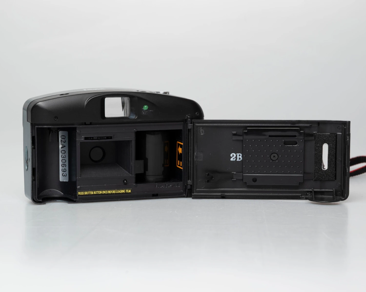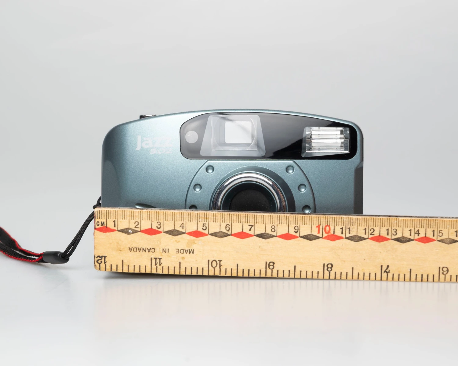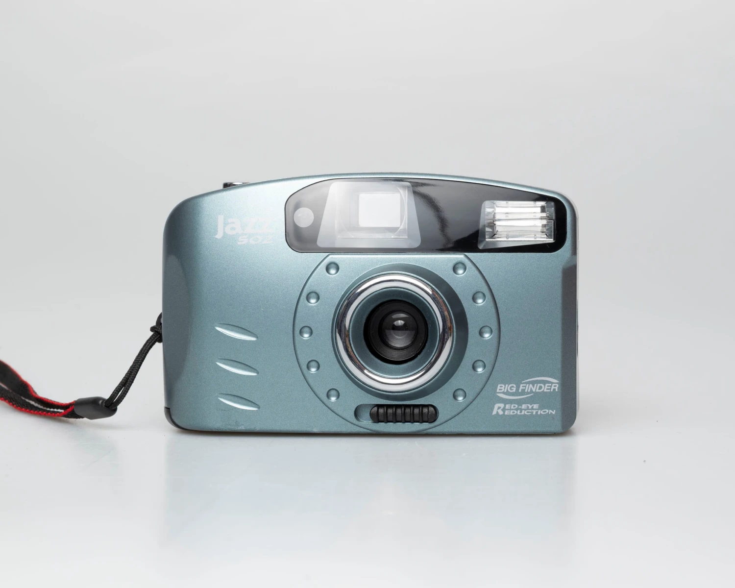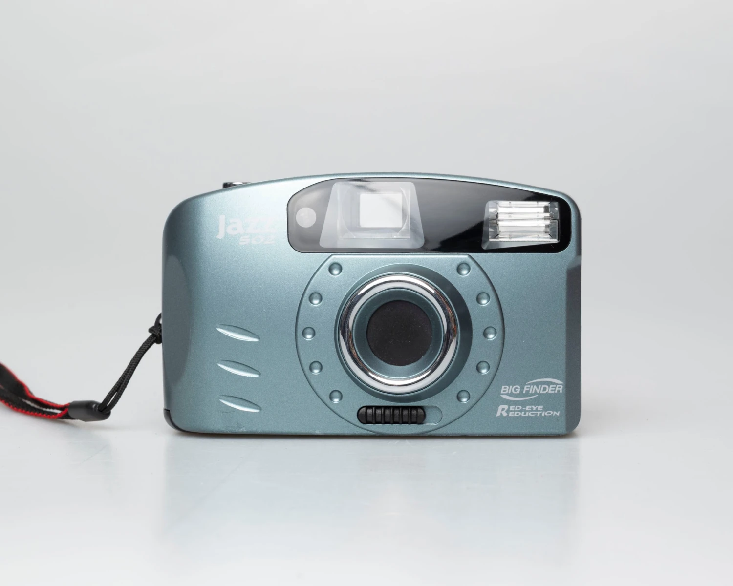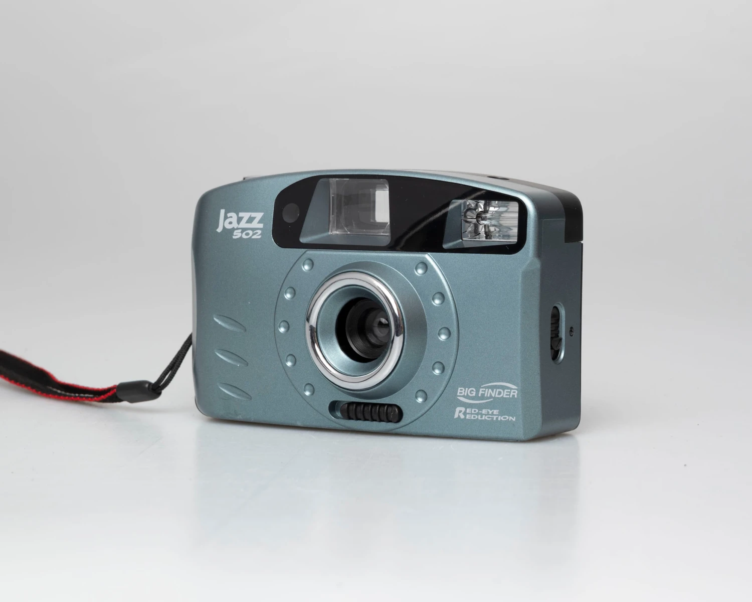 The Jazz 502 Big Finder is a simple 35mm point-and-shoot from the 1990s. This camera features motorized winding and a flash that can be switched on and off. It’s a focus-free design where subjects from 1.5 metres to infinity should appear in focus.