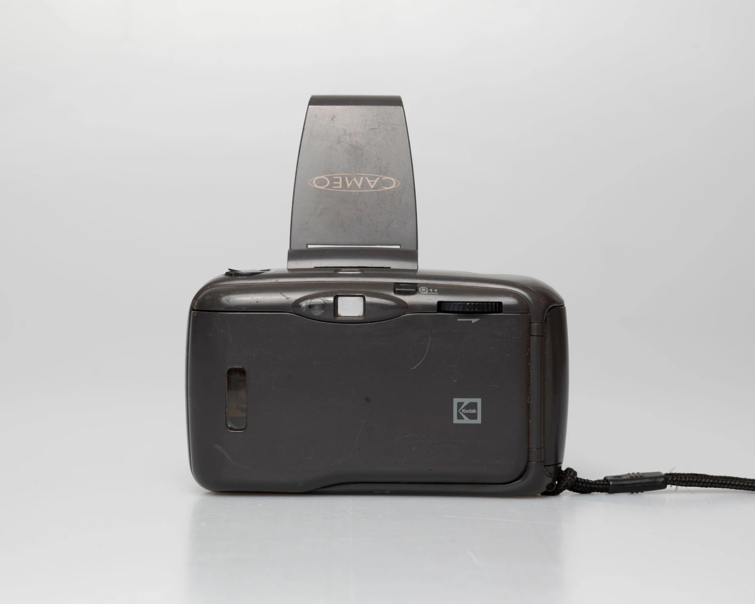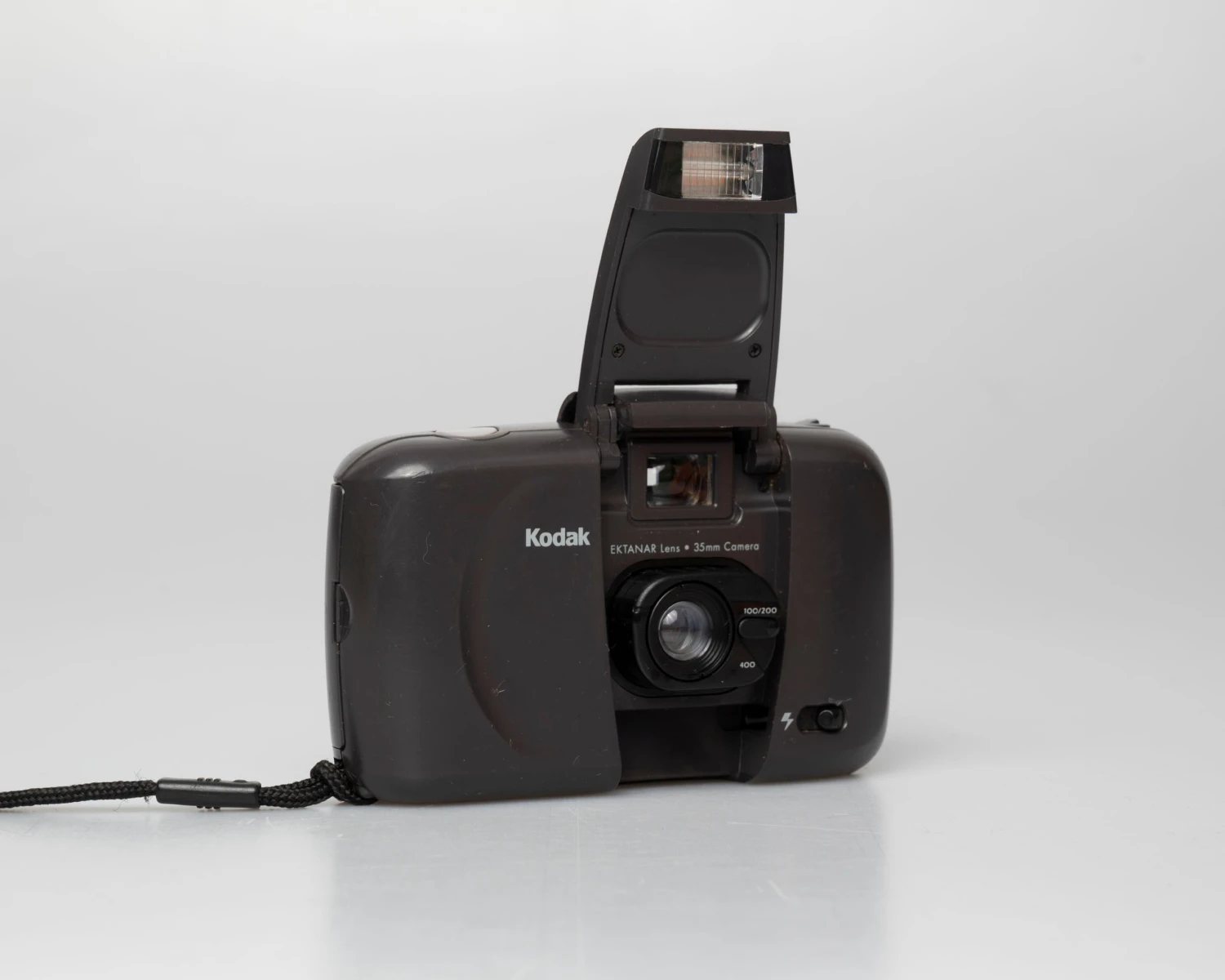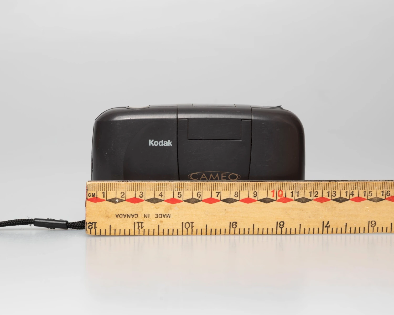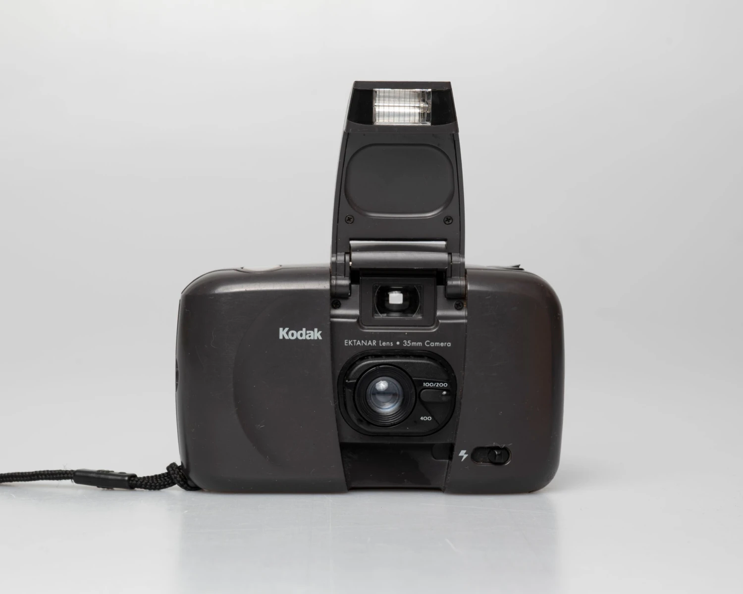 The Kodak Cameo EF is an ultra compact and very simple 35mm camera with a very interesting and futuristic-looking design. It’s a fixed focus mechanical camera with a flash for lower light situations. The camera’s Ektarnar wide angle lens is quite sharp. We also like the fact that the flash sits quite far above the lens; this tends to give more flattering results than a more typical arrangement.