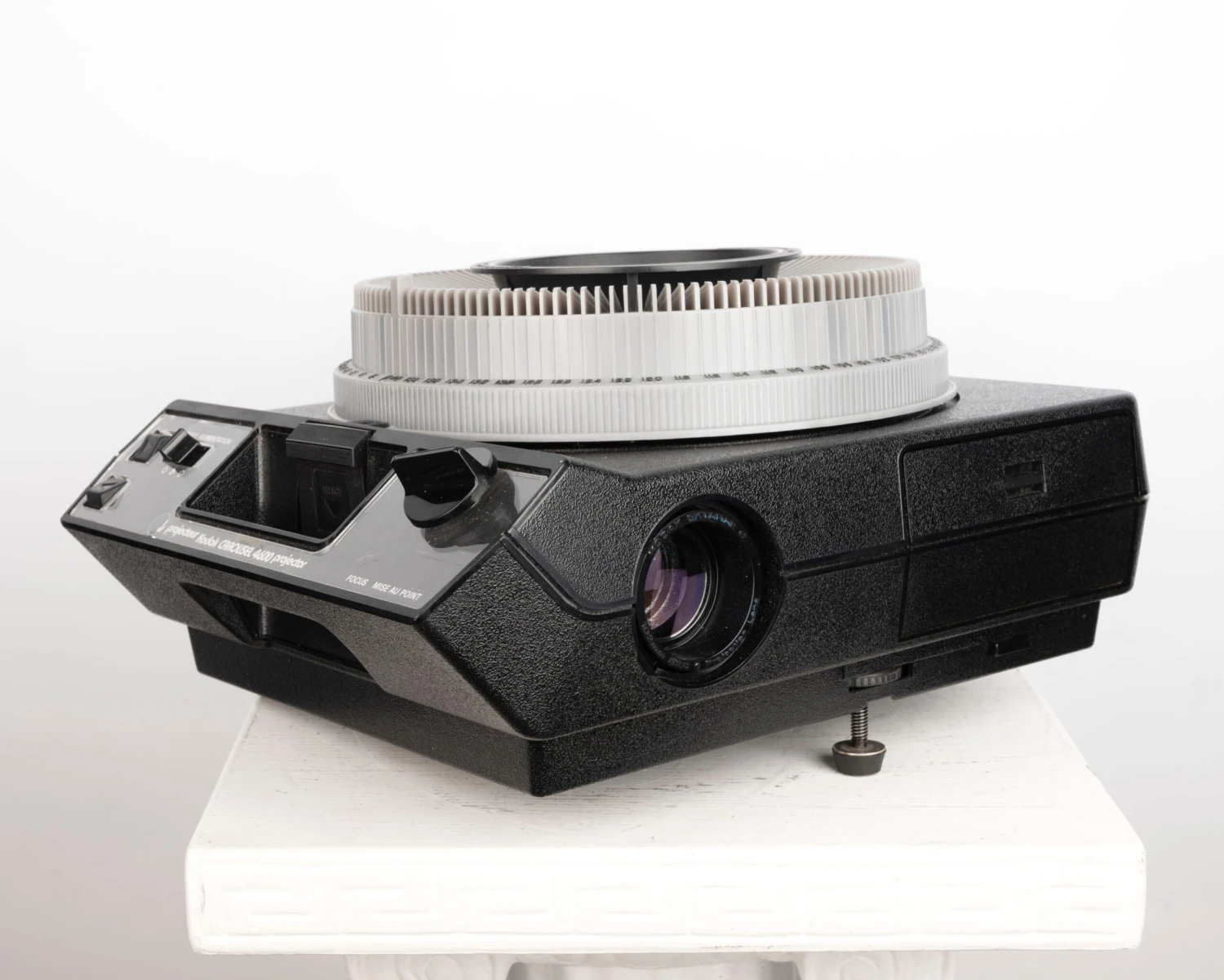 This is a solid and reliable 35mm slide projector. It is fully compatible with Kodak Carousel slide projector trays and lenses. The 4600 is part of the third generation (made from 1981 to 2004) of North American Kodak Carousel projectors. The Carousel 4600 features an ‘auto-focus’ feature which, in projector speak, means that it adjusts the focus based on the thickness of the slide mount; this is handy for people with many different types of slide mounts in their collection.