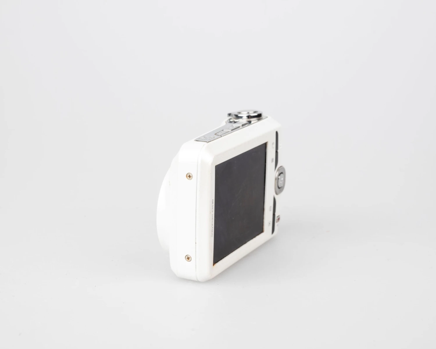 We tested this camera and it is working correctly except its LCD screen has a couple of discoloured areas (this doesn’t not affect photos). It has some cosmetic wear on its body (see photos).