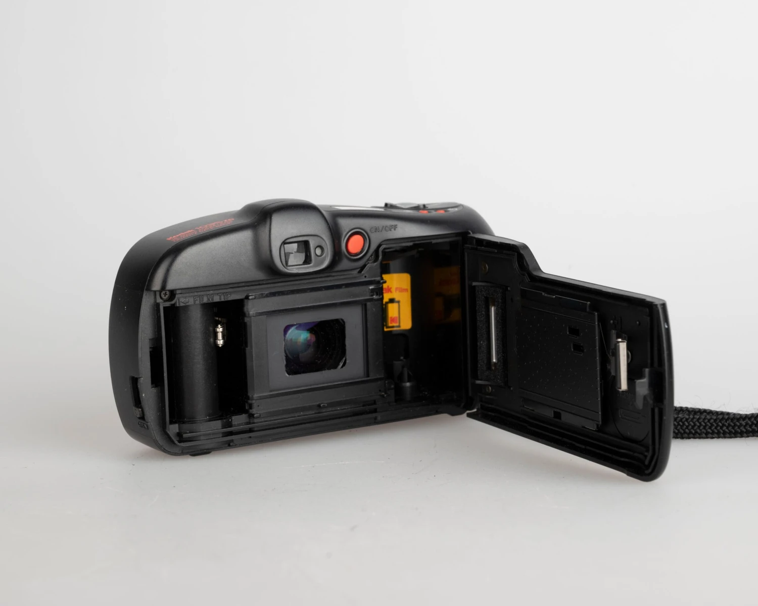 We found an old advertisement that stated the camera’s specifications as: 38-60mm (f4.3-6.4) lens; autofocus from 60cm to infinity; shutter speeds from 1/40 to 1/500; and the DX film metering range from ISO 25-3200. We can’t be 100% certain these specifications are accurate. We also found that its original list price in 1994 was $219.95USD and it was the most expensive compact camera in the company’s lineup.