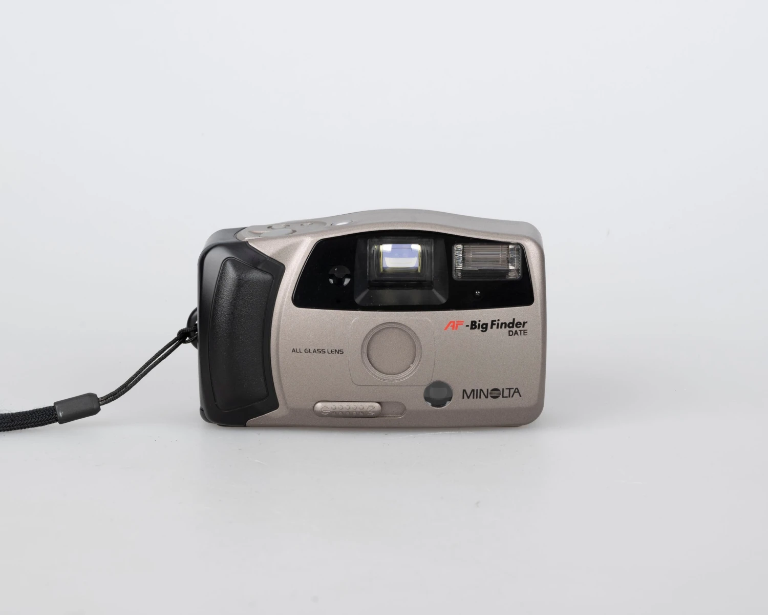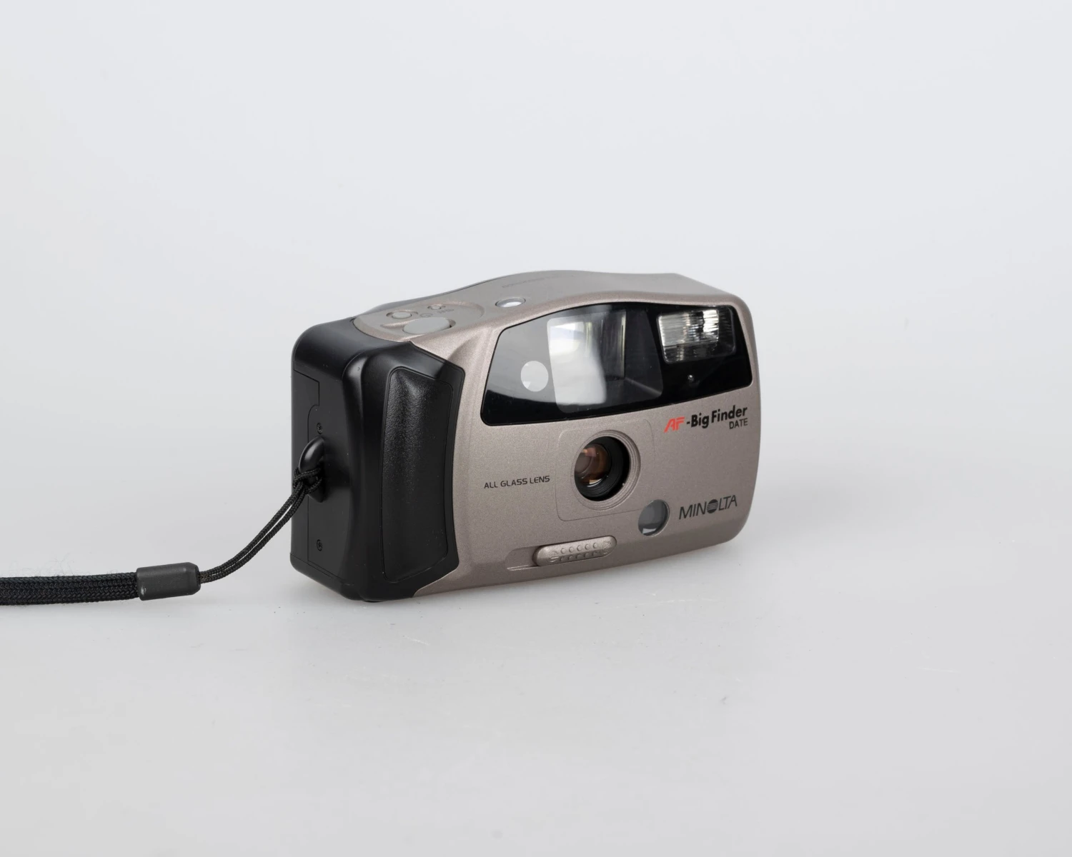 The Minolta AF Big Finder (called the AF150BF in some countries) is a good quality and very simple 35mm point-and-shoot camera. It features an autofocus 34mm f4.5 lens (3 elements in 3 groups).