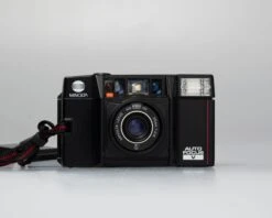 The AF-S V “Talker” is a superb 80’s Minolta point-and-shoot with illuminated auto-focus confirmation icons in its viewfinder (one of my favourite features in that generation of compact cameras) and an optional “talking” mode.