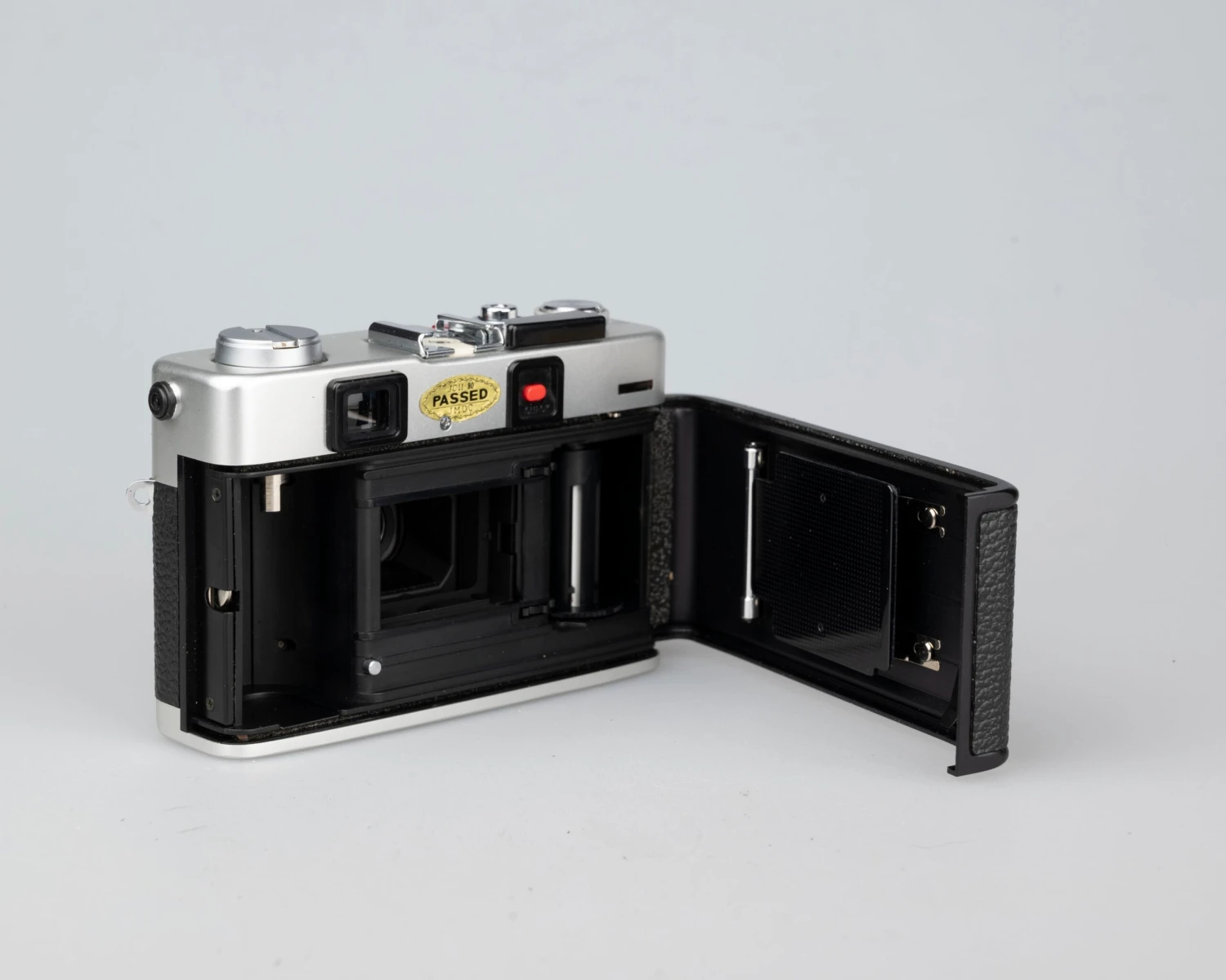 - Lens: Rokkor 38mm f/2.7, 4 elements in 3 groups, 61° angle of view