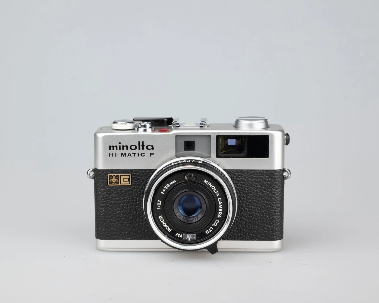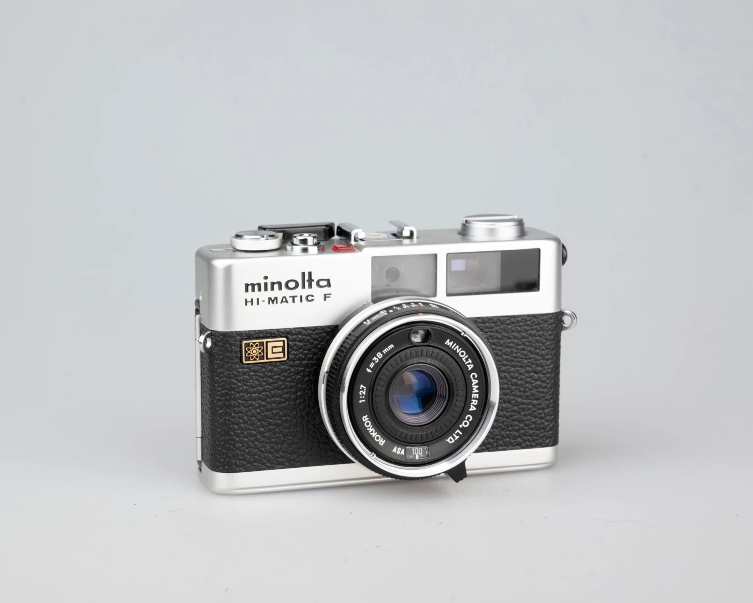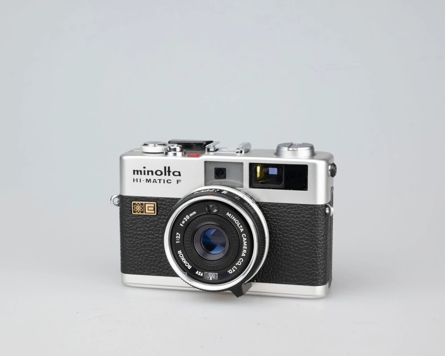 The Minolta Hi-Matic F is a lightweight and very compact 35mm rangefinder from the 1970s. It’s nearly as easy to use as a point-and-shoot but, in our experience, will give you a higher percentage of good photos (a rangefinder can’t be ‘fooled’ like a point-and-shoot’s autofocus).