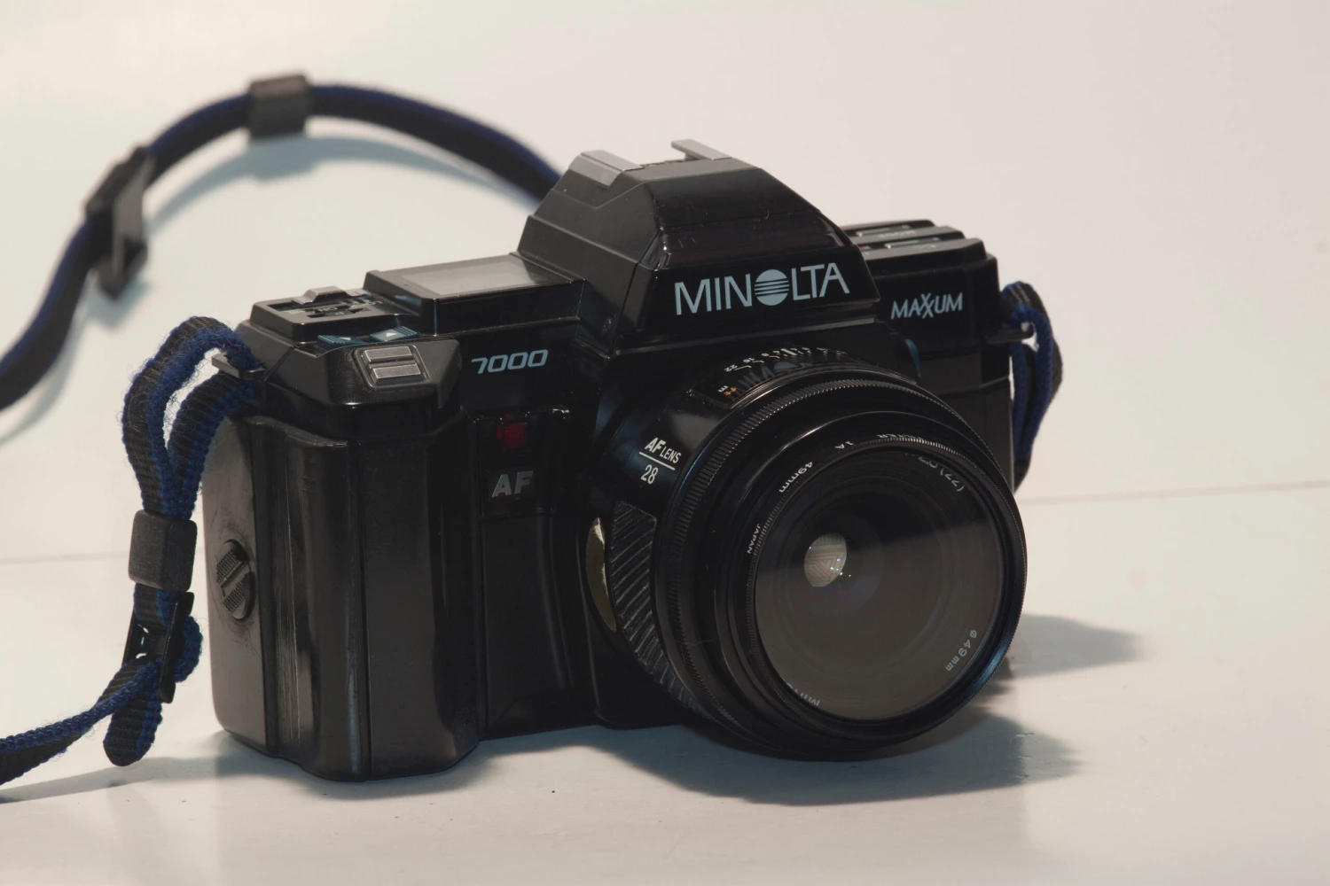 The Maxxum 7000 was a landmark camera when it was released in 1985–it’s was the first truly successful autofocus SLR (previous attempts were goofy hacks). And it’s still a fun-to-use and very capable camera today. Style-wise, it represents the high-tech zeitgeist of the mid-1980s (if David Hasslehof pulled a camera out of K.I.T.T.’s glove compartment in “Knight Rider”–it surely would’ve been a Maxxum 7000).