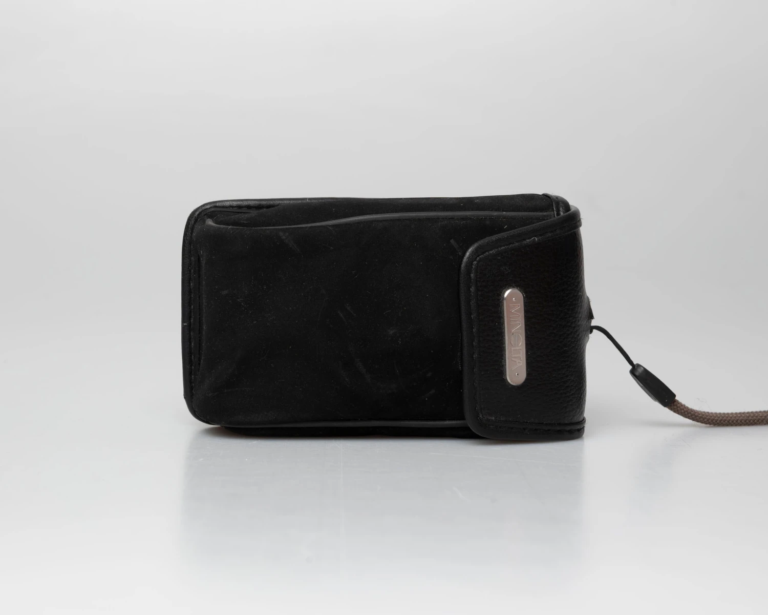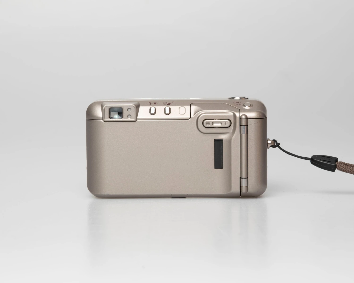 This is one of the later Minolta cameras, produced shortly before the company’s merger with Konica. It’s sophisticated both in terms of photographic quality (it features a very sharp 6 element 37.5-125mm zoom lens with a 60cm minimum focus distance) and features (it has a door lock that prevents accidentally ruining your film until it been safely rewound).