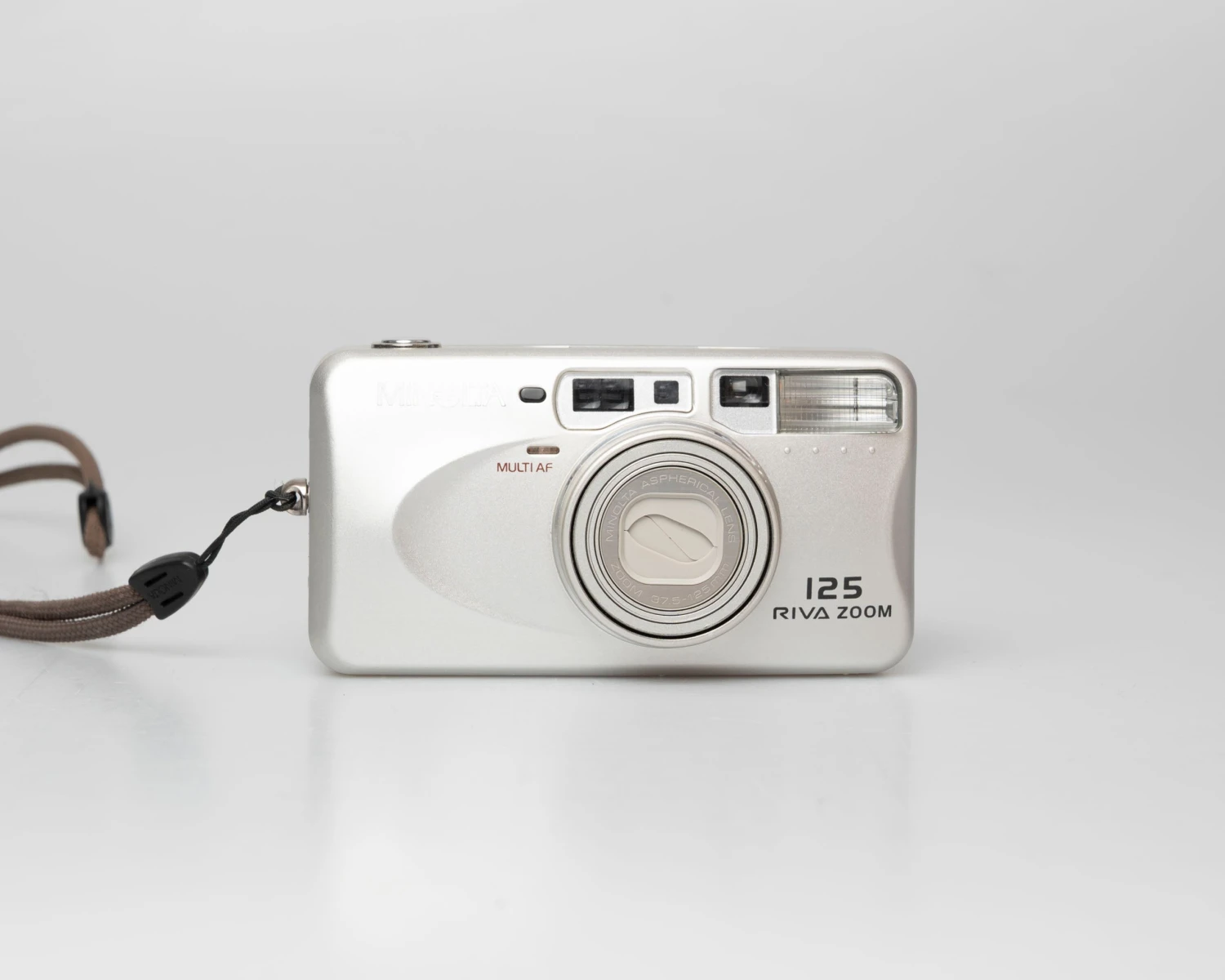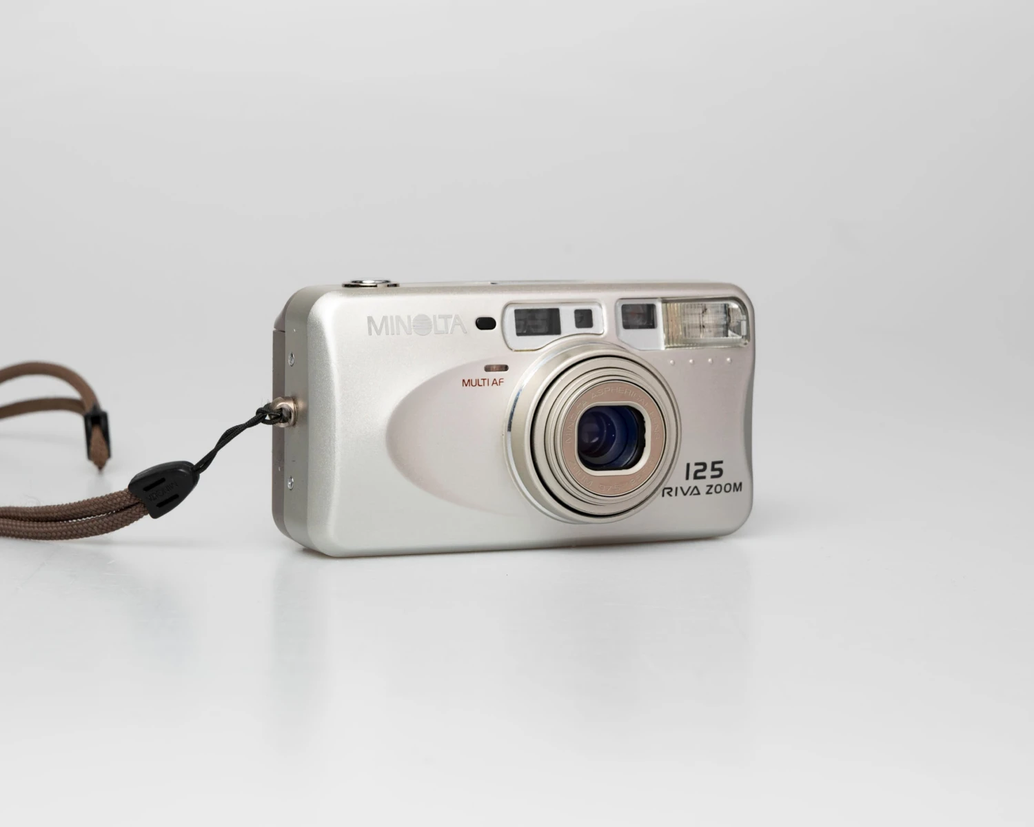 The circa-2000 Minolta Riva Zoom 125 Date is very compact and high quality 35mm point-and-shoot. This camera was sold as the Freedom Zoom 125 and Capios 125S in some markets.