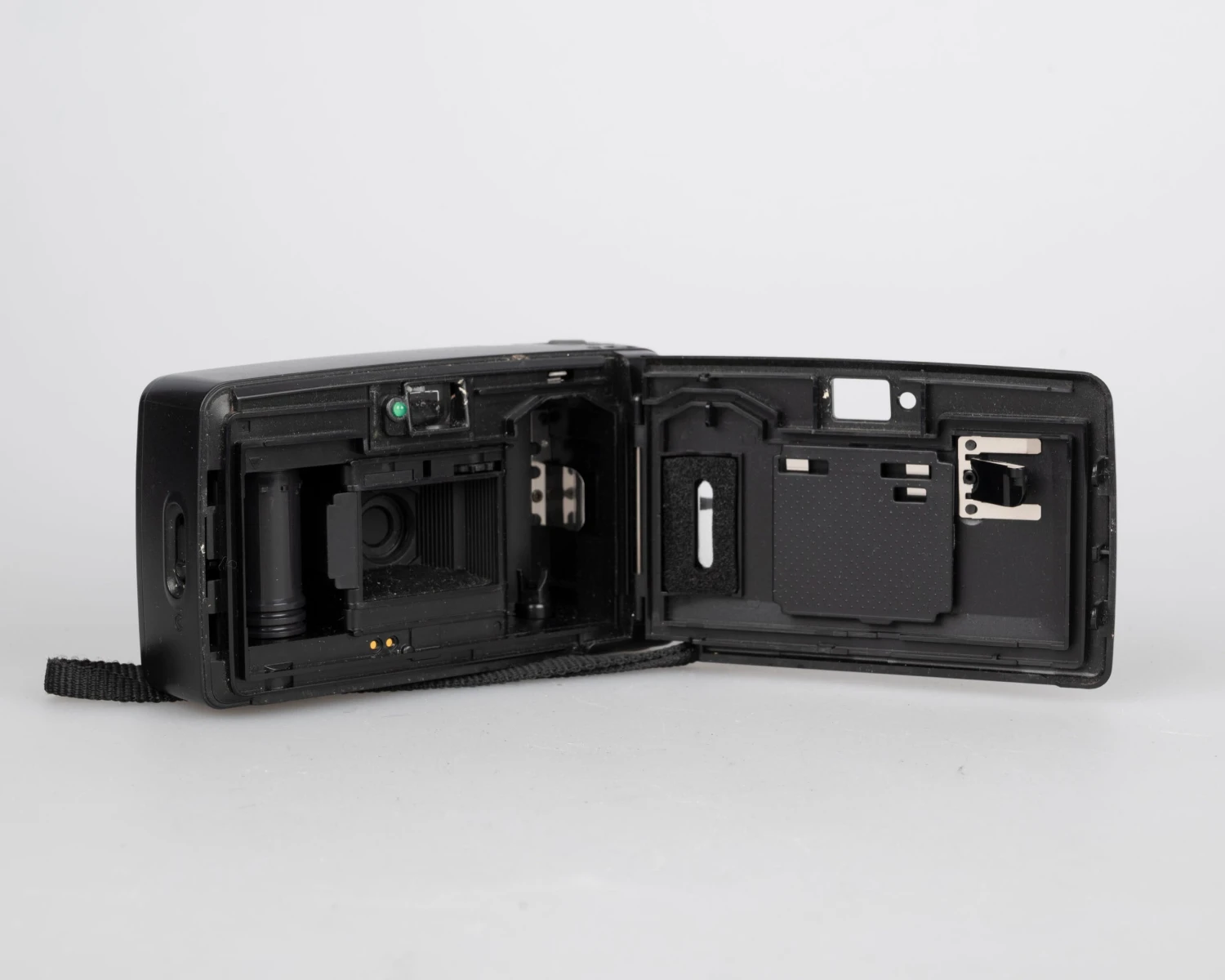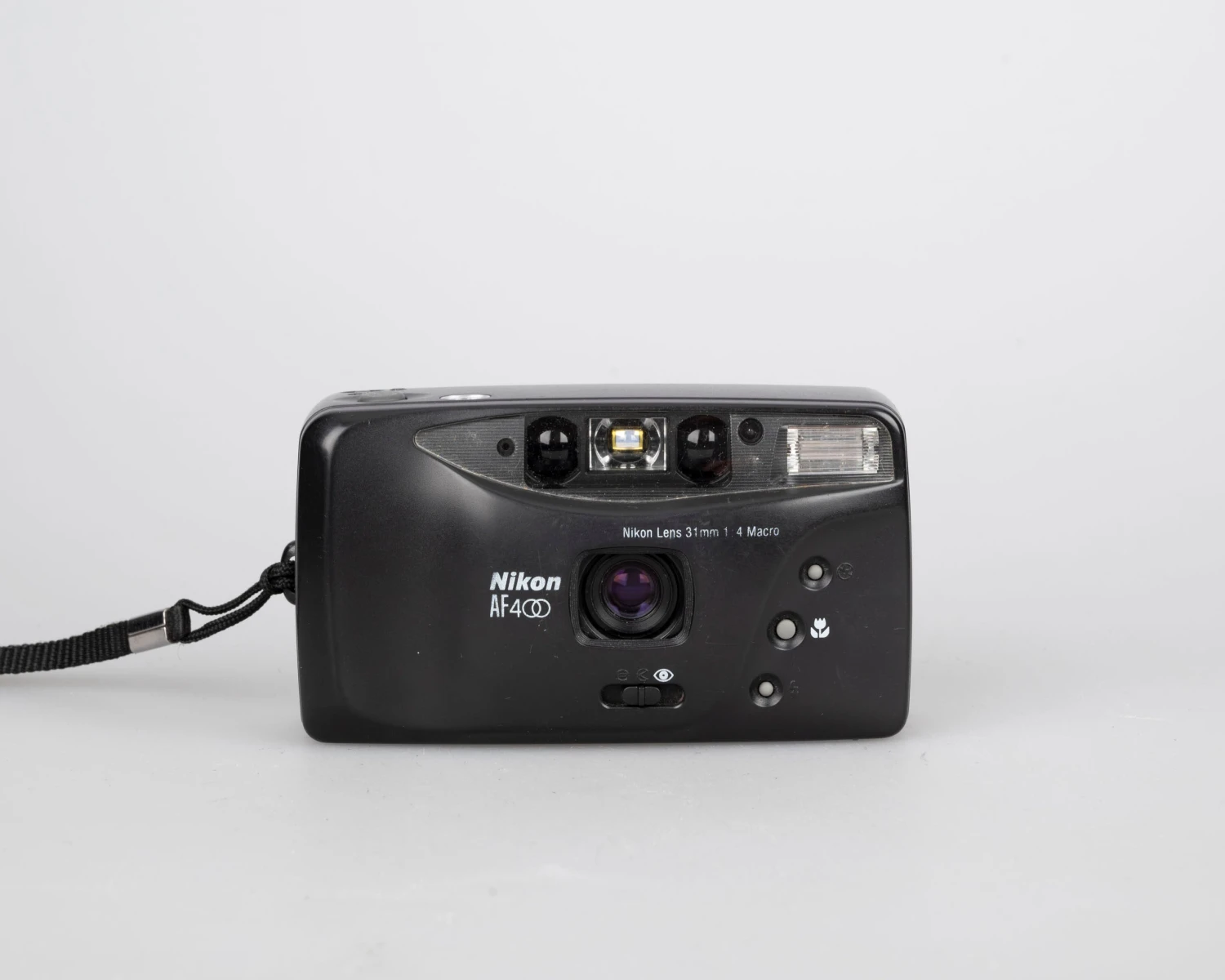 The Nikon AF 400 (aka One•Touch 300) is a simple 35mm film point-and-shoot camera from 1994 featuring an autofocus wide-angle 31mm lens. It features handy flash cancel (for situations when you don’t want the flash to go off) and force flash (for fill light or backlight compensation) and dedicated macro (for close-up shots) summarys but other than that it’s a pure, simple point-and-shoot.