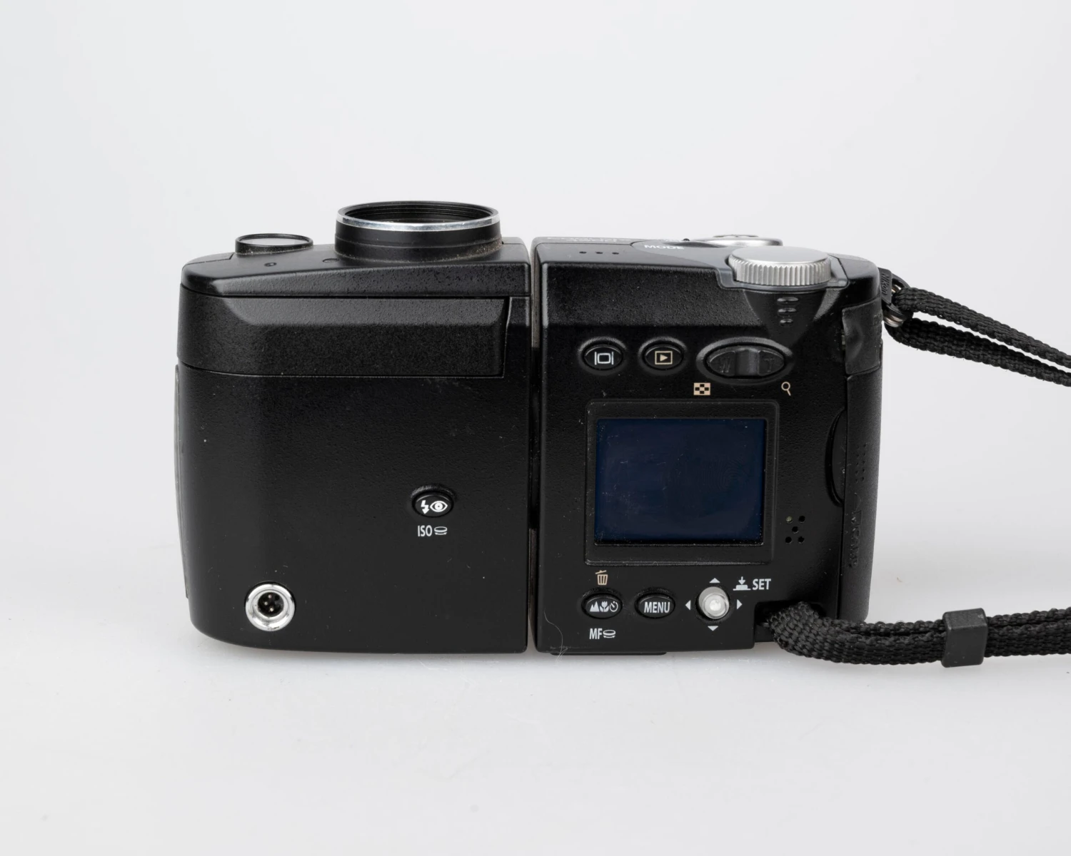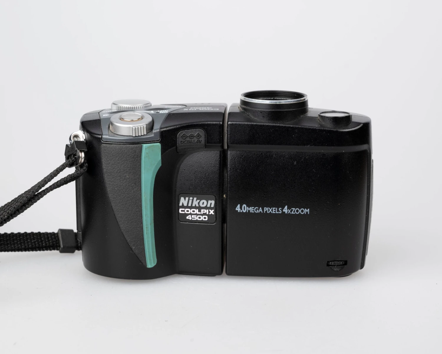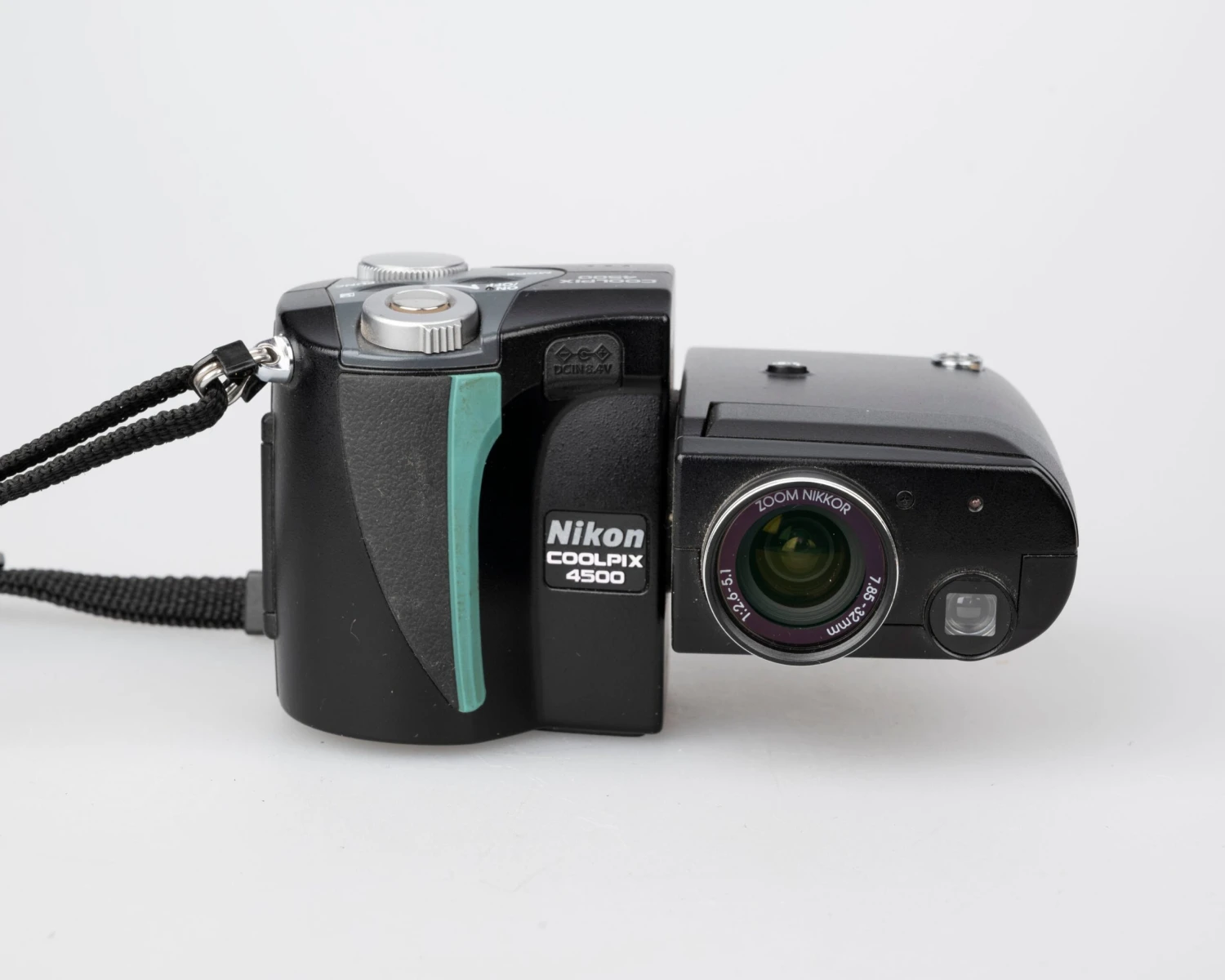 The Nikon Coolpix 4500 is a digital camera from circa 2002 featuring a 4-megapixel CCD sensor and an unusual twisting body configuration. With its magnesium alloy construction, the Coolpix 4500 has considerably higher build quality than a typical digicam.