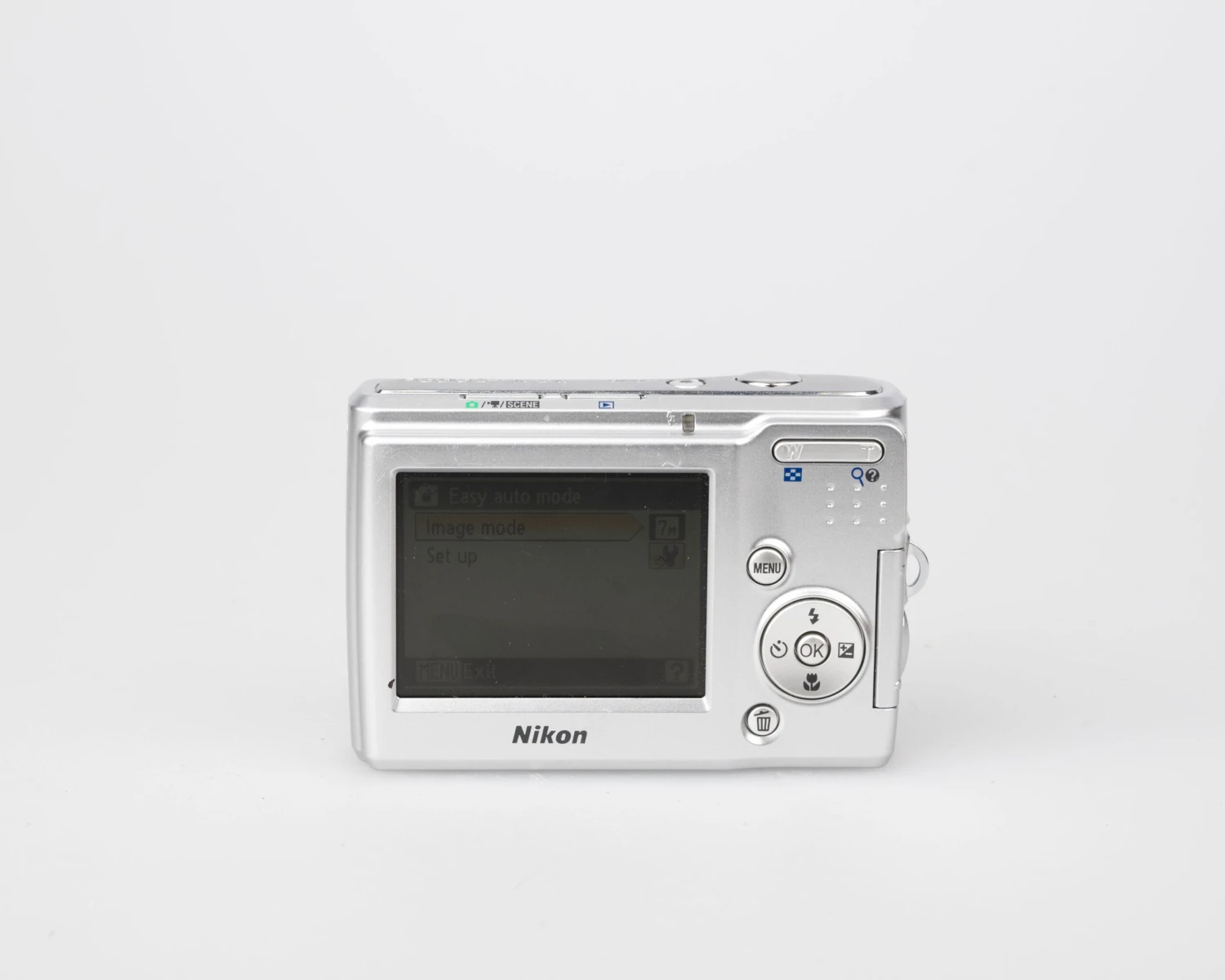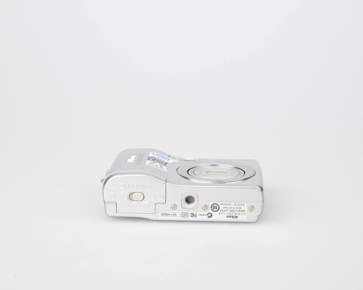 The Nikon Coolpix L14 is a very compact digicam from 2007 that’s noteworthy for its long battery life (Nikon claimed an average of 1000 shots using lithium AA batteries). This camera features a 7.1-megapixel CCD sensor and uses two AA batteries (not included) and common SD cards for memory (also not included).