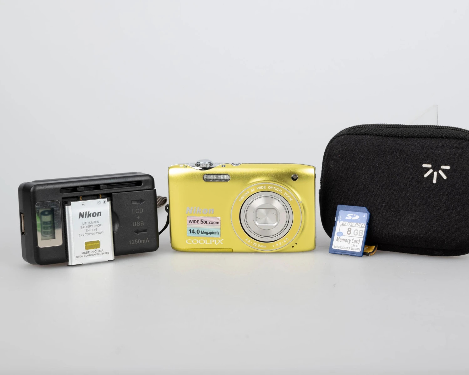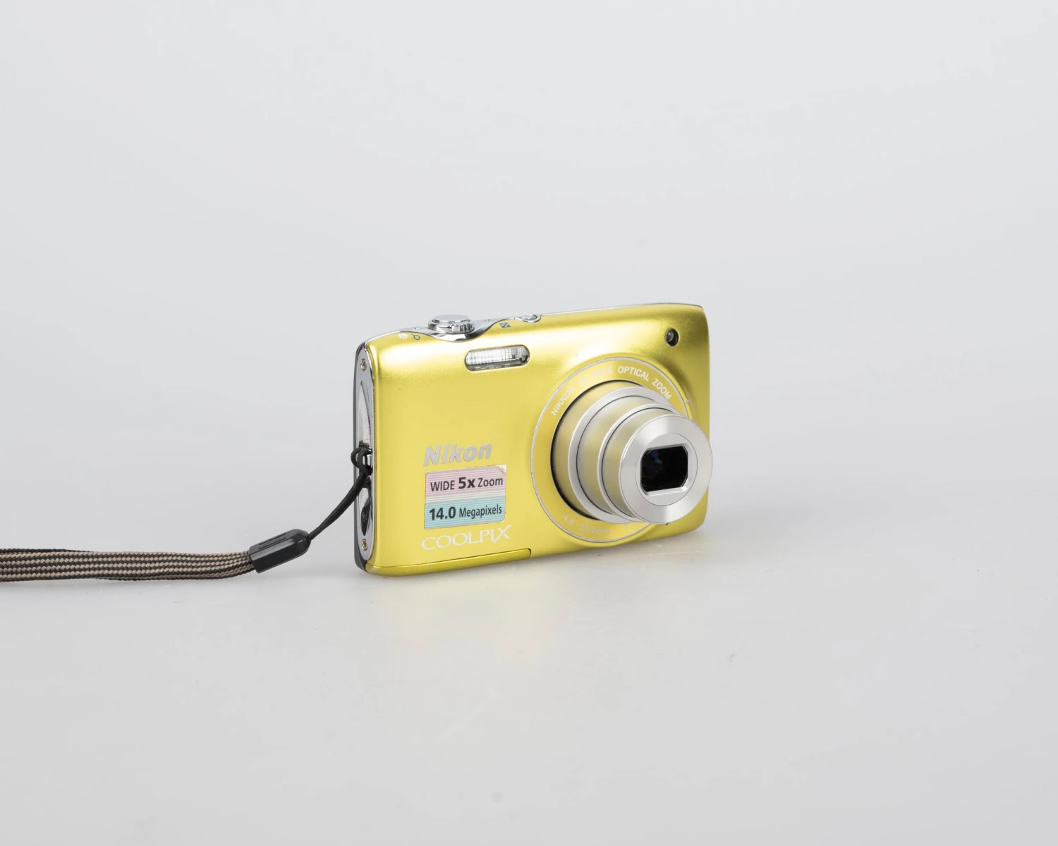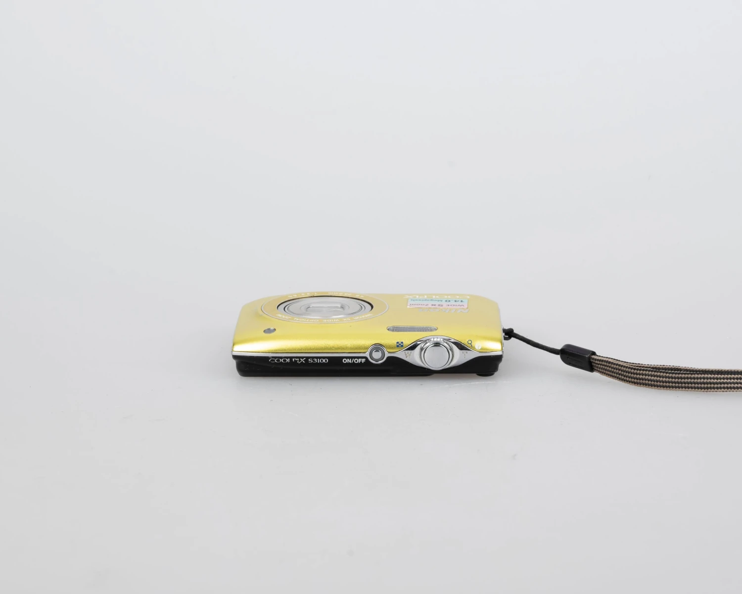 The Nikon Coolpix S3100 is an ultracompact 14-megapixel digicam from 2011. It features a 26–130mm (35mm equivalent) zoom lens and numerous beginner-friendly shooting modes. This is the version with a yellow-green metallic body.