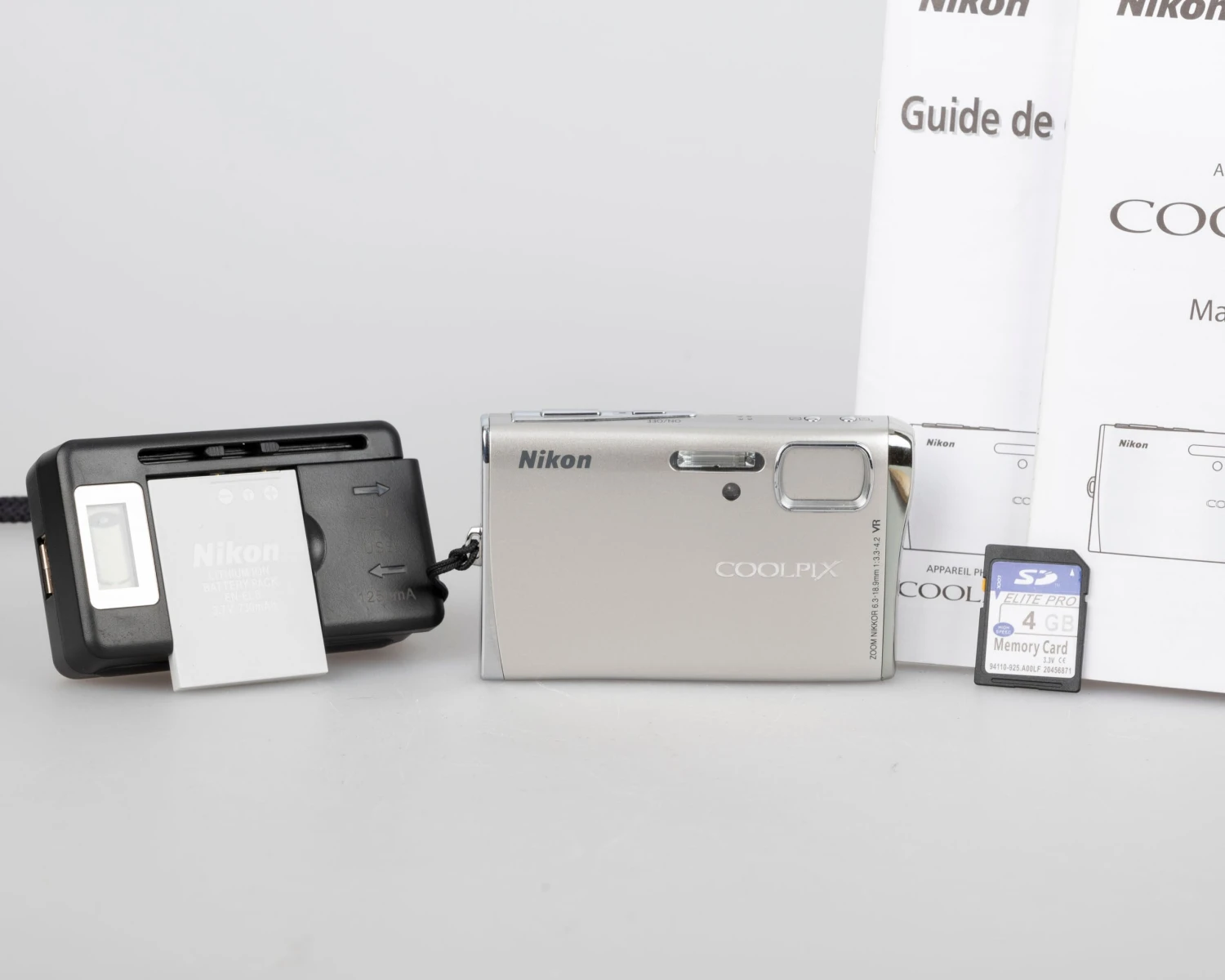 - Nikon EN-EL8 battery (we were able to charge this battery and it appears to be working well but we strongly recommend buying a spare EN-EL8 for serious use. They’re inexpensive and widely available).