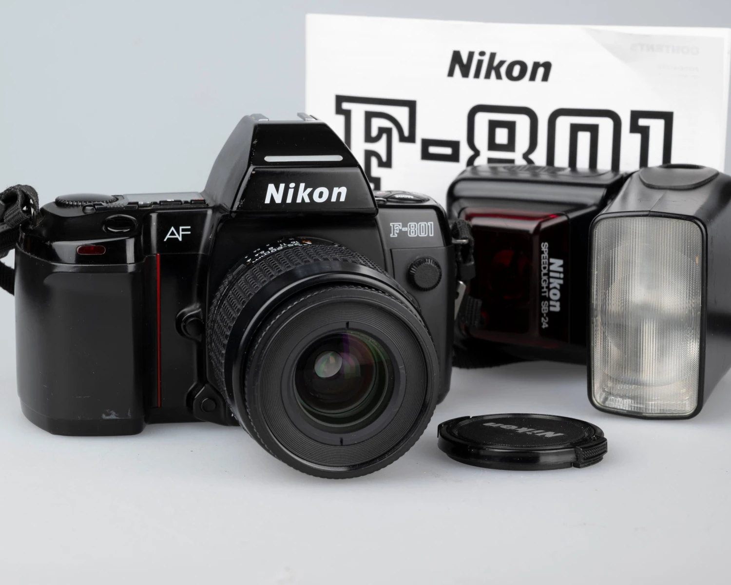 This is a superb 35mm camera, lens (a lightweight Nikkor 35-80mm 1:4-5.6 D zoom), and flash combination for demanding art photography, offering many advanced features (like double exposure, multiple program modes, depth of field preview, etc.) and a very accurate light meter.