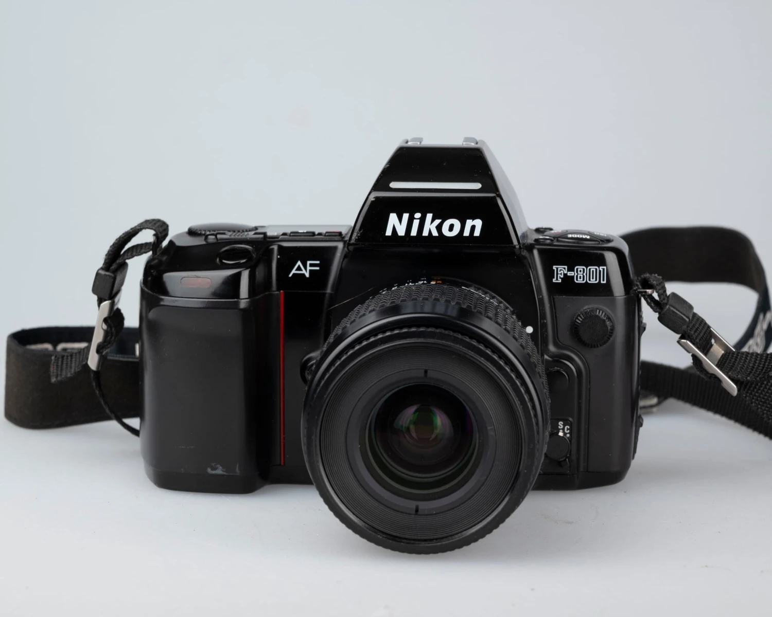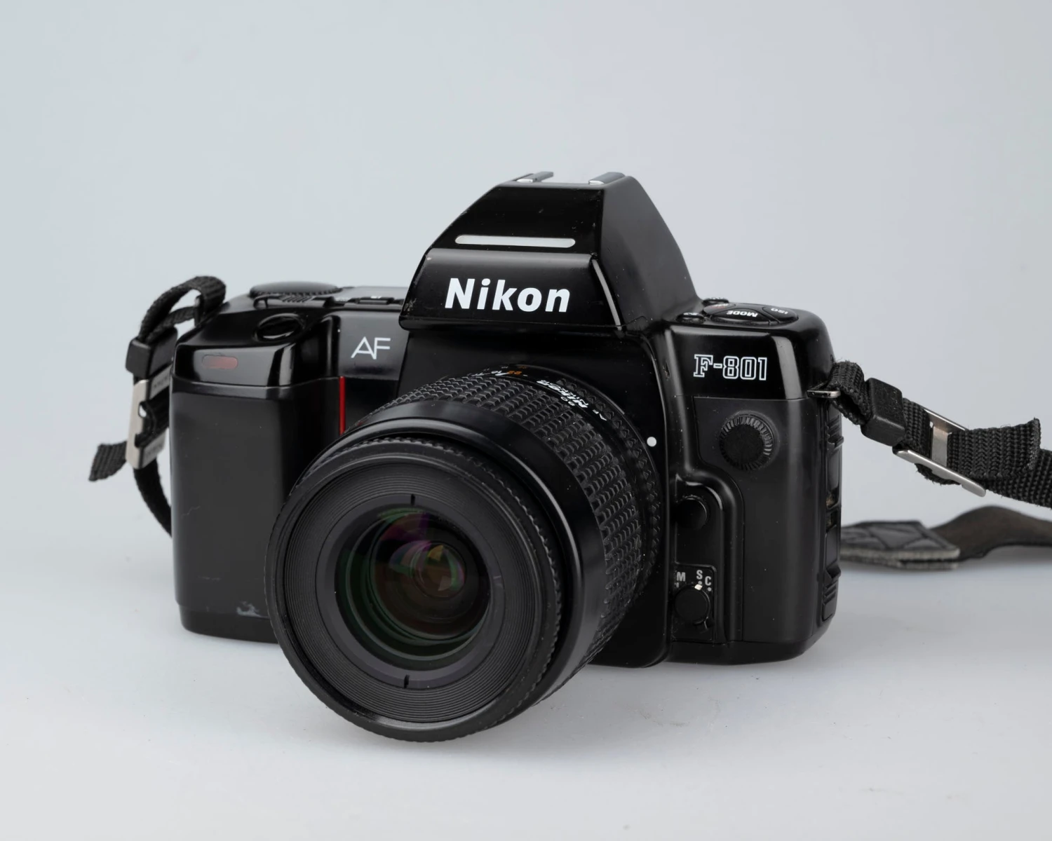 The camera is powered by 4 normal AA batteries (not included). Unlike many other film cameras, F-801 permits the use of rechargeable batteries (are we highly recommend them, especially if the camera is to be used in cold weather). The flash is also powered by 4 AA batteries (not included).
