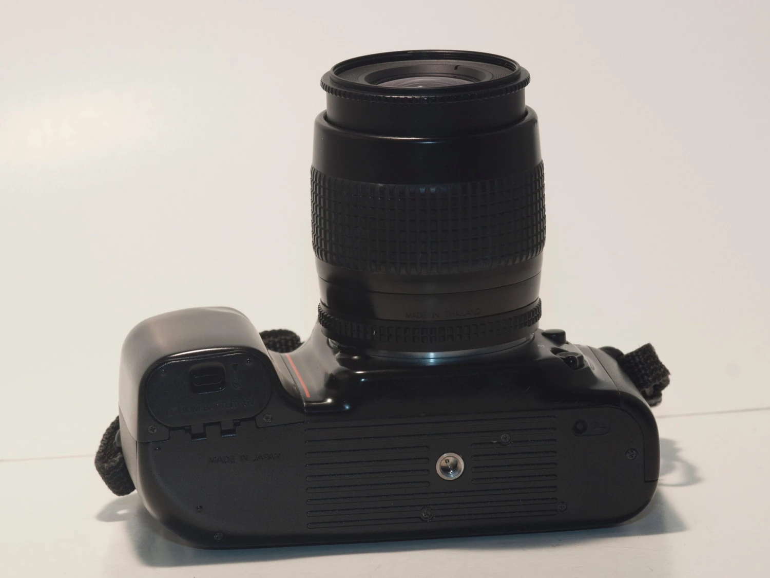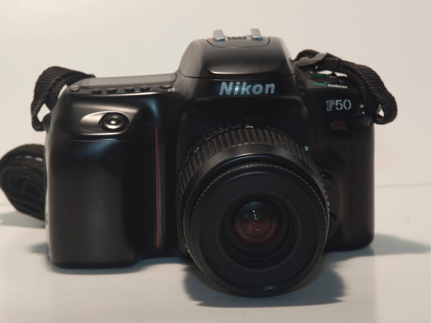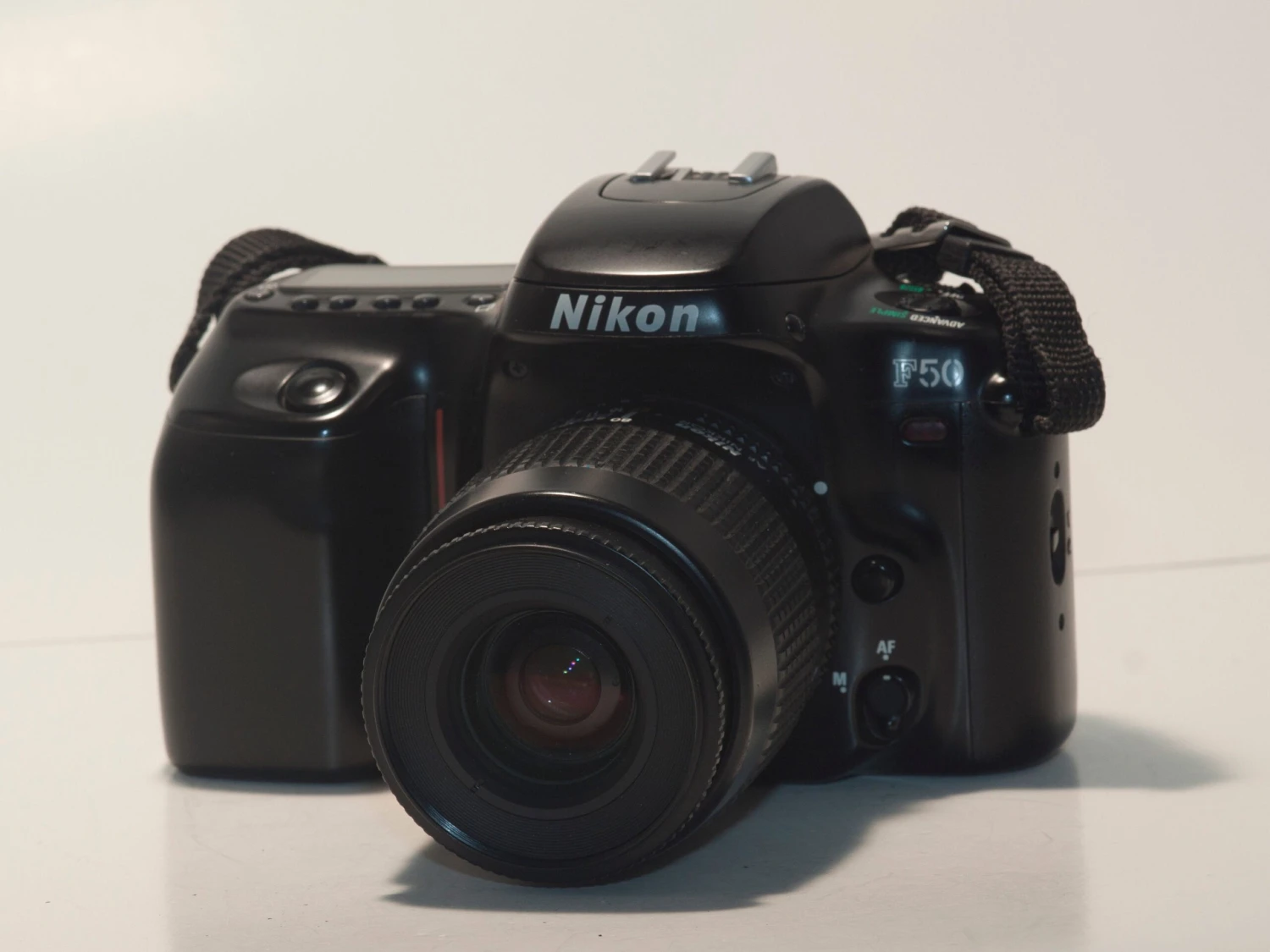 This Nikon F50 (serial number 2190031) is an advanced autofocus 35mm SLR from the mid 1990s. This camera (which was sold as the Nikon N50 in some countries) is an excellent first camera for a beginner as it offers ‘simple’ (where the camera basically works like a deluxe point-and-shoot) and ‘advanced’ modes. The advanced setting offers aperture priority, shutter priority, and program auto exposure as well as full manual controls. The included lens is the versatile AF Nikkor 35-80 f4-5.6D. This lens can also be used on modern Nikon digital SLRs.