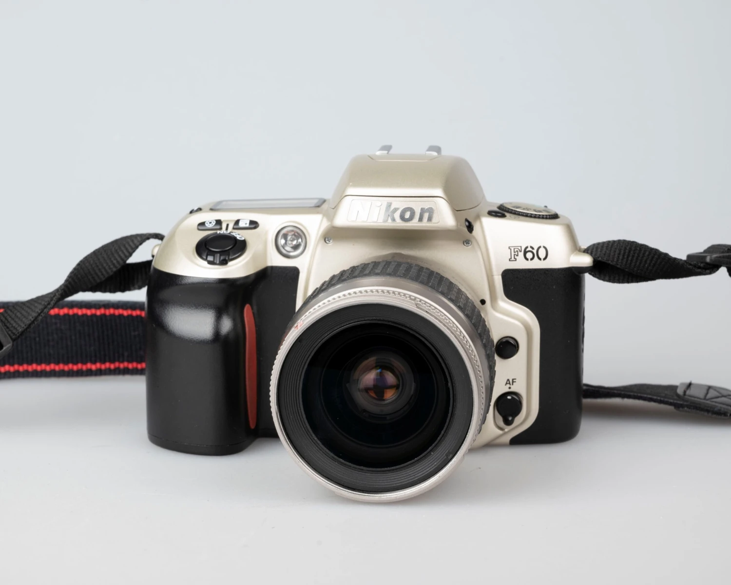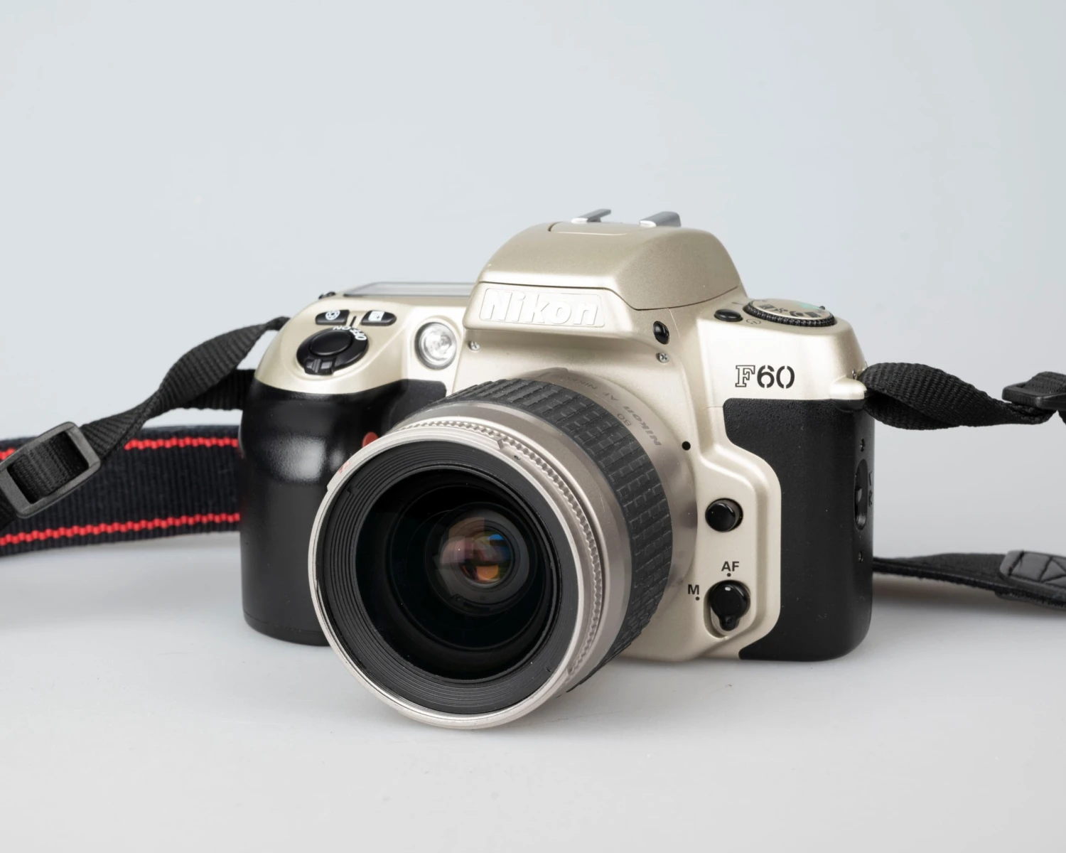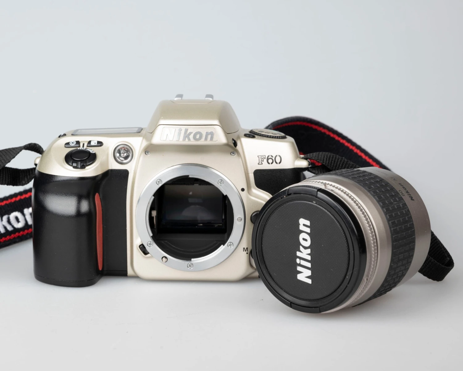 The Nikon F60 is a very capable autofocus 35mm film SLR from the late 1990s. The included lens is a versatile and lightweight AF Nikkor 28-80mm 1:3.3-5.6 G zoom.