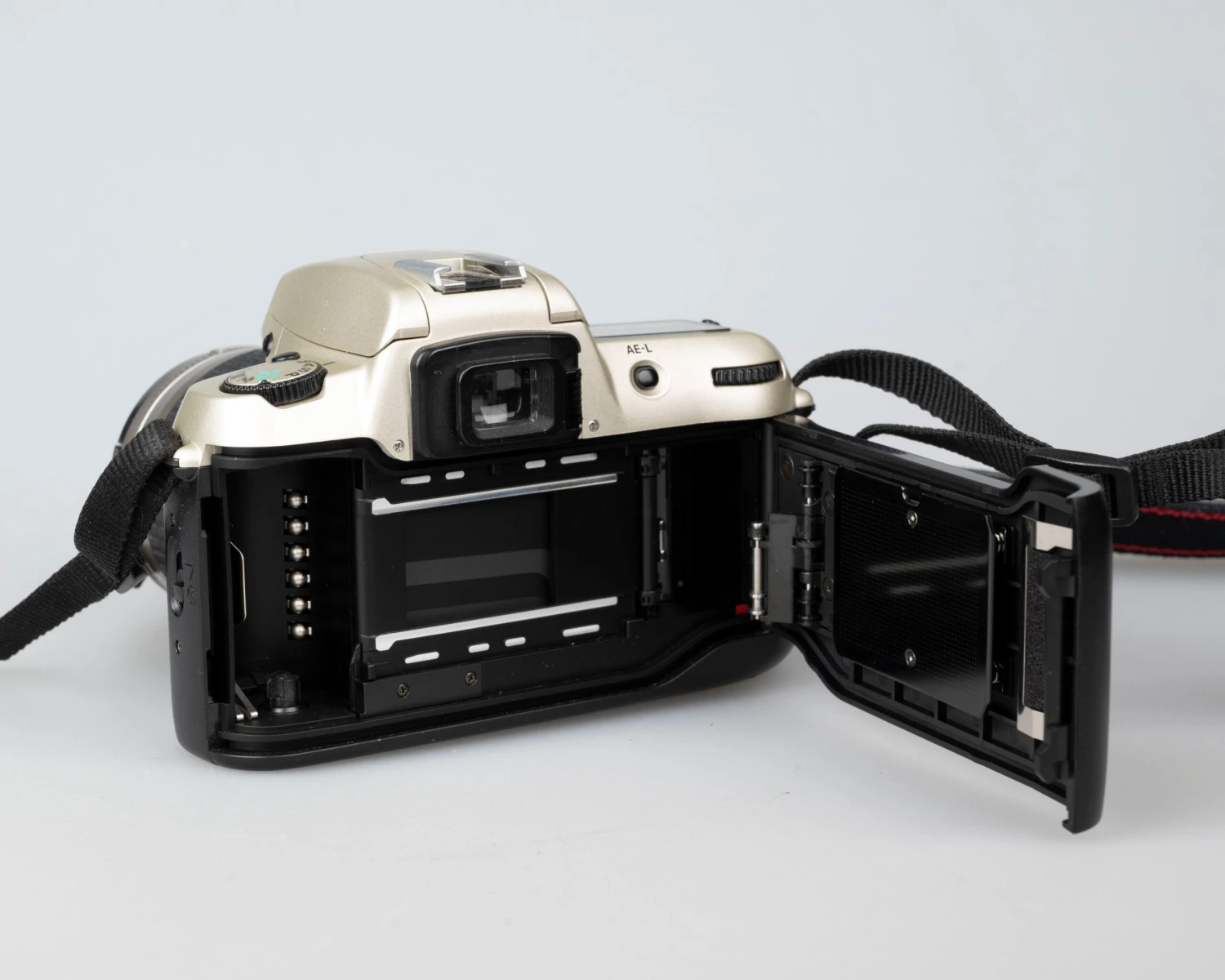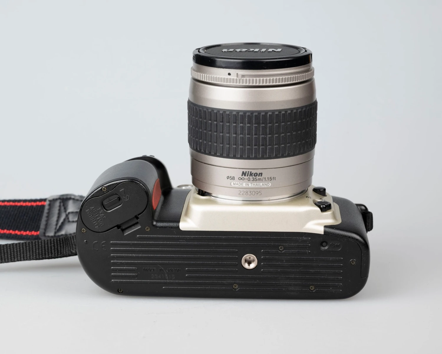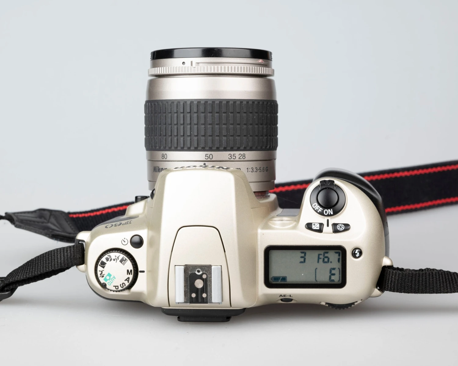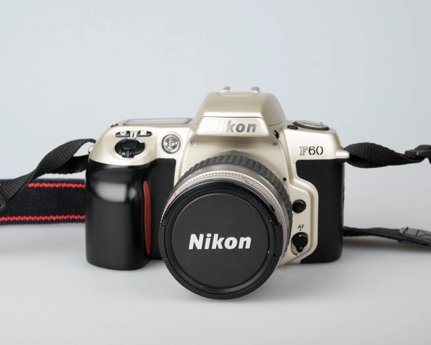 The Nikon F60 is a very capable autofocus 35mm film SLR from the late 1990s. The included lens is a versatile and lightweight AF Nikkor 28-80mm 1:3.3-5.6 G zoom.