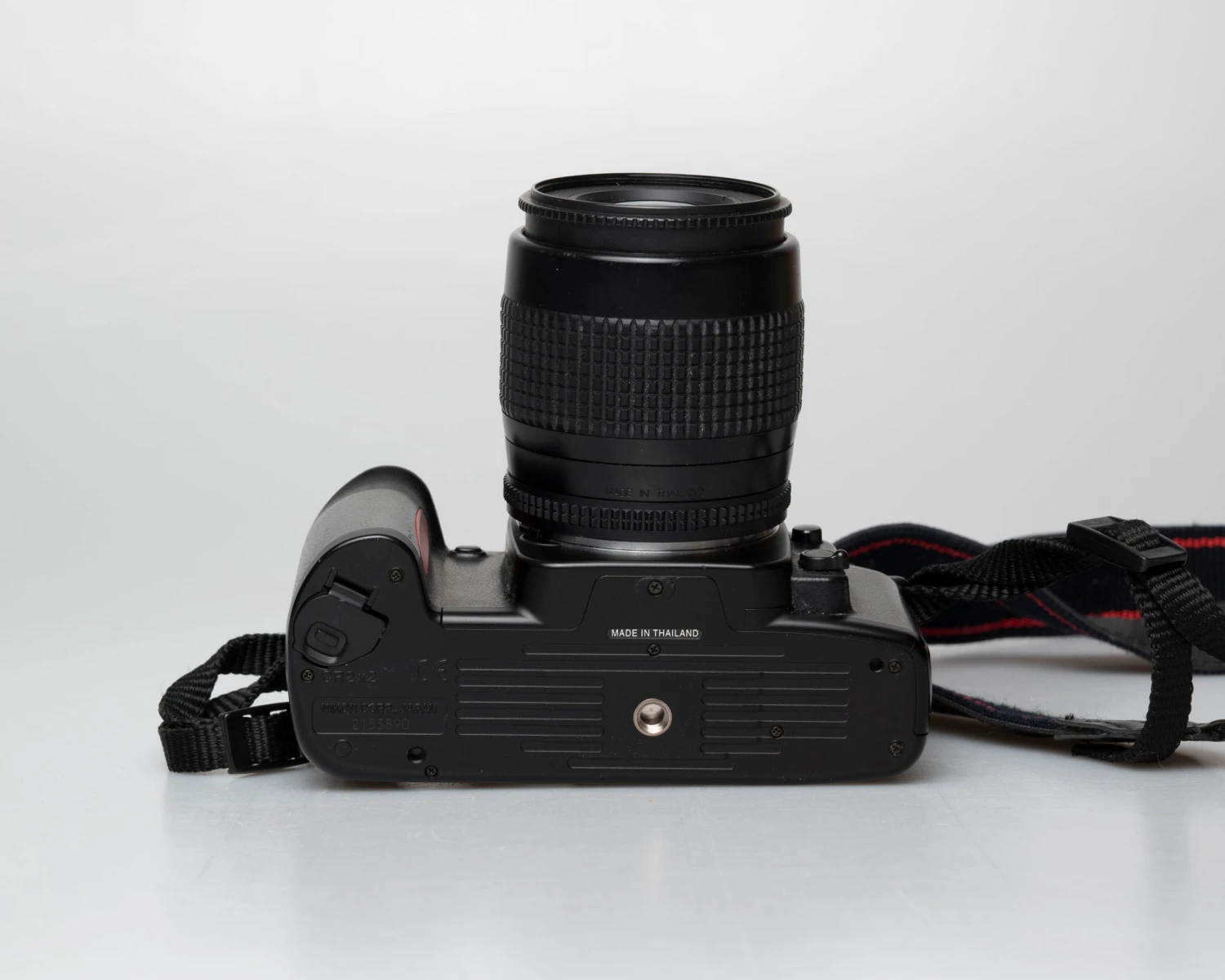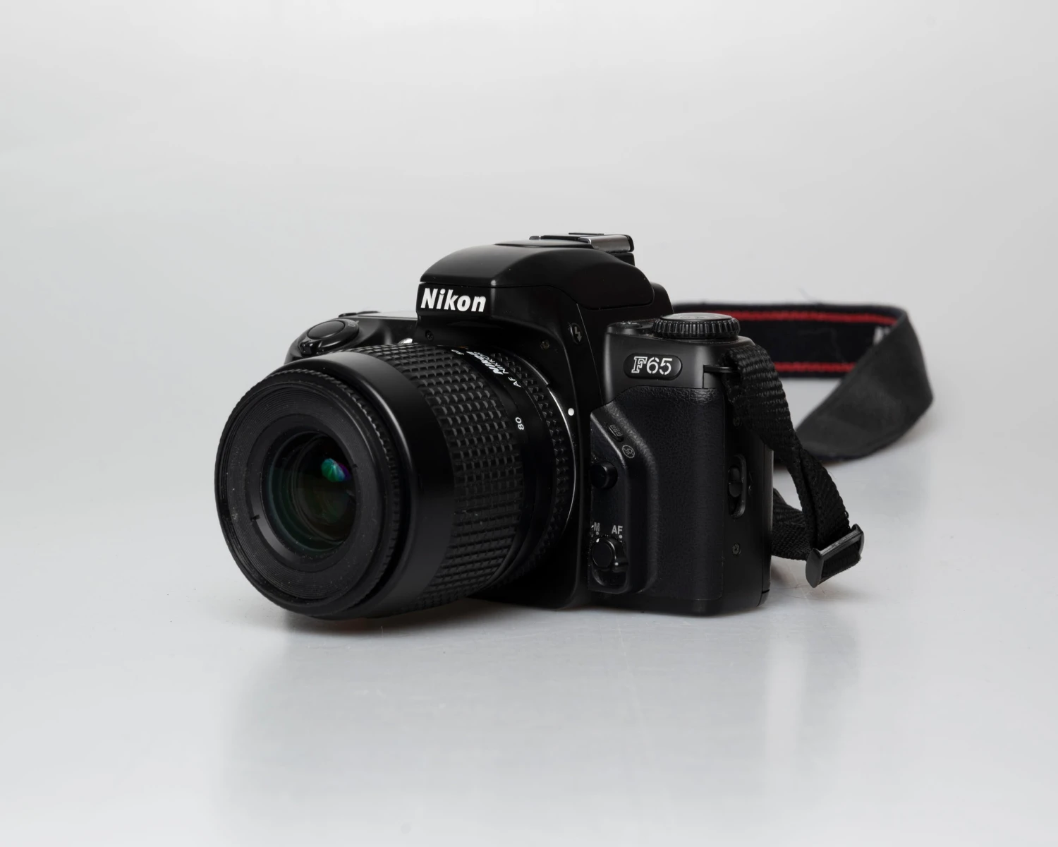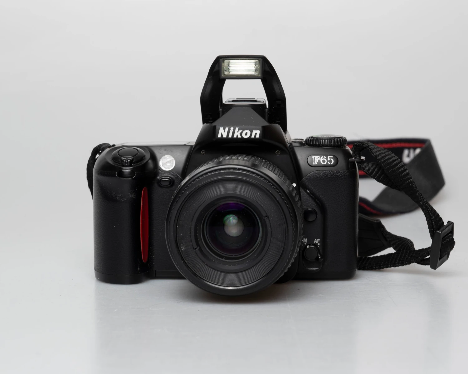 The Nikon F65 is a sophisticated 35mm film SLR from the early aughts. The included lens is a versatile and lightweight AF Nikkor 35-80mm zoom.