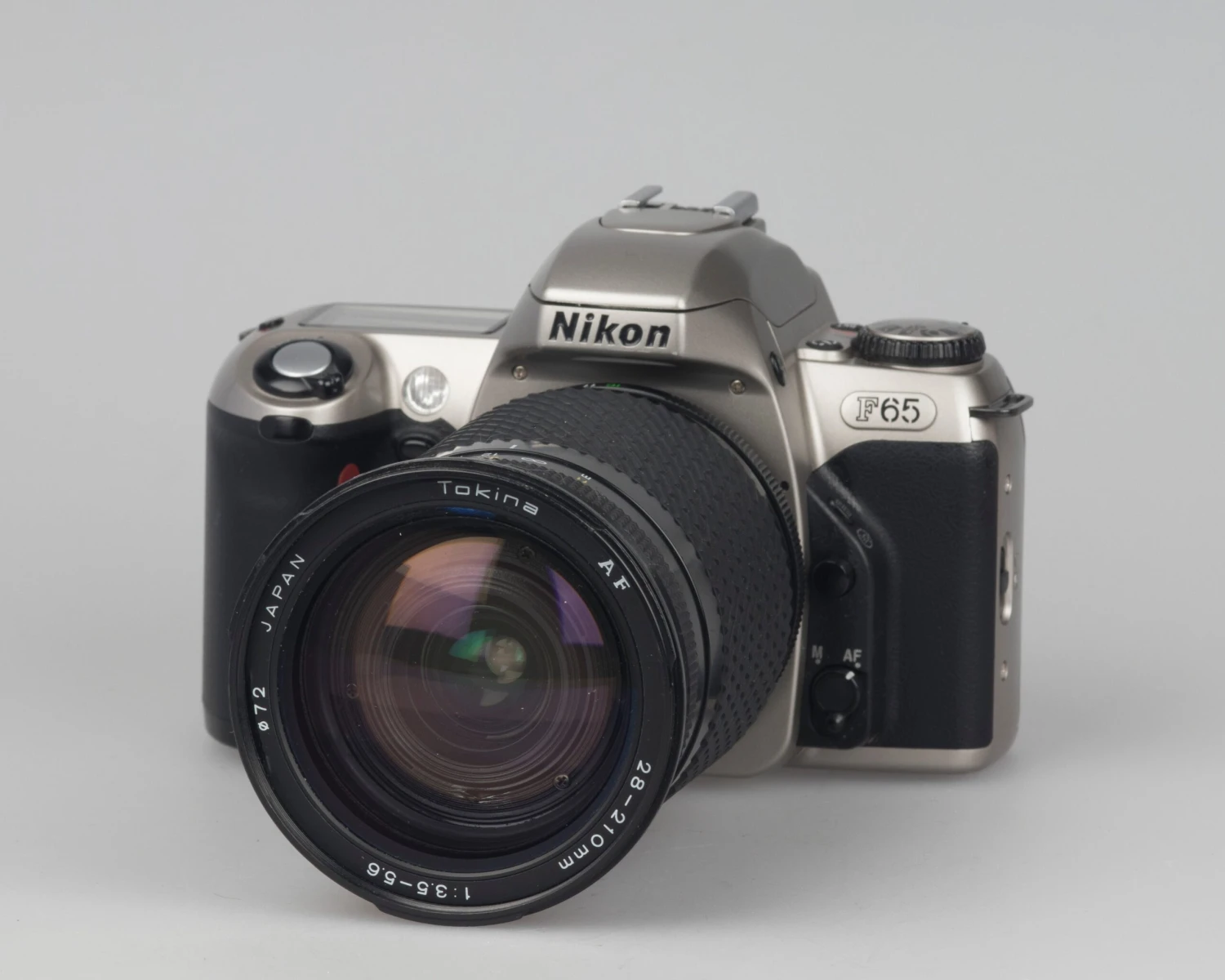 The Nikon F65 is a sophisticated 35mm film SLR from the early aughts. The included Tokina AF 28-210mm f3.5-5.6 lens is incredibly versatile, covering all the focal lengths you’d likely ever need.