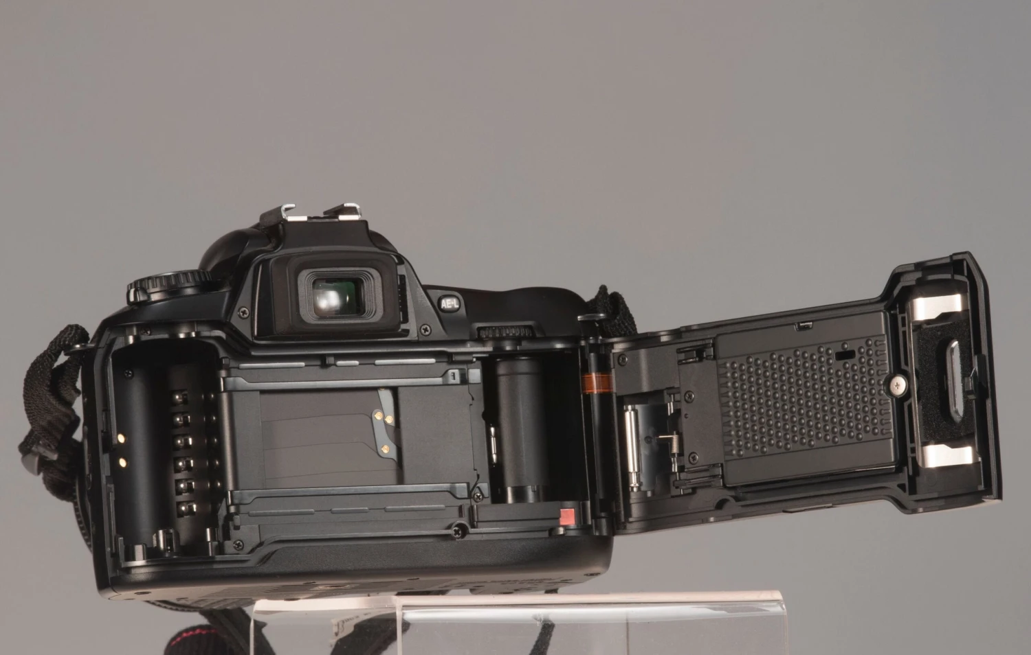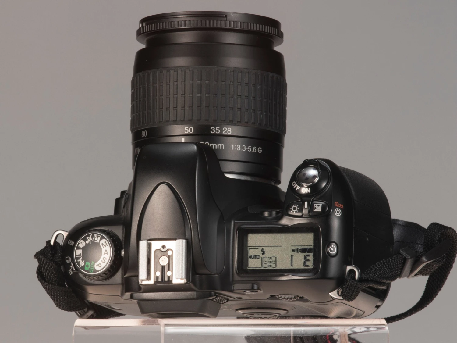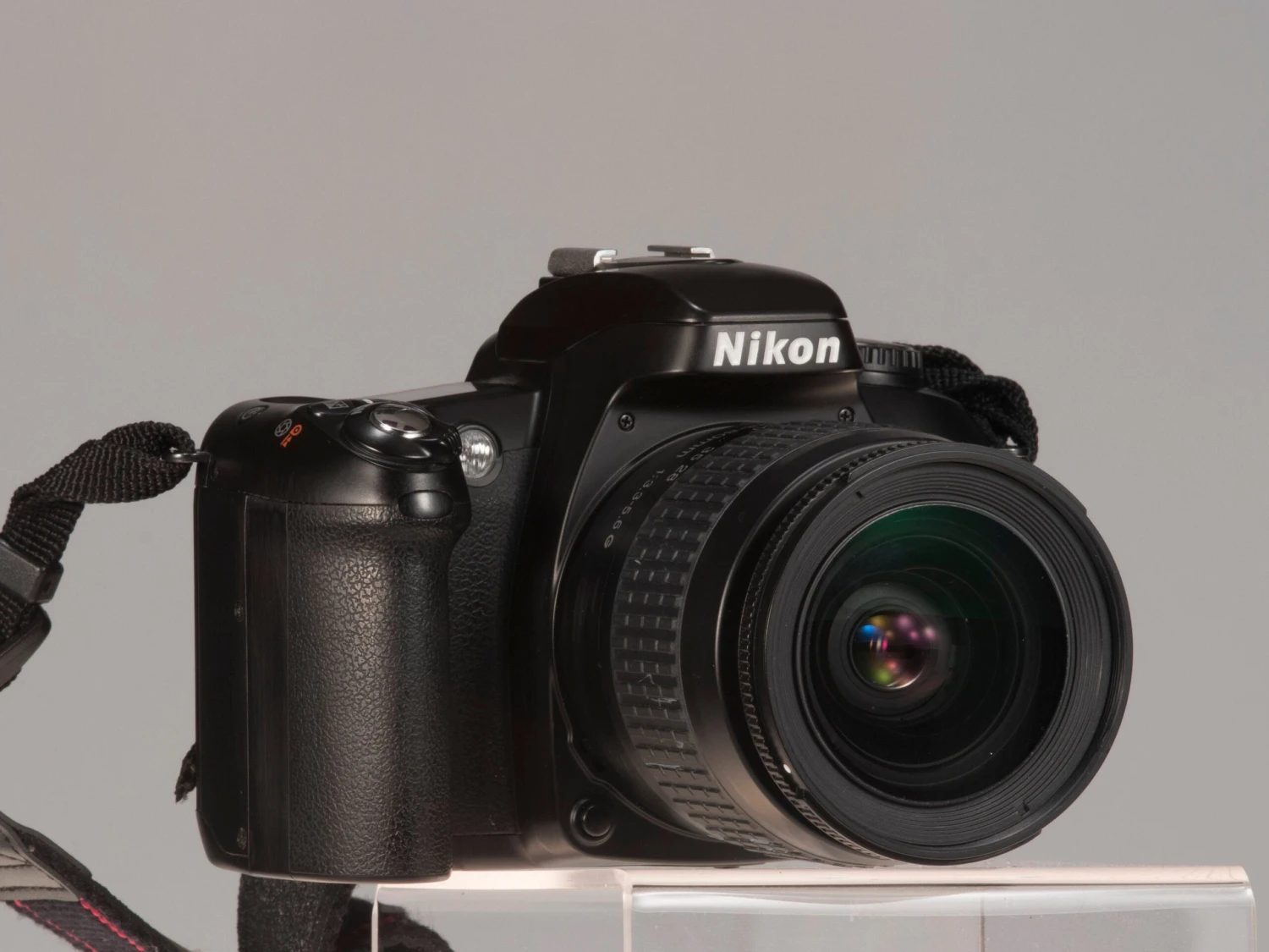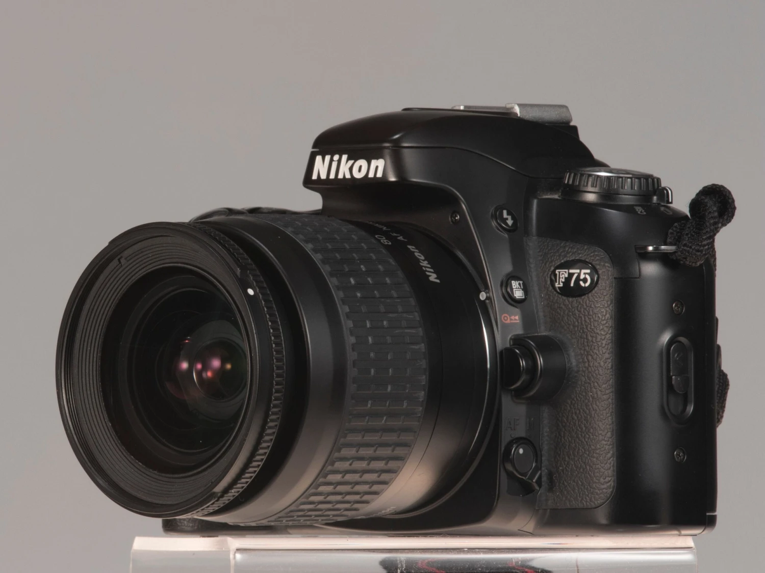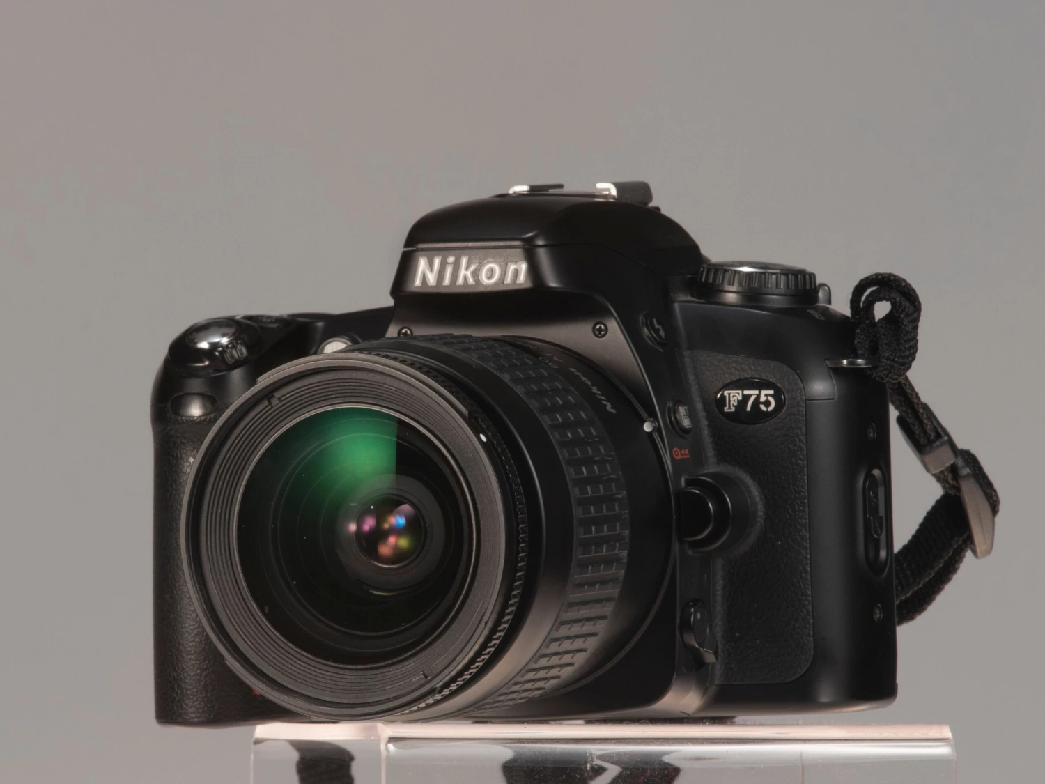 The Nikon F75 (sold as the N75 in the United States) is an advanced and very lightweight (the body only weighs 380g or 13.4 oz) 35mm SLR camera from the early aughts. The included lens is the very versatile AF Nikkor 28-80 f3.3-5.6.