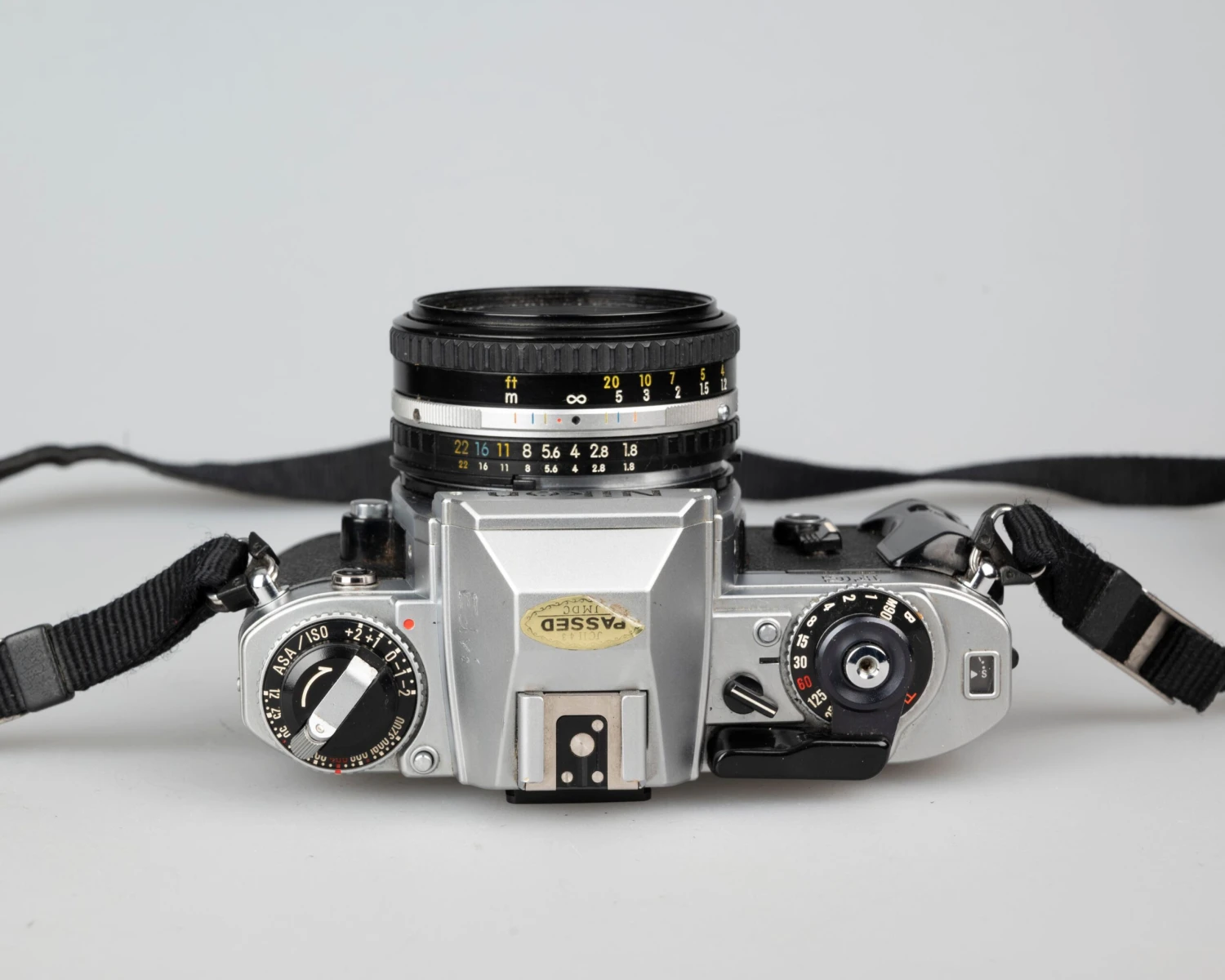It’s a very capable camera. It features aperture priority or program auto exposure or fully metered manual exposure. The LED metering is fast and easy to read. The camera requires two 357 or LR44 batteries. But, in typical Nikon fashion, it also includes mechanical 1/90 and bulb shutter modes if you should your batteries die at an inconvenient moment.